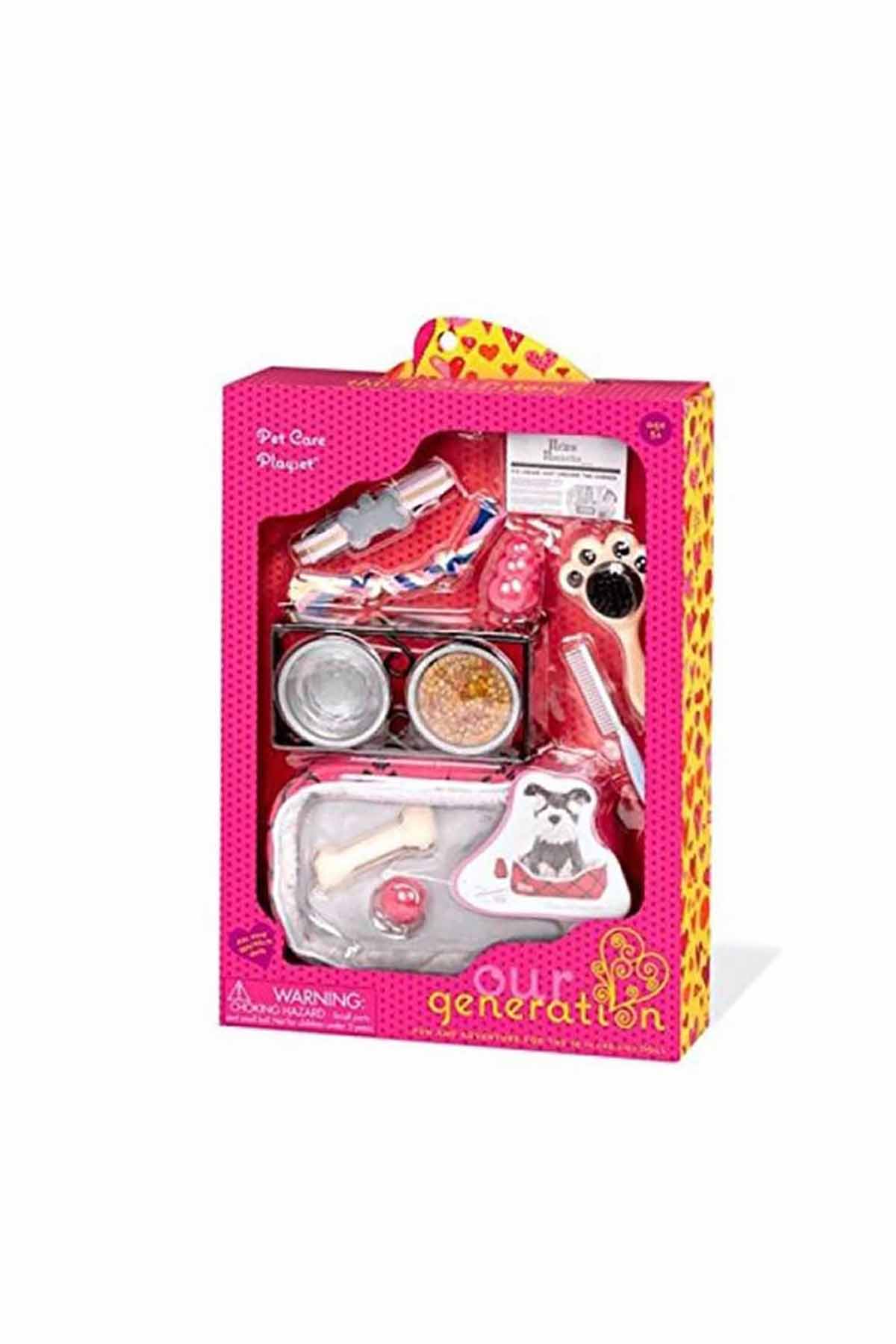Our Generation Evcil Hayvan Seti, 46 cm Our Generation bebeklerle uyumlu peluş köpekler için hazırlanmış kapsamlı bir bakım ve oyun aksesuar setidir. 13 parçadan oluşan bu set, çocukların sevimli dostlarıyla gerçek bir bakım rutini oluşturmasına olanak tanır. Mama kabından su kabına, tarak ve fırçadan tasma ve oyuncağa kadar her detay, evcil hayvan bakımını oyun içinde keyifli bir deneyime dönüştürür. Set içinde yer alan yumuşak köpek yatağı, peluş dostların dinlenmesi için rahat bir alan sunarken; top, çiğneme oyuncağı ve ip gibi eğlenceli parçalar, oyun saatlerini daha hareketli ve canlı hale getirir. Mama ve su kabını yükselten şık siyah tepsi ise gerçek hayattaki bakım ritüellerini oyuna taşıyan fonksiyonel bir detaydır. Çocuklar, tasma ve kayış sayesinde köpeklerini gezdirebilir, bakımını yapabilir ve sorumluluk bilinci kazanabilir. Our Generation Evcil Hayvan Seti, çocukların minik dostlarına özen göstermeyi öğrenebileceği, hayal gücünü destekleyen ve oyun saatlerine hareket katan harika bir tamamlayıcı settir.