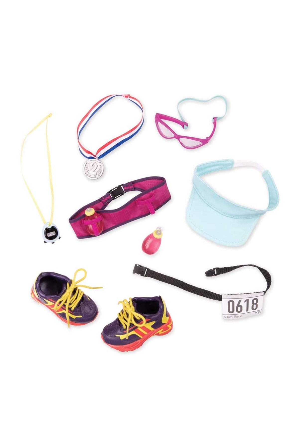 Bebeğinizin büyük bir hayalin gerçekleşmesi için harika bir eğitim almasına izin verin. Marathon Run For Fun Set ile maraton için uzun mesafe koşu ayakkabısı yardımı ile antrenman yapıyor ve kendinizi güne hazırlıyorsunuz. Koşu bandına iki su şişesi takabilirsiniz, böylece büyük efor sırasında her zaman içecek bir şeyleriniz olur. Koşucunuzun yüzünü güneşten korumak için bebeğinizin şapkasını takın. Birisi bir maraton koşusu için bu kadar gayretle antrenman yaparsa, doğal olarak doğru ekipmana ihtiyaç duyar. Koşu zamanını durdurmak ve bebeğinizin ne kadar hızlı koşabildiğini görmek için kronometreyi kullanın! Yarışma günü geldiğinde, yarış numarası kemerini sportif bebeğinize takarsınız. Bu, dövüş hakemlerinin koşucuları belirlemelerine ve böylece harika performanslarından sonra onlara gümüş madalya vermelerine olanak tanır. Kazanmakla ilgili değil, elinizden gelenin en iyisini yapmak ve eğlenmekle ilgili!