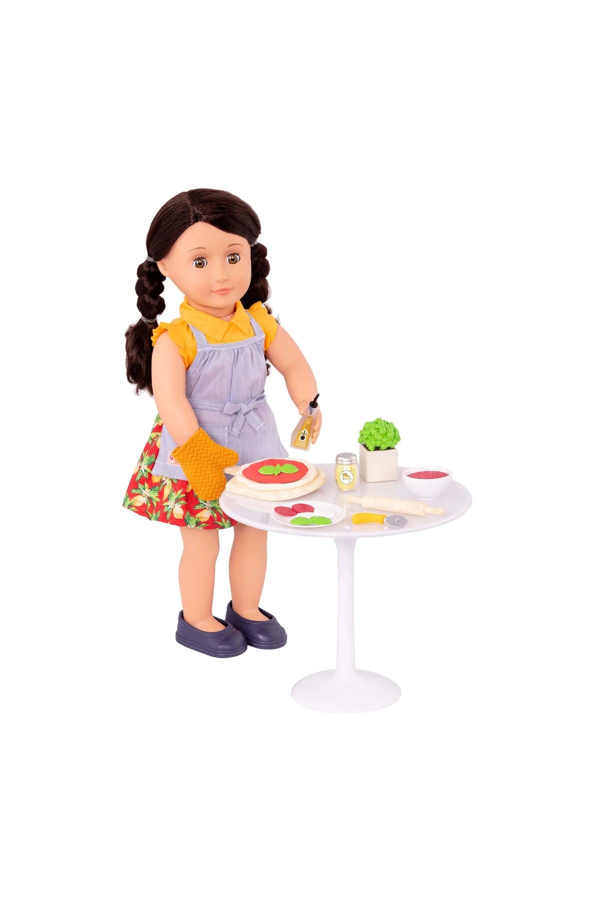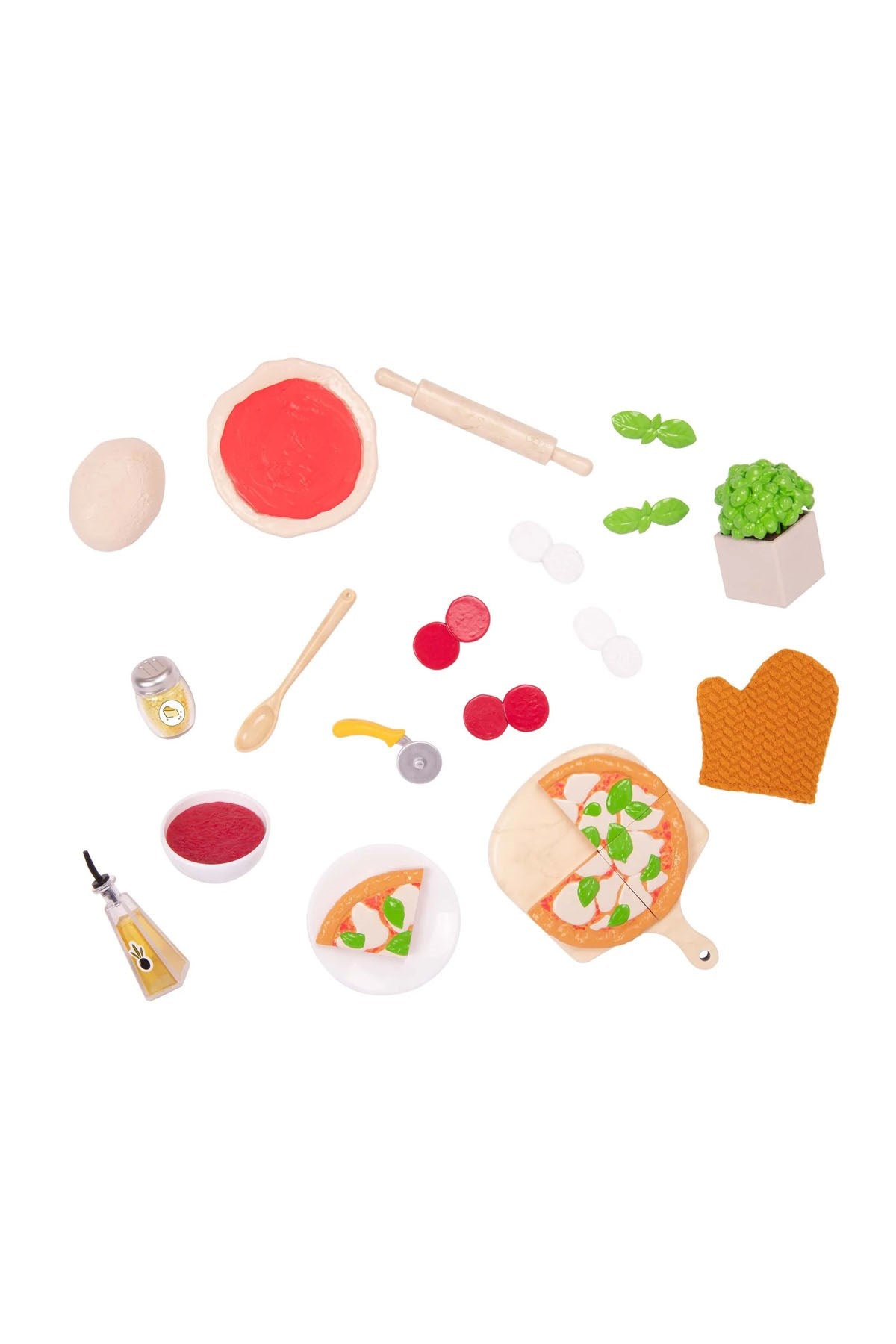 Our Generation Pizza Seti, çocukların hayal gücünü ve el becerilerini destekleyen eğlenceli bir bebek oyun setidir. Minik şefler, pizza hamurunu oklava ile açıp domates sosunu yayarak kendi pizzalarını hazırlarken hem rol yapma oyunları oynar hem de ince motor becerilerini geliştirir. Fırın eldiveni, pizza kesici, zeytinyağı şişesi ve parmesan çalkalayıcı gibi detaylı aksesuarlar sayesinde çocuklar, gerçek mutfak deneyimini oyunlarına taşıyabilir. Our Generation bebekleri ile birlikte kurgulanan pizza partileri, sosyal becerileri ve paylaşma duygusunu desteklerken keyifli zaman geçirmelerini sağlar. Pizza temalı bu set, hem tek başına hem de arkadaşlarla oynanabilecek yaratıcı senaryolar sunar. Çocuklar bebek misafirlerine pizza servis ederken sırasıyla sosu ekler, malzemeleri dizer ve dilimleyerek servis edermiş gibi yapar. Böylece hayal gücünü kullanarak uzun süre sıkılmadan oyun kurabilir. Our Generation Pizza Seti, 3 yaş ve üzeri çocuklar için tasarlanmış harika bir tamamlayıcı oyun aksesuarıdır.