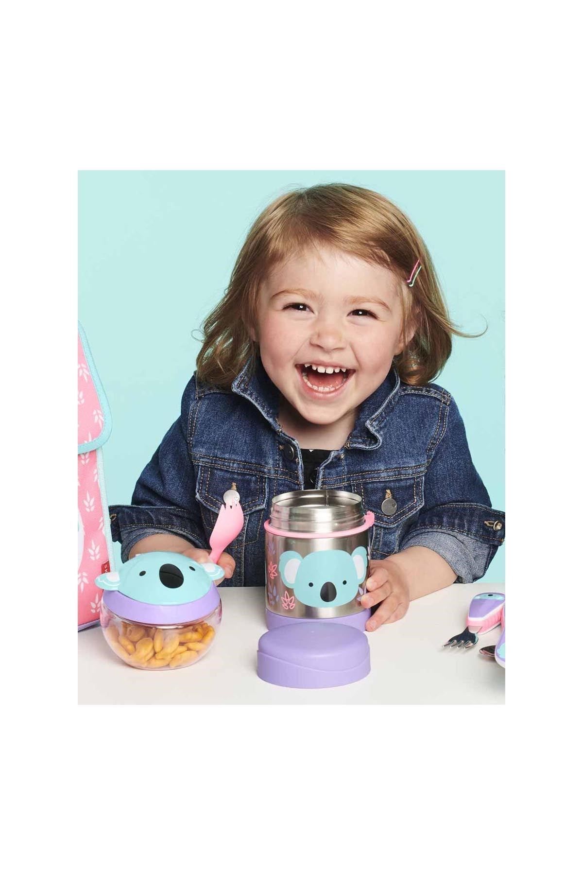 Çocuklarınız için öğünleri her yerde taze ve keyifli hale getiren Skip Hop Paslanmaz Çelik Termos Koala, şirin tasarımı ve pratik kullanımıyla öne çıkıyor. Çocuk porsiyonlarını sıcak ya da soğuk tutmak için özel olarak tasarlanan bu termos, hareket halindeyken bile yemek keyfini kolaylaştırıyor. Paslanmaz çelik gövdesi sayesinde yiyecekleri 7 saate kadar sıcak, 5 saate kadar soğuk korur. Dahili tutucu kısmı, çatal, kaşık ya da spork gibi aletlerin kolayca taşınmasını sağlar. Kutunun içinde bulunan spork (kaşık + çatal) ile çocuklar yemeklerini rahatça tüketebilir. BPA içermeyen, güvenli malzemelerden üretilmiş olması ise ekstra güven sunar.