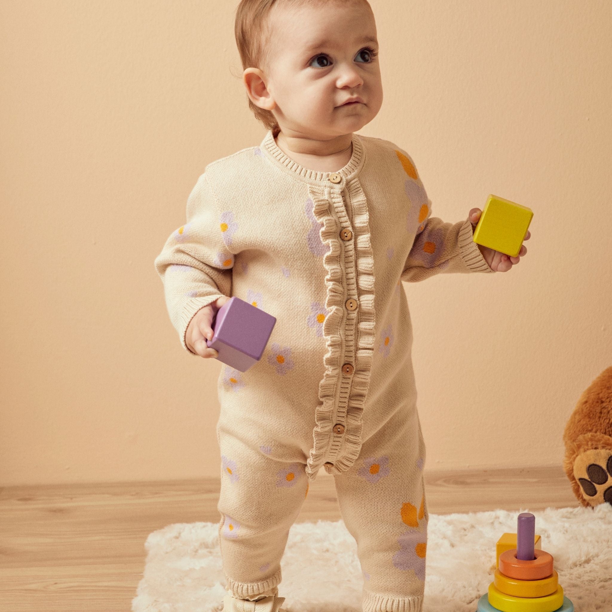 Patique Çiçek Desenli Fırfırlı Tulum, %100 organik pamuk kullanılarak GOTS sertifikalı olarak üretilmiştir. Yumuşak, nefes alabilir ve esnek yapısı sayesinde bebeğinizin hassas cildini korurken hareket özgürlüğü sağlar. Pembe rengi ve şık çiçek desenli fırfır detaylarıyla hem günlük kullanım hem de özel günler için idealdir. Patique Çiçek Desenli Fırfırlı Tulum, bebeğinizin hem rahat hem de şık bir şekilde giyinmesini sağlayan, organik ve güvenli bir seçenektir.