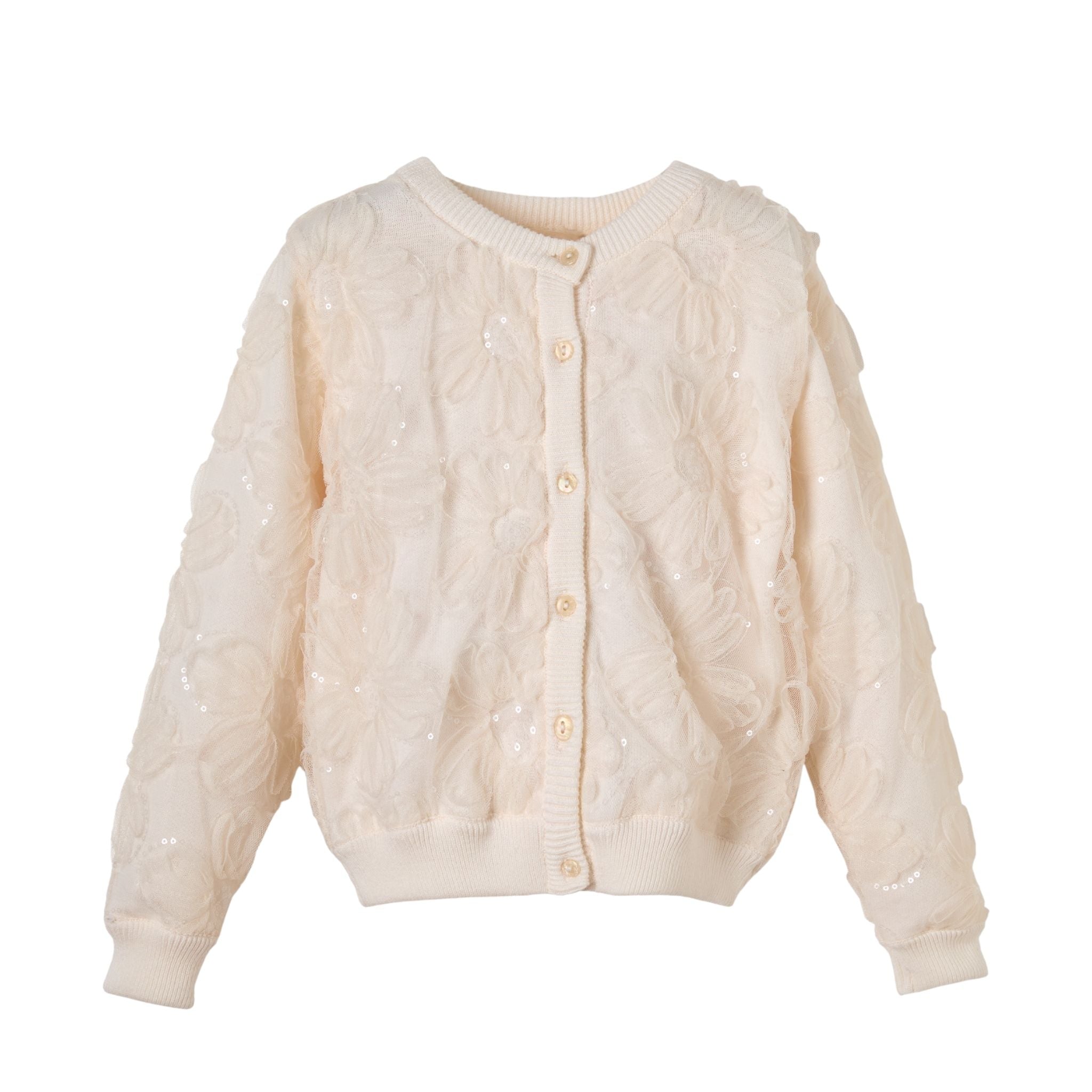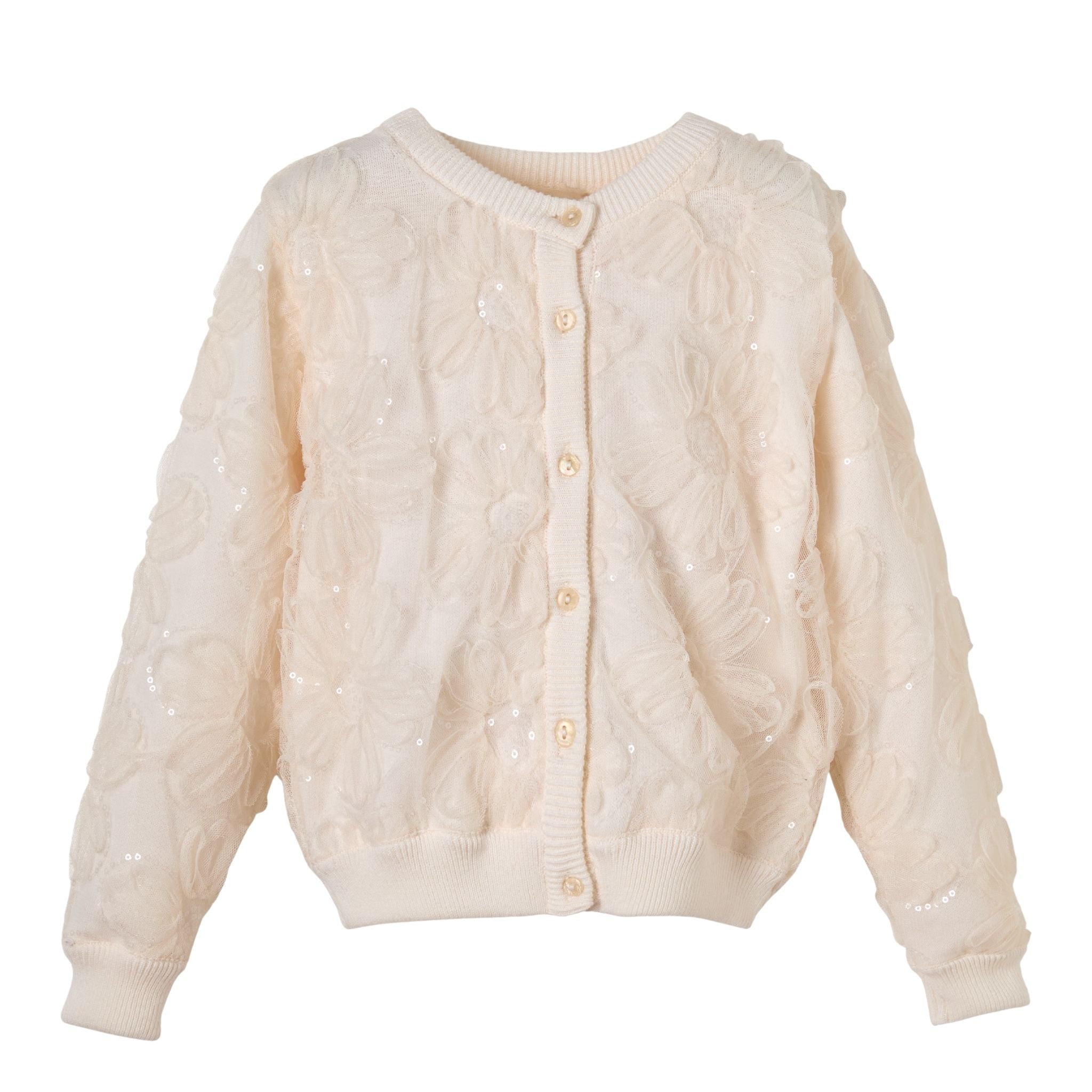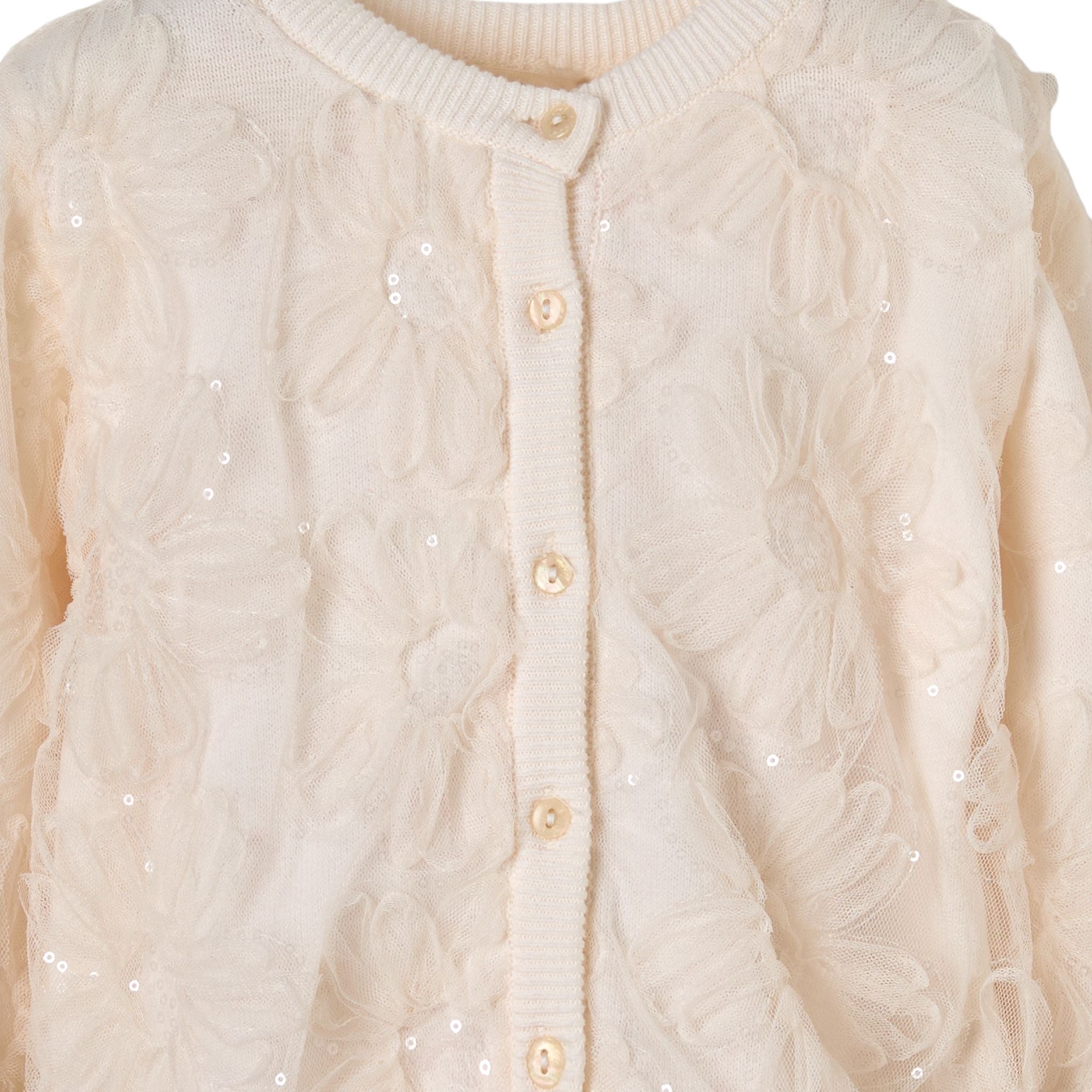 Patique Ekru Organik Pamuk Hırka, %100 organik pamuk kullanılarak GOTS sertifikasıyla üretilmiştir ve bebeklerin hassas ciltleri için güvenlidir. Nefes alabilen yapısı ve yumuşak triko dokusu, mevsim geçişlerinde konfor sağlar. Çiçek desenli garnili tasarımıyla hem şık hem zarif bir görünüm sunar, günlük kullanım ve özel günler için uygundur.