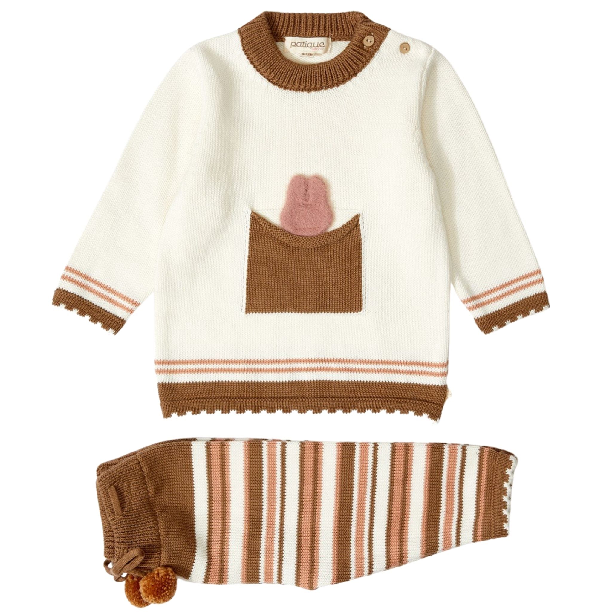 Patique Ekru Tavşan Cepli Organik Pamuk Triko Takım, %100 organik pamuk kullanılarak GOTS (Global Organic Textile Standard) sertifikasıyla üretilmiştir. Hassas bebek ciltleri için güvenli olan bu takım, yumuşak ve nefes alabilir yapısıyla maksimum konfor sağlar. Ekru rengi ve sevimli tavşan desenli cepli tasarımı ile hem şık hem de pratik bir görünüm sunar. Sonbahar ve kış mevsimi için uygun olan bu takım, bebeklerin hem günlük kullanım hem de özel günlerde rahatlıkla giyebileceği bir seçenektir. Patique Ekru Tavşan Desenli Organik Pamuk Triko Takım, yumuşak, nefes alabilir ve sevimli tasarımıyla bebeklerin konforunu ve tarzını bir araya getirir.