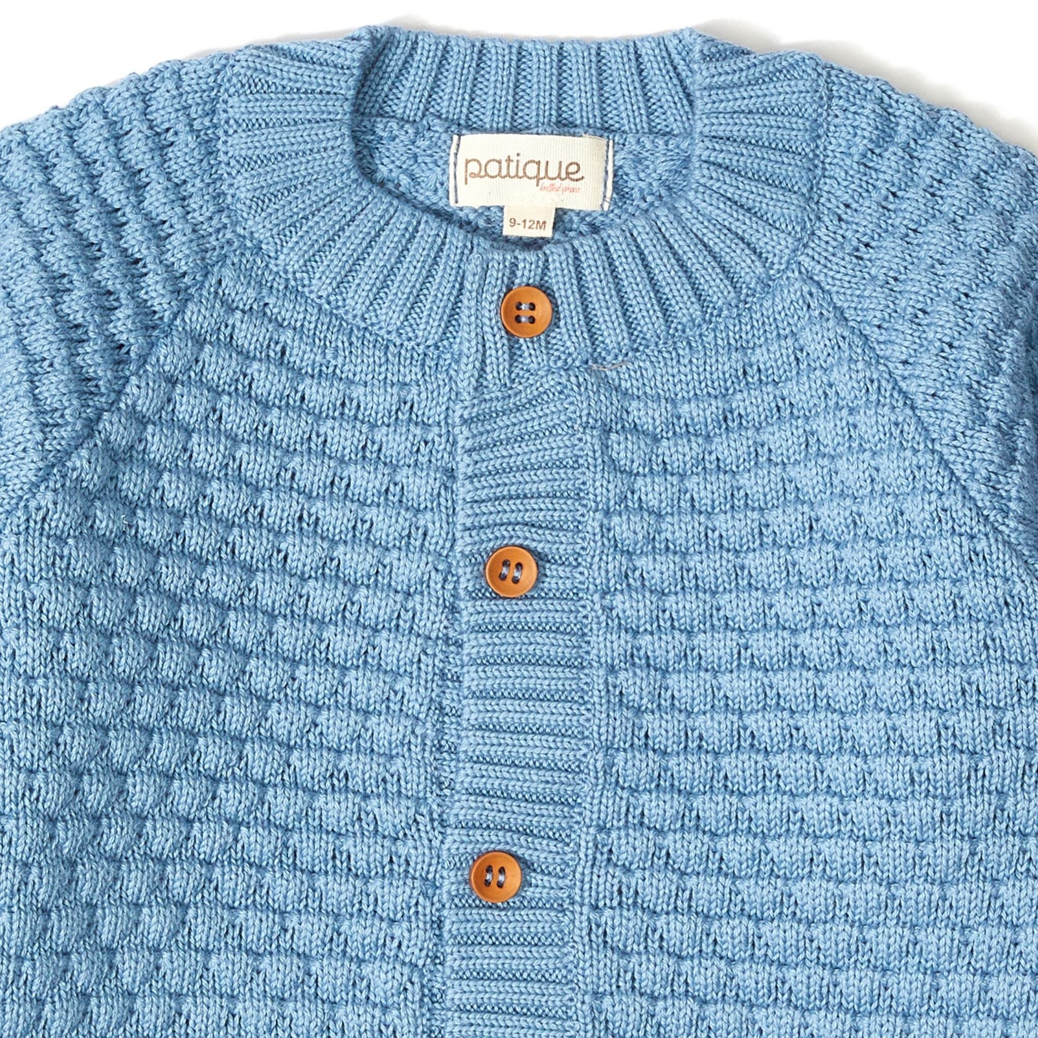 Patique İndigo Organik Pamuk Triko Bebek Hırka, %100 organik pamuk kullanılarak GOTS sertifikasıyla üretilmiştir ve bebeklerin hassas ciltleri için tamamen güvenlidir. Yumuşak triko dokusu, nefes alabilirliği ve esnek yapısıyla sonbahar ve kış aylarında hem konfor hem de şıklık sağlar. İndigo rengi sayesinde hem kız hem de erkek bebekler için unisex kullanım sunar. Patique İndigo Organik Pamuk Triko Bebek Hırka, bebeklerin konforunu ve şıklığını bir araya getiren, sonbahar/kış döneminin ideal parçalarından biridir.
