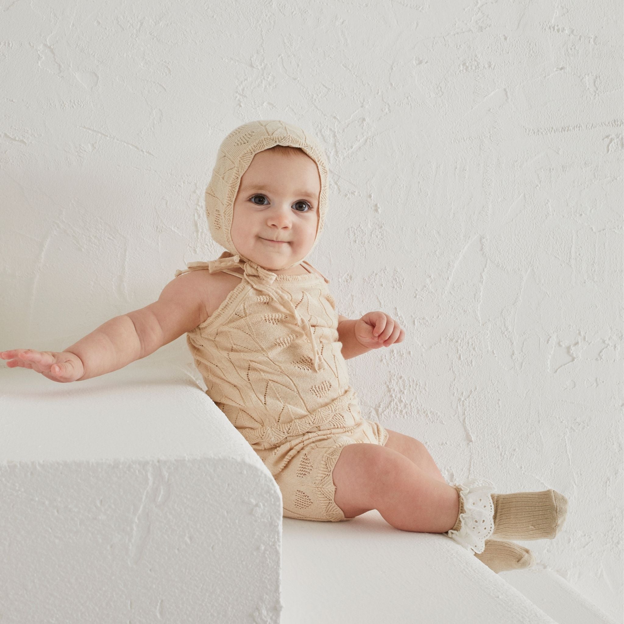 Bebeklerin hassas cildi için özel olarak tasarlanmış Patique Bej Ajurlu 3’lü Takım, %100 organik pamuk kullanılarak GOTS (Global Organic Textile Standard) sertifikasıyla üretilmiştir. Yumuşak, nefes alabilir ve esnek yapısıyla bebeklerin konforunu ön planda tutar. Bej rengi ile sade ve şık bir görünüm sağlayan bu takım, ilkbahar ve yaz aylarında bebeklerin gardırobunun vazgeçilmez parçalarından biri olur.