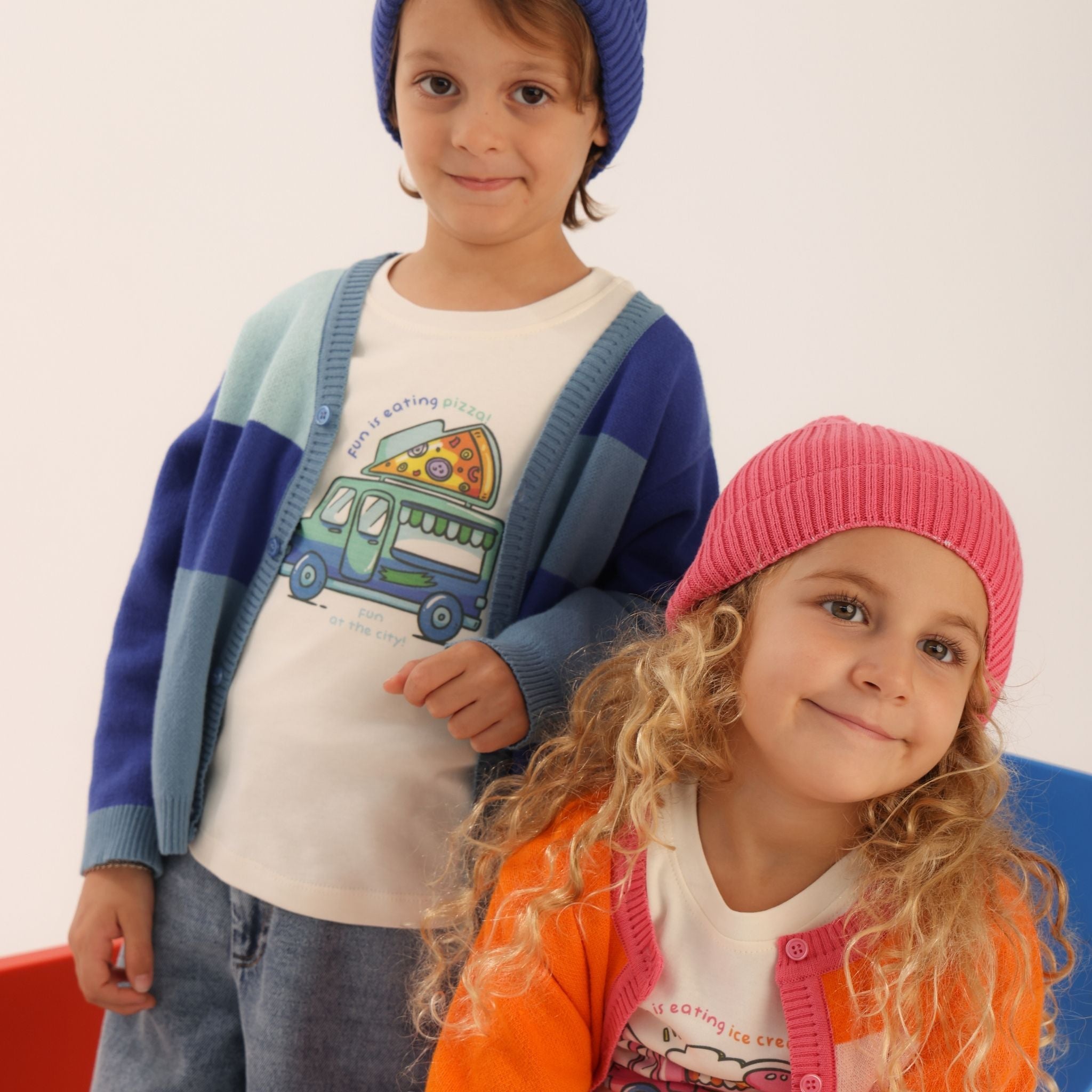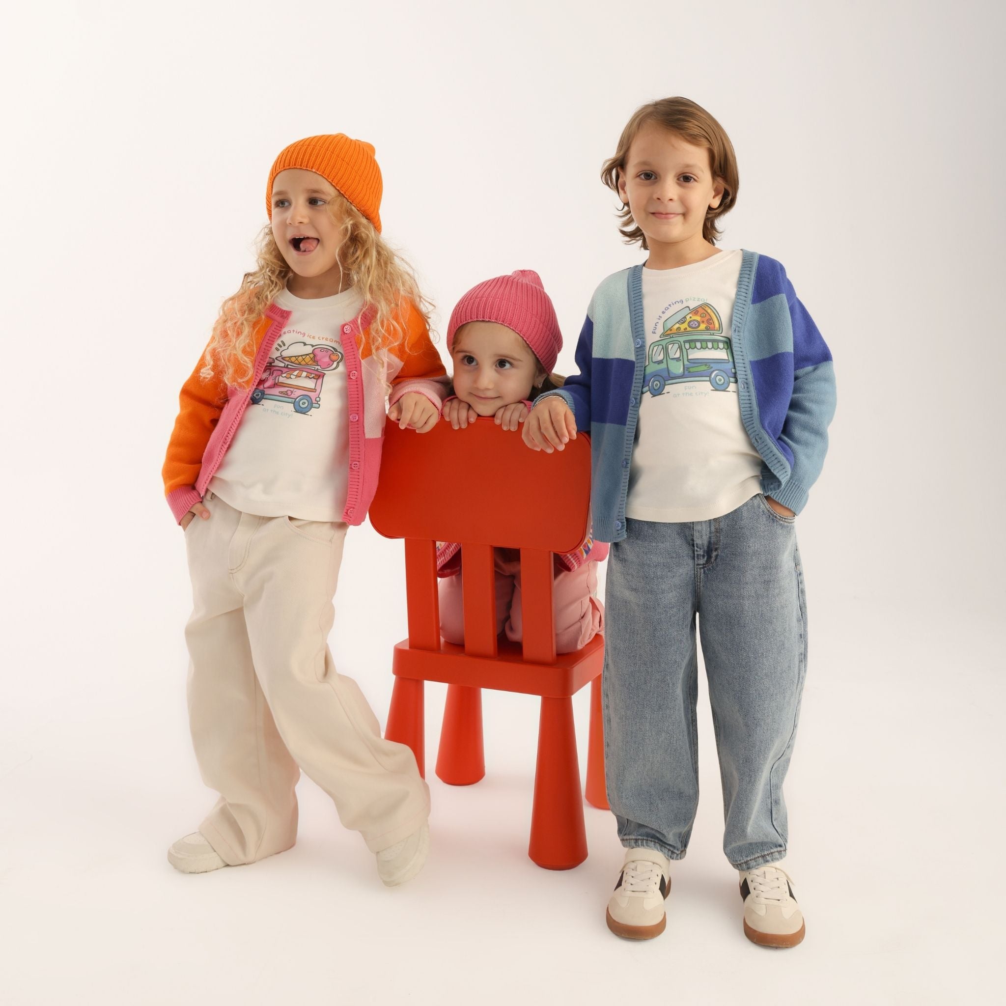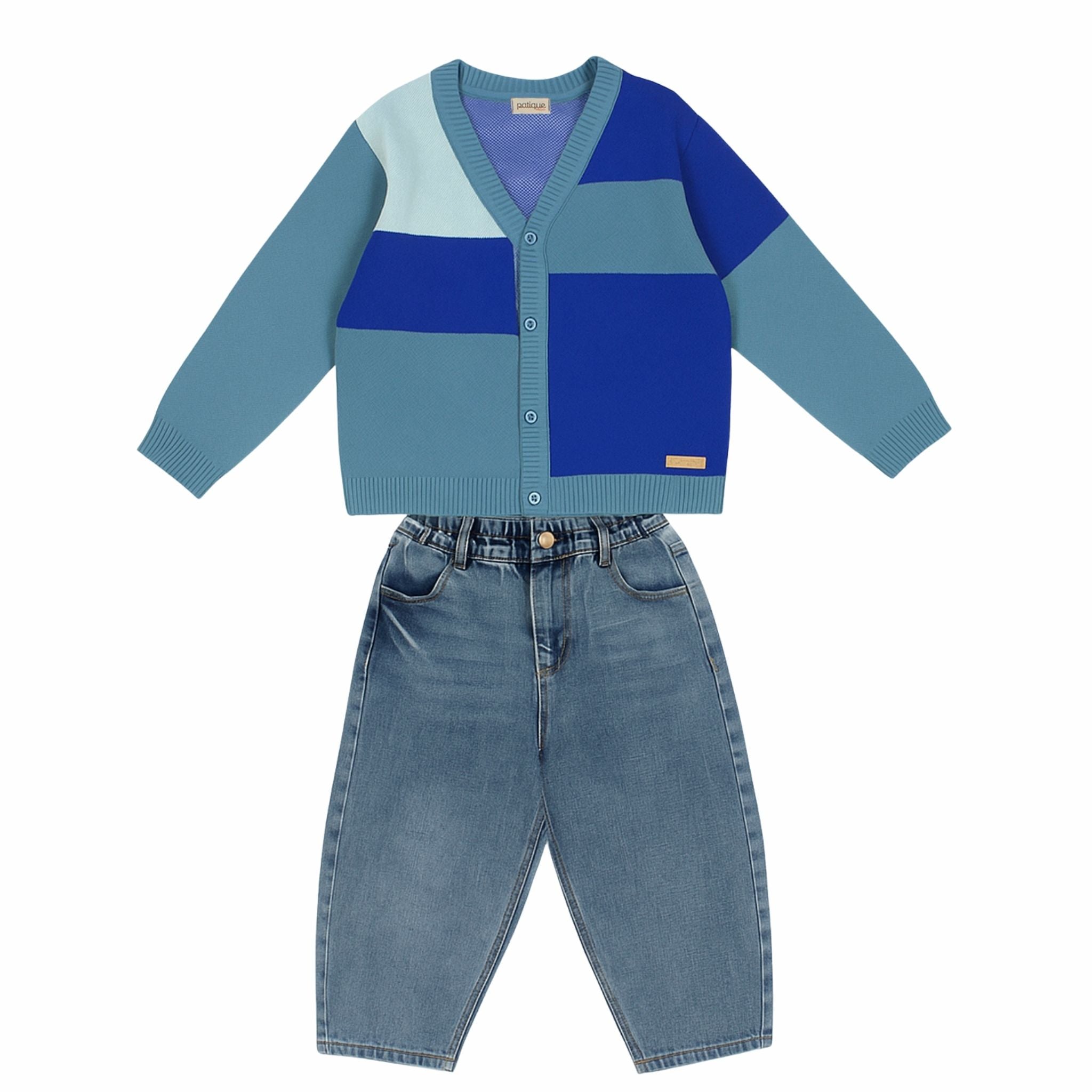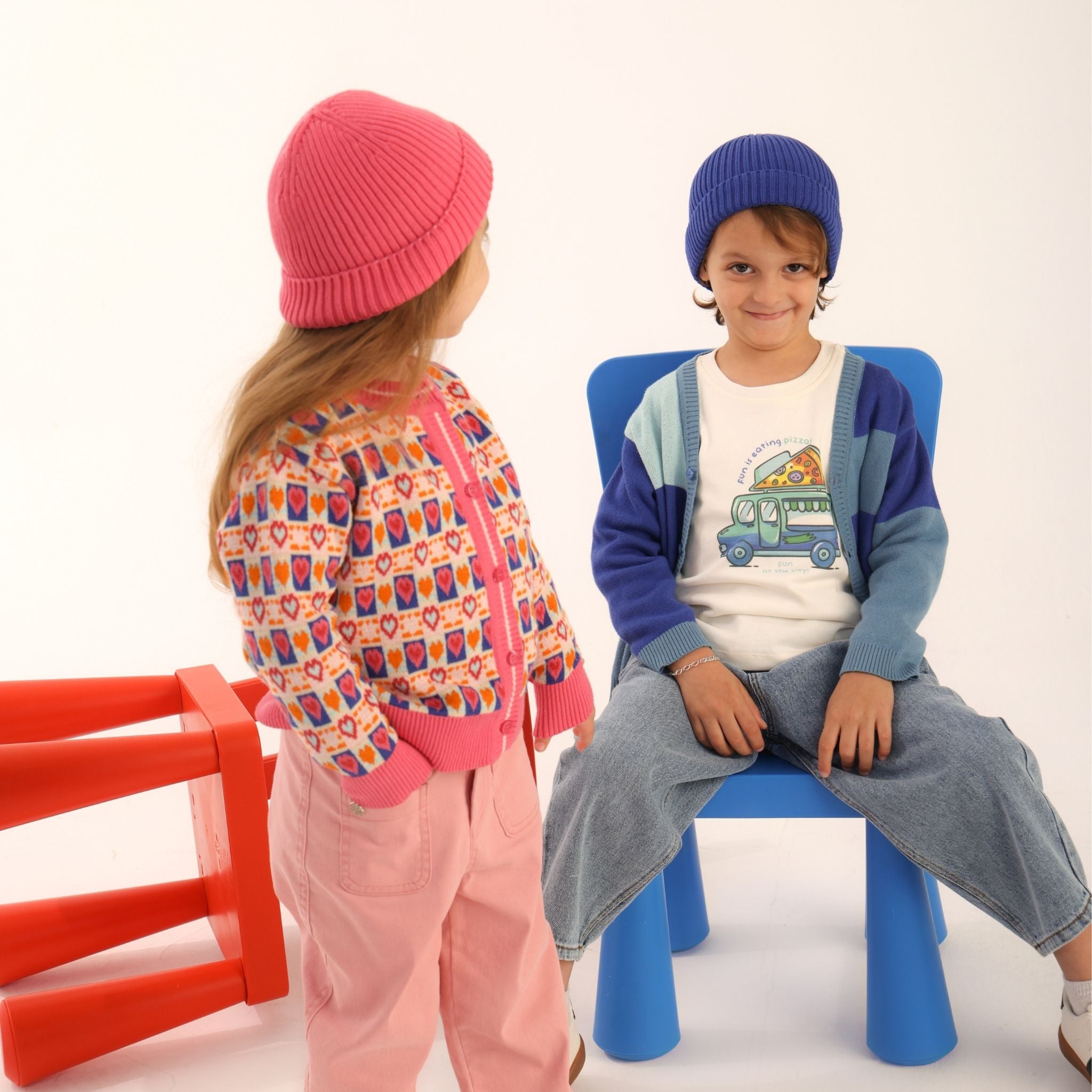 Patique renk bloklu erkek çocuk hırka, modern çizgisi ve dikkat çekici renk geçişleriyle hem günlük kombinlere hem de okul stiline dinamizm katan şık bir tasarım sunar. Mavi tonlarının uyumlu geçişleri, hırkaya hem sportif hem de modern bir görünüm kazandırırken, yumuşak dokulu kumaşı çocukların gün boyu rahat etmesi için özel olarak geliştirilmiştir. V yaka kesimi ve düğmeli yapısı sayesinde kolay giyilip çıkarılabilir. Esnek örgü formu hareket özgürlüğü sağlar, bilek ve etek ucu ribanalı tasarım ise hırkanın formunu korumasına yardımcı olur. Renk bloklu yapısıyla sade kıyafetleri bile anında tamamlayan bu hırka, her mevsimde kullanılabilecek çok yönlü bir parça olarak öne çıkar. Hem kot pantolonlarla hem basic tişörtlerle mükemmel uyum yakalayan model, şık ve kullanışlı bir üst giyim alternatifi arayan aileler için ideal bir seçenektir.