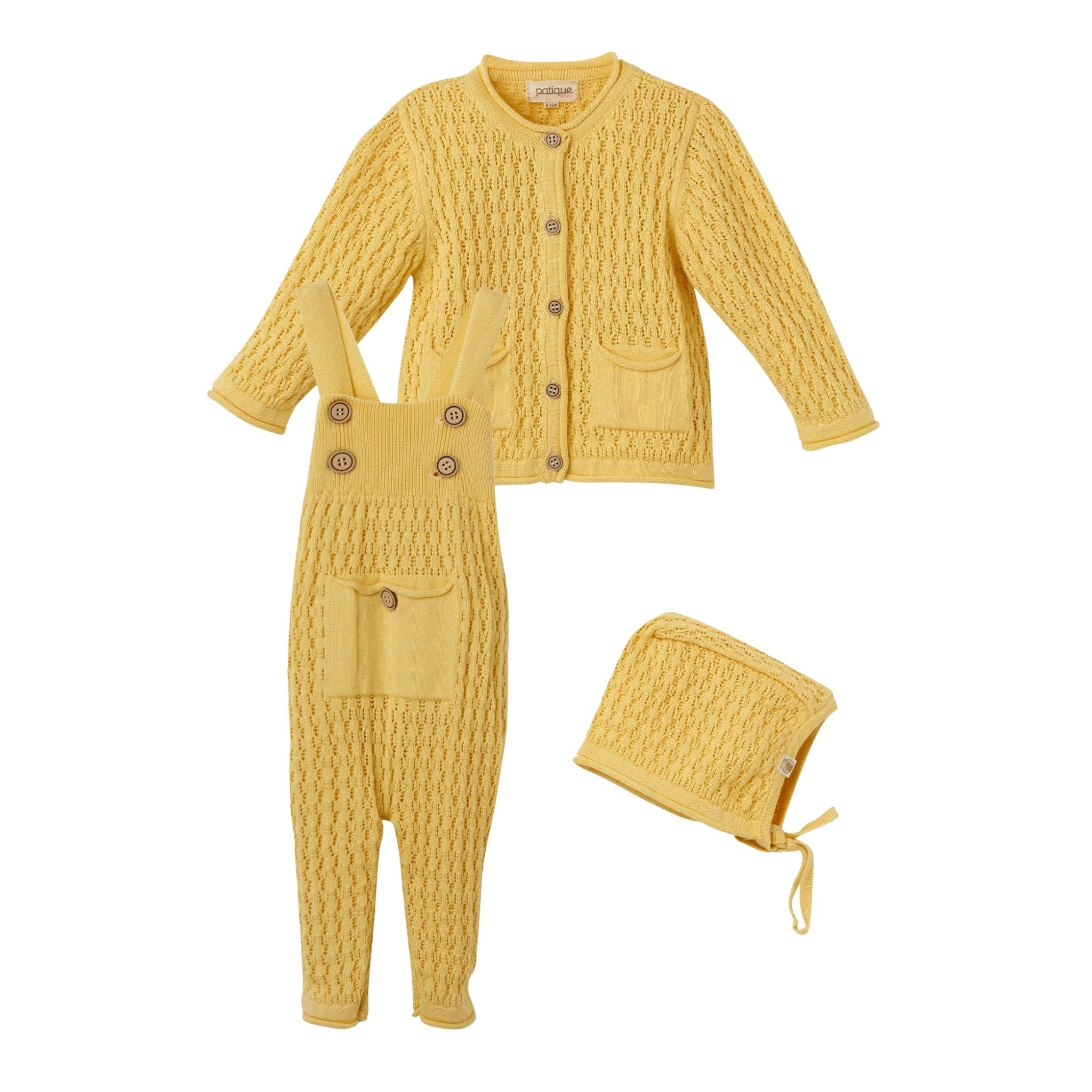 Bebeklerin hassas cildi için özel olarak tasarlanmış Patique Sarı Organik Pamuk 3’lü Takım, %100 organik pamuk kullanılarak GOTS (Global Organic Textile Standard) sertifikasıyla üretilmiştir. Yumuşak, nefes alabilir ve esnek yapısıyla bebeklerin konforunu ön planda tutar. Sarı rengi ile enerjik bir görünüm sağlayan bu takım, sonbahar ve kış aylarında bebeklerin gardırobunun vazgeçilmez parçalarından biri olur. Patique Sarı Organik Pamuk 3’lü Takım, bebeklerin hem şık hem rahat bir şekilde giyinmesini sağlayan, sonbahar ve kış ayları için ideal bir seçimdir.