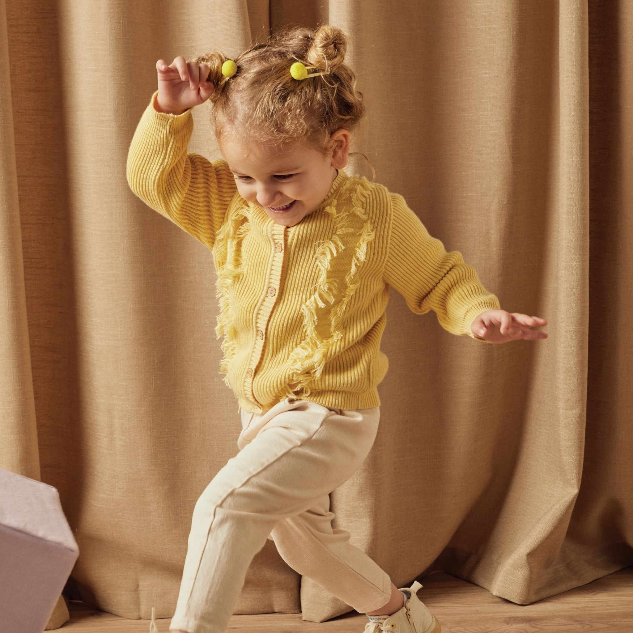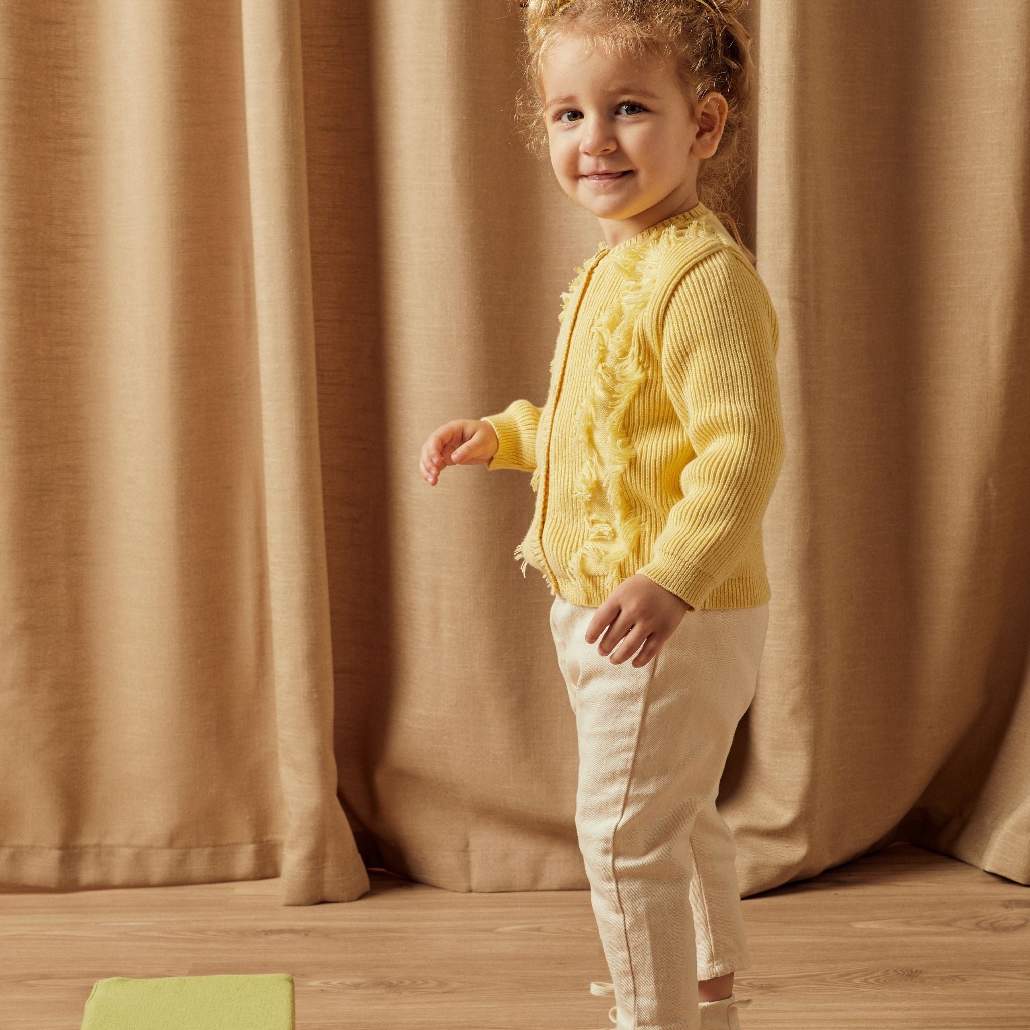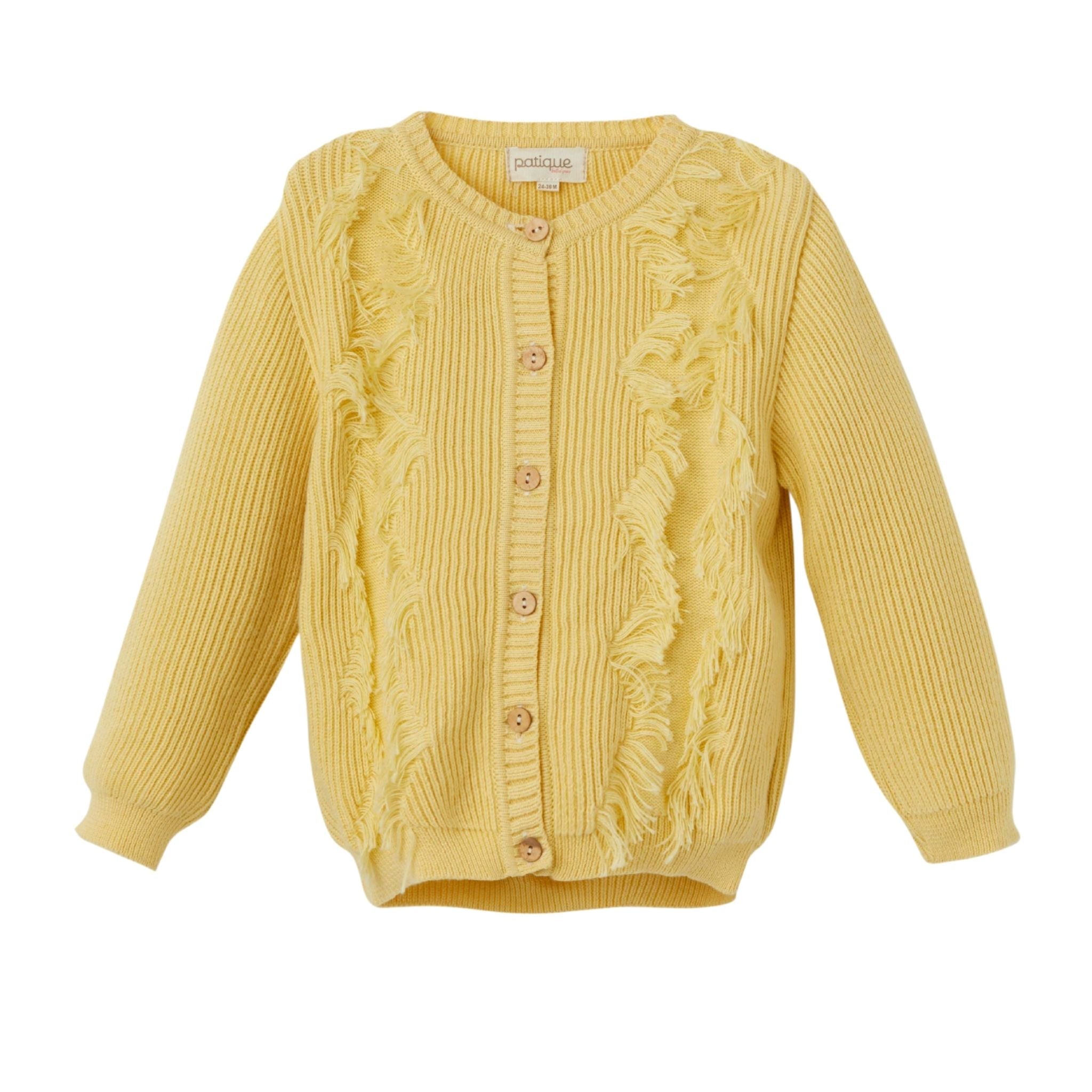 Patique Püskül Detaylı Hırka Sarı, %100 organik pamuk kullanılarak GOTS sertifikasıyla üretilmiştir ve bebeklerin hassas ciltleri için tamamen güvenlidir. Yumuşak triko dokusu ve nefes alabilir yapısı, sonbahar ve kış aylarında sıcaklık ve konfor sağlar. Sarı rengi ve püskül detaylarıyla hem şık hem de eğlenceli bir görünüm sunar. Patique Püskül Detaylı Hırka Sarı, kız bebeklerin gardırobunda konforlu ve şık bir sonbahar/kış seçeneği olarak öne çıkar.