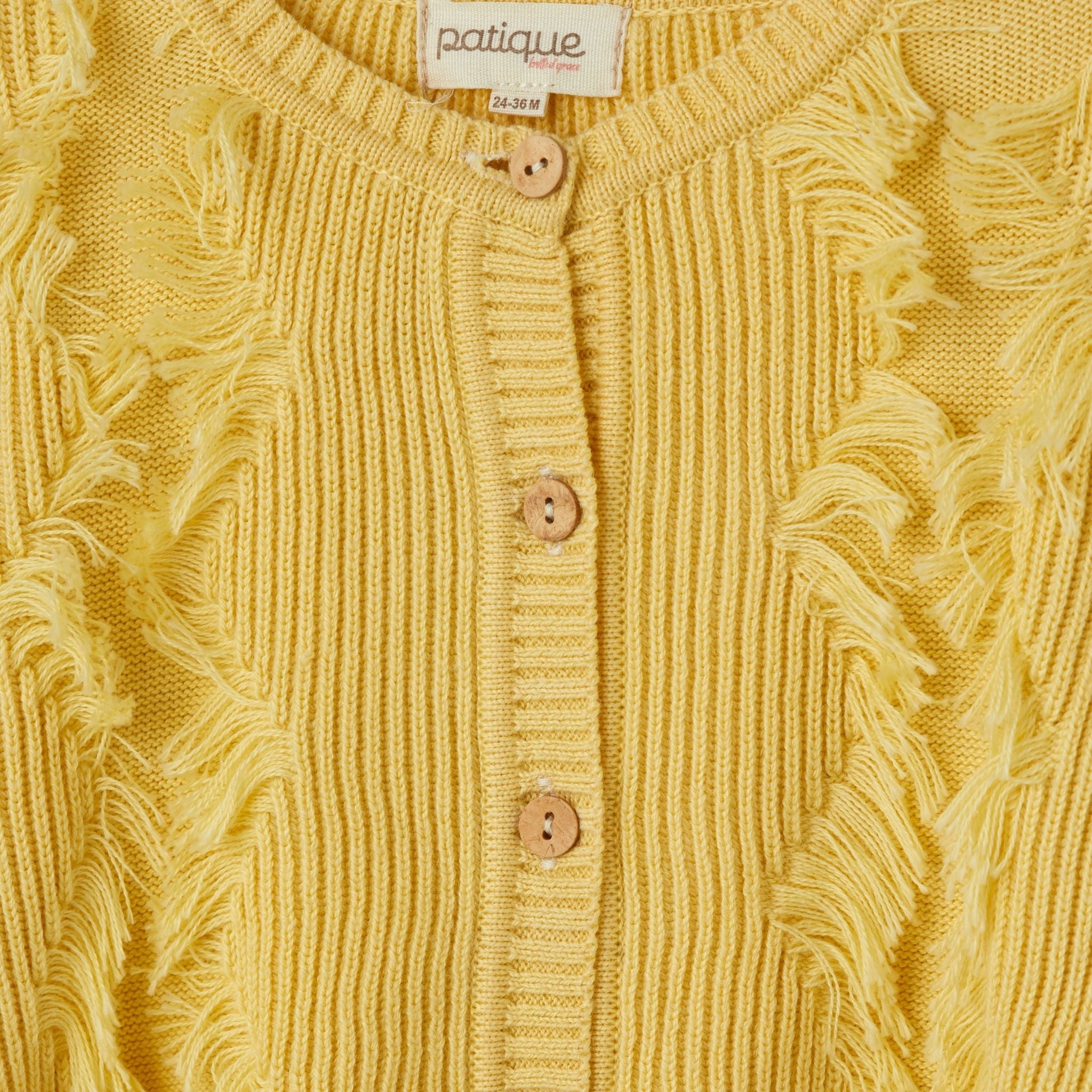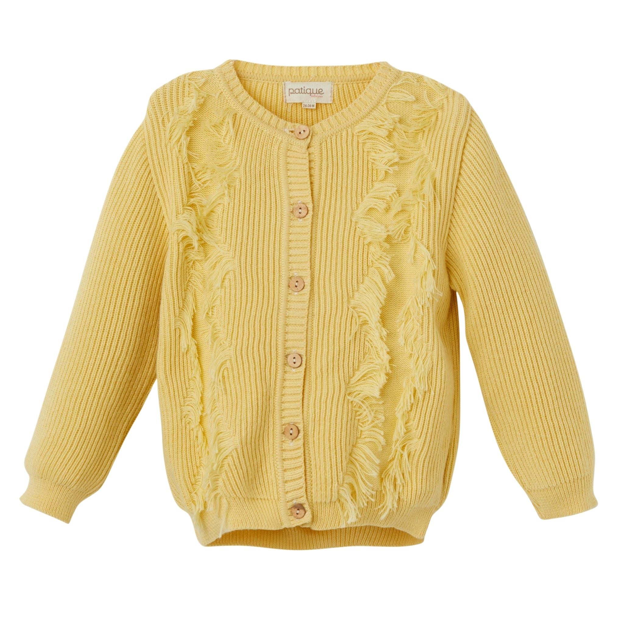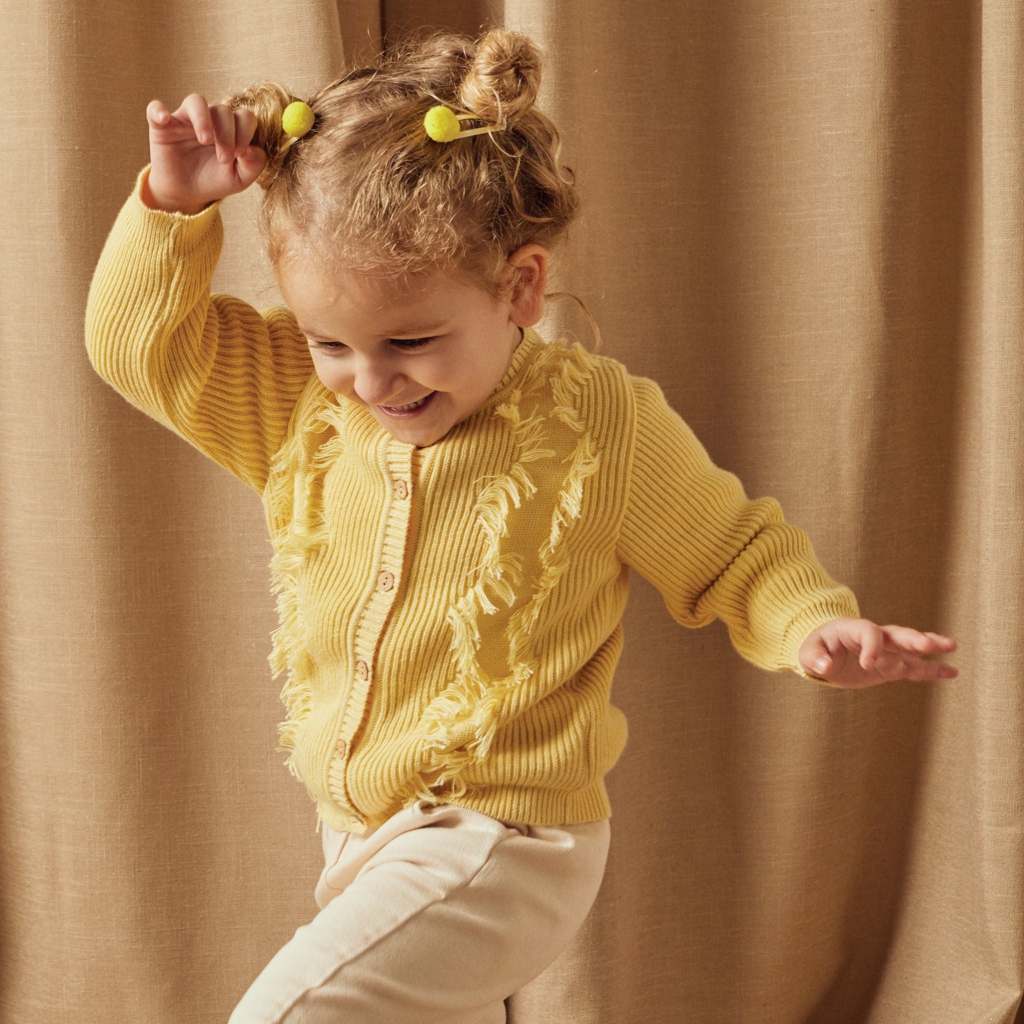 Patique Püskül Detaylı Hırka Sarı, %100 organik pamuk kullanılarak GOTS sertifikasıyla üretilmiştir ve bebeklerin hassas ciltleri için tamamen güvenlidir. Yumuşak triko dokusu ve nefes alabilir yapısı, sonbahar ve kış aylarında sıcaklık ve konfor sağlar. Sarı rengi ve püskül detaylarıyla hem şık hem de eğlenceli bir görünüm sunar. Patique Püskül Detaylı Hırka Sarı, kız bebeklerin gardırobunda konforlu ve şık bir sonbahar/kış seçeneği olarak öne çıkar.