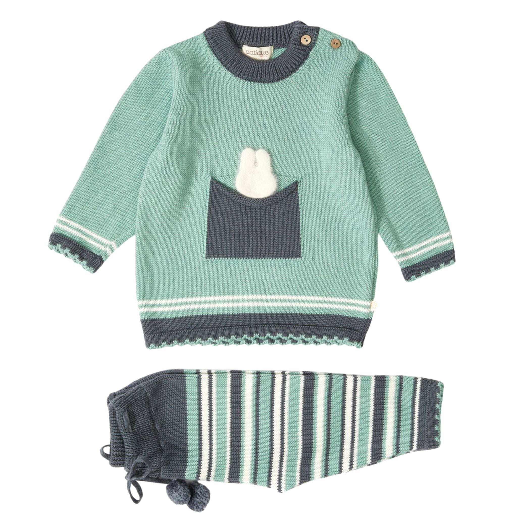 Patique Yeşil Tavşan Cepli Organik Pamuk Triko Takım, %100 organik pamuk kullanılarak GOTS (Global Organic Textile Standard) sertifikasıyla üretilmiştir. Hassas bebek ciltleri için tamamen güvenli olan bu takım, yumuşak ve nefes alabilir yapısıyla konfor sunar. Yeşil rengi ve tavşan desenli cepli tasarımı ile hem sevimli hem şık bir görünüm sağlar. Sonbahar ve kış mevsimi için uygun olan bu takım, bebeklerin hem günlük kullanım hem de özel günlerde rahatlıkla giyebileceği bir seçenektir. Patique Tavşan Desenli Organik Pamuk Triko Takım, yumuşak, nefes alabilir ve şık tasarımıyla bebeklerin konforunu ve tarzını bir araya getirir.