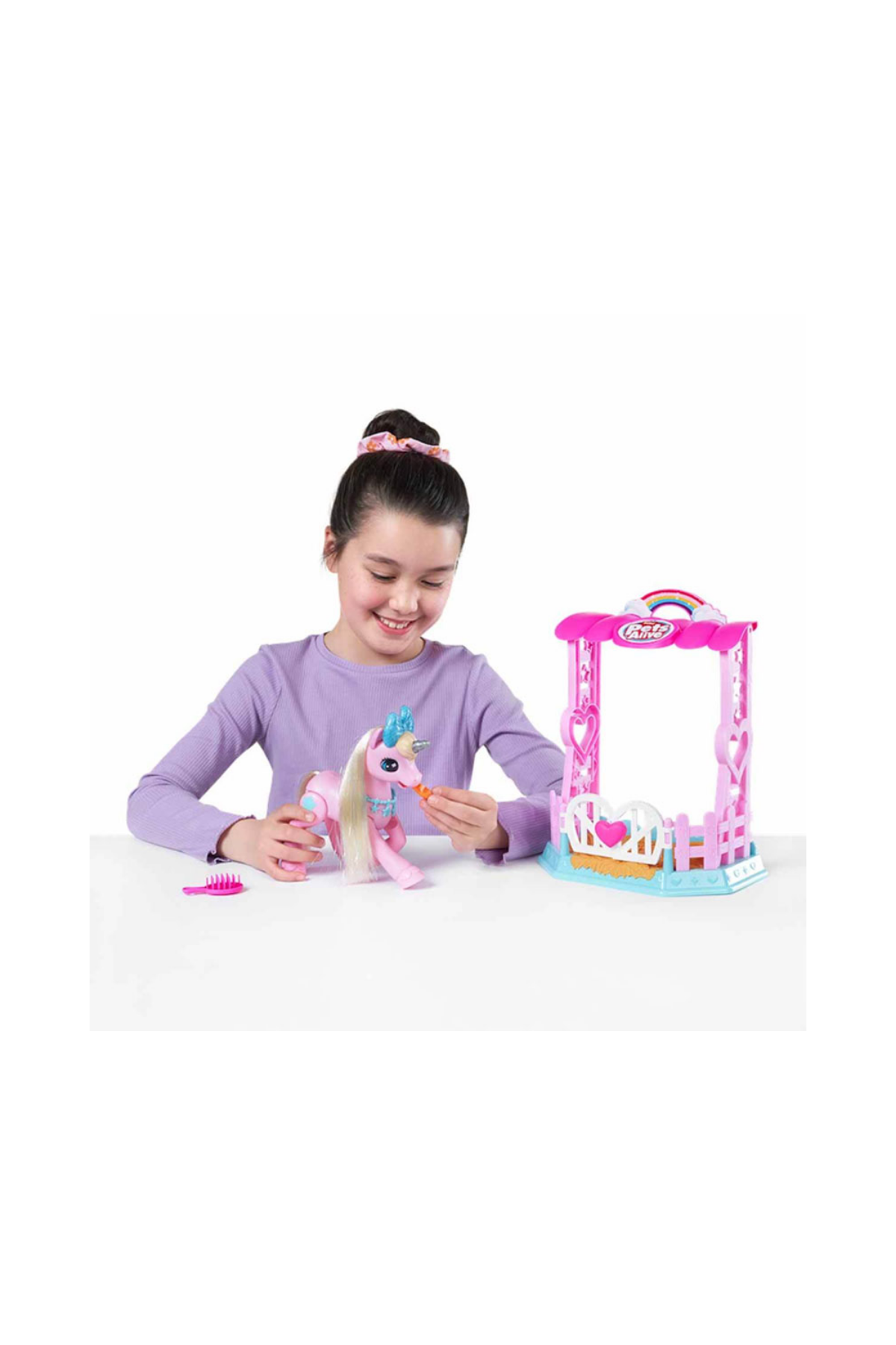 Pets Alive Unicorn Oyun Seti 9545 oyununun yeni üyesi Unicorn ile tanışma zamanı! Unicorn’un uzun yelesini taramaya ne dersin? Pembe tarağını alıp o uzun yeleyi güzelce tarayabilir ve onun daha da güzel görünmesini sağlayabilirsin. Karnı acıkmış olabilir. Paketten çıkan pespembe sevimli unicorn’u paketteki havuçla beslemek çok eğlenceli. Unicorn havuca bayılıyor ve afiyetle yiyor! 10’dan fazla ses ve tepki sayesinde onunla oynamak çok eğlenceli. Tek boynuzlu at seslerini çıkardığını duymak için burnuna vurmanız yeterli. Eklemli bir yapıya sahip olduğu için onu hareket ettirebilir ve poz verdirebilirsin. Böylece oluşturacağın hikayeleri daha gerçekçi kılabilirsin. Eğlence bununla da sınırlı değil. Unicorn’un boynuzuki ışığı keşfetmek heyecan veriyor!