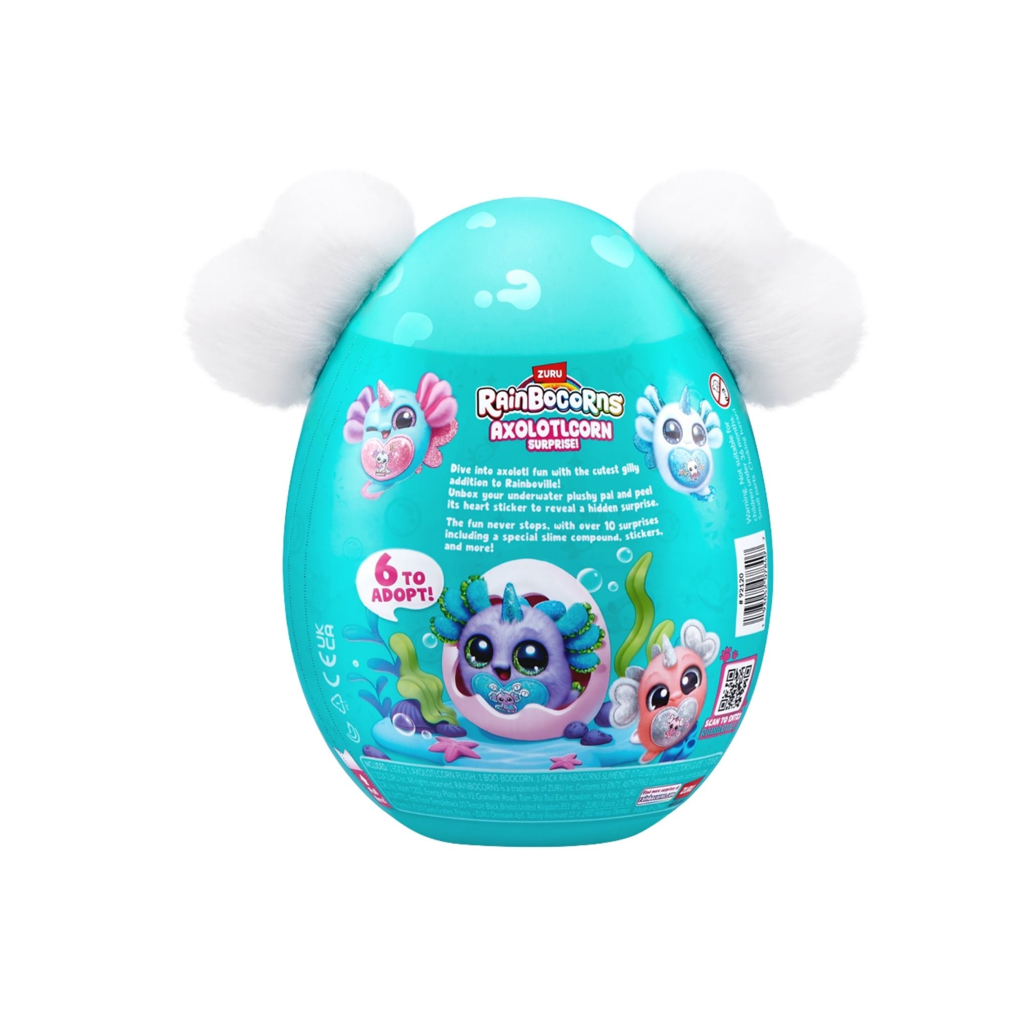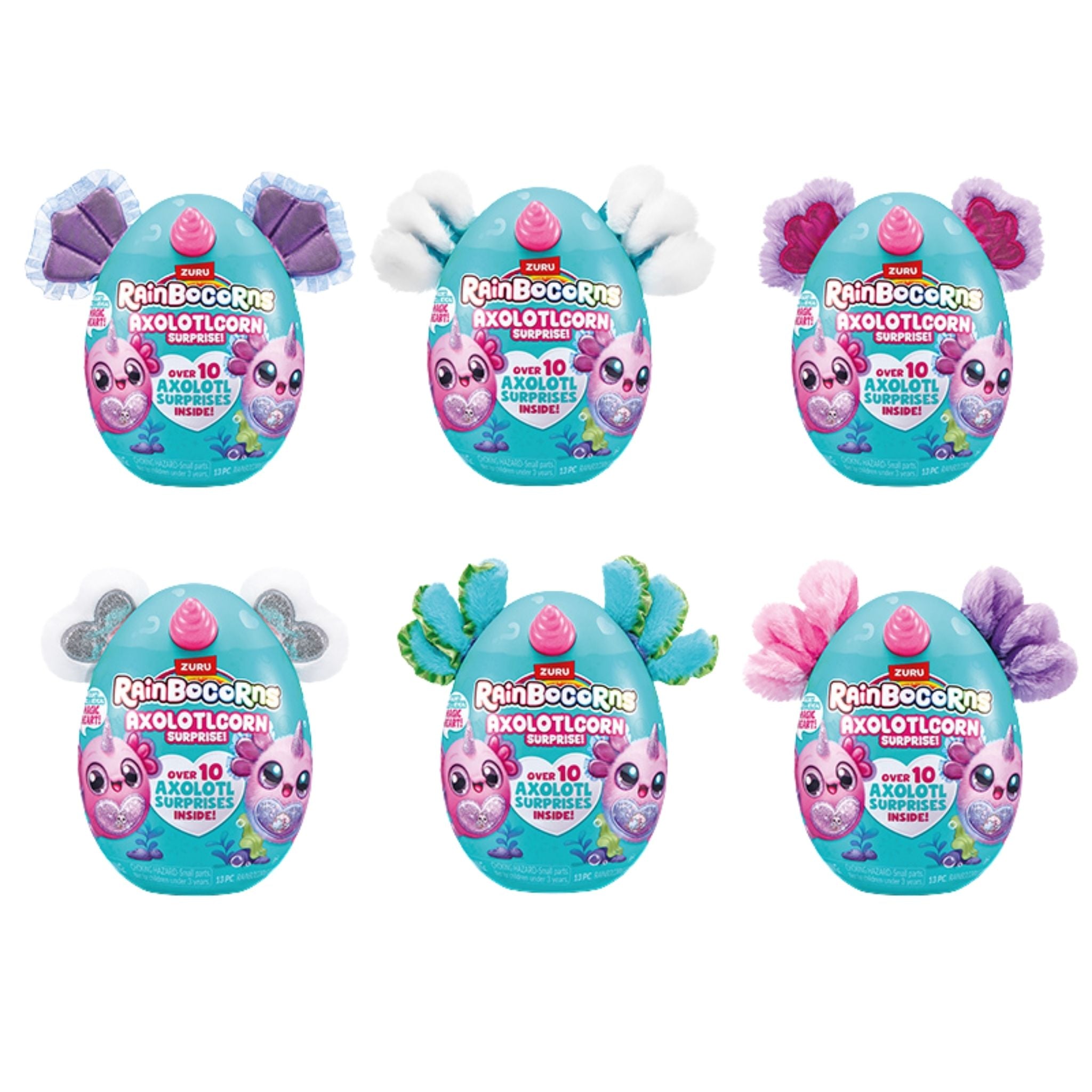 Rainboville’in en tatlı ve en renkli üyelerinden Axolotlcorn, sürpriz dolu kutusuyla çocukların oyun dünyasına renk katıyor. Yumuşacık pelüş dokusu ve sevimli tasarımıyla dikkat çeken Axolotlcorn, yanında getirdiği toplam 10 farklı sürpriz ile keşif heyecanını doruğa çıkarıyor. Sürpriz yumurtaların içinden çıkan Boo-Boocorn figürü, eğlenceli aksesuarlar ve renkli slime ile çocuklar hayal güçlerini sınırsızca kullanabiliyor. Turuncu, beyaz, yeşil, mor, sıcak pembe ve alacalı pembe olmak üzere 6 farklı model seçeneği bulunuyor.