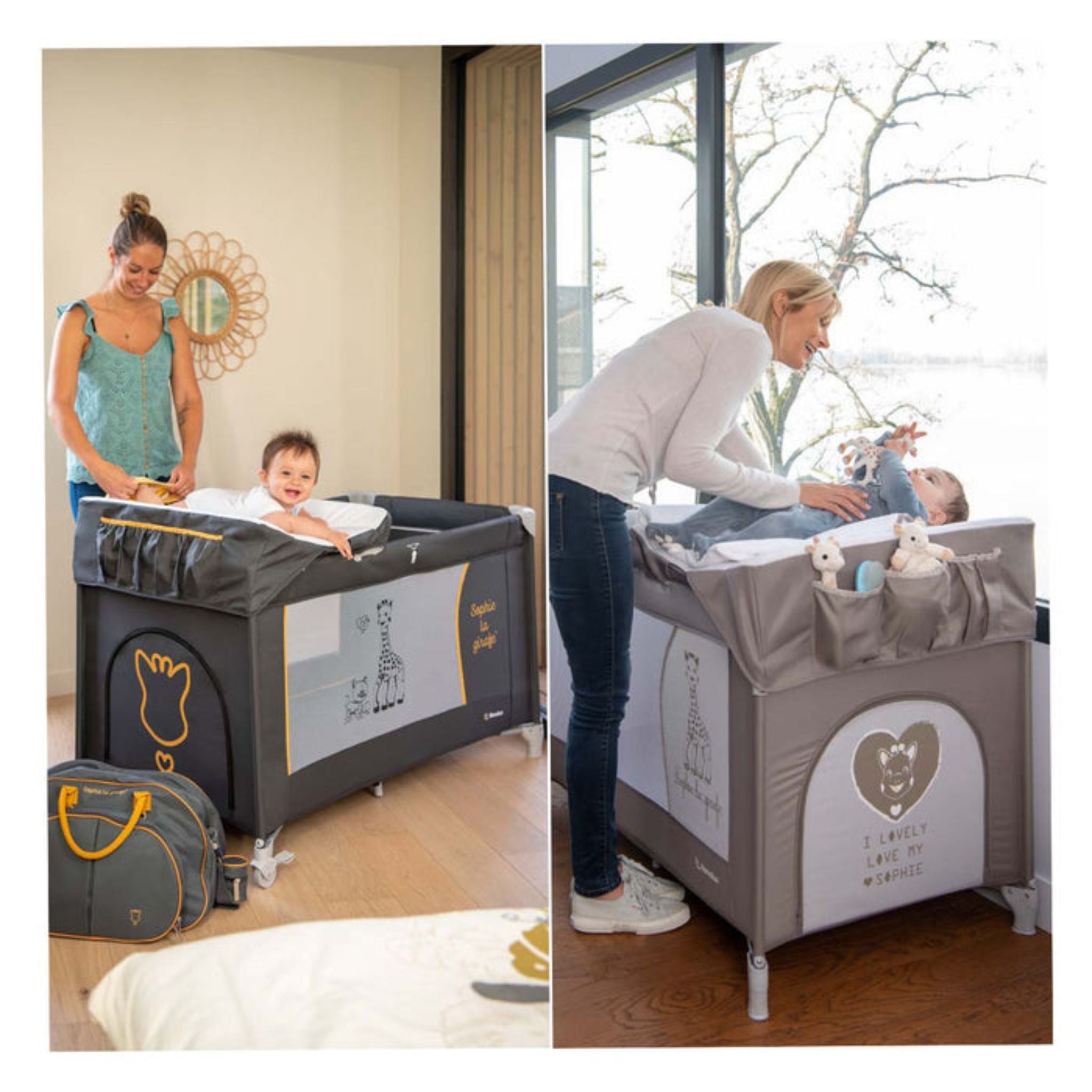 Renolux Sophie La Girafe Optic Z Sunrise Park Yatak, hem beşik hem de oyun parkı olarak kullanılabilen şık ve işlevsel bir modeldir. Sophie la Girafe lisanslı özel tasarımıyla bebekler için eğlenceli, ebeveynler için ise pratik çözümler sunar. Doğumdan itibaren kullanılabilen bu park yatak, yalıtımlı alt değiştirme ünitesi, 2 kademeli uyku seviyesi ve çıkarılabilir oyuncak barı ile bebek bakımını çok daha kolay hale getirir. Renolux Sophie La Girafe Optic Z Sunrise Park Yatak, bebeğinizin hem güvenle uyuması hem de eğlenceli bir şekilde vakit geçirmesi için ideal bir seçimdir. Evde veya seyahatte, pratik taşıma ve katlama özelliği ile ebeveynlere büyük kolaylık sağlar.