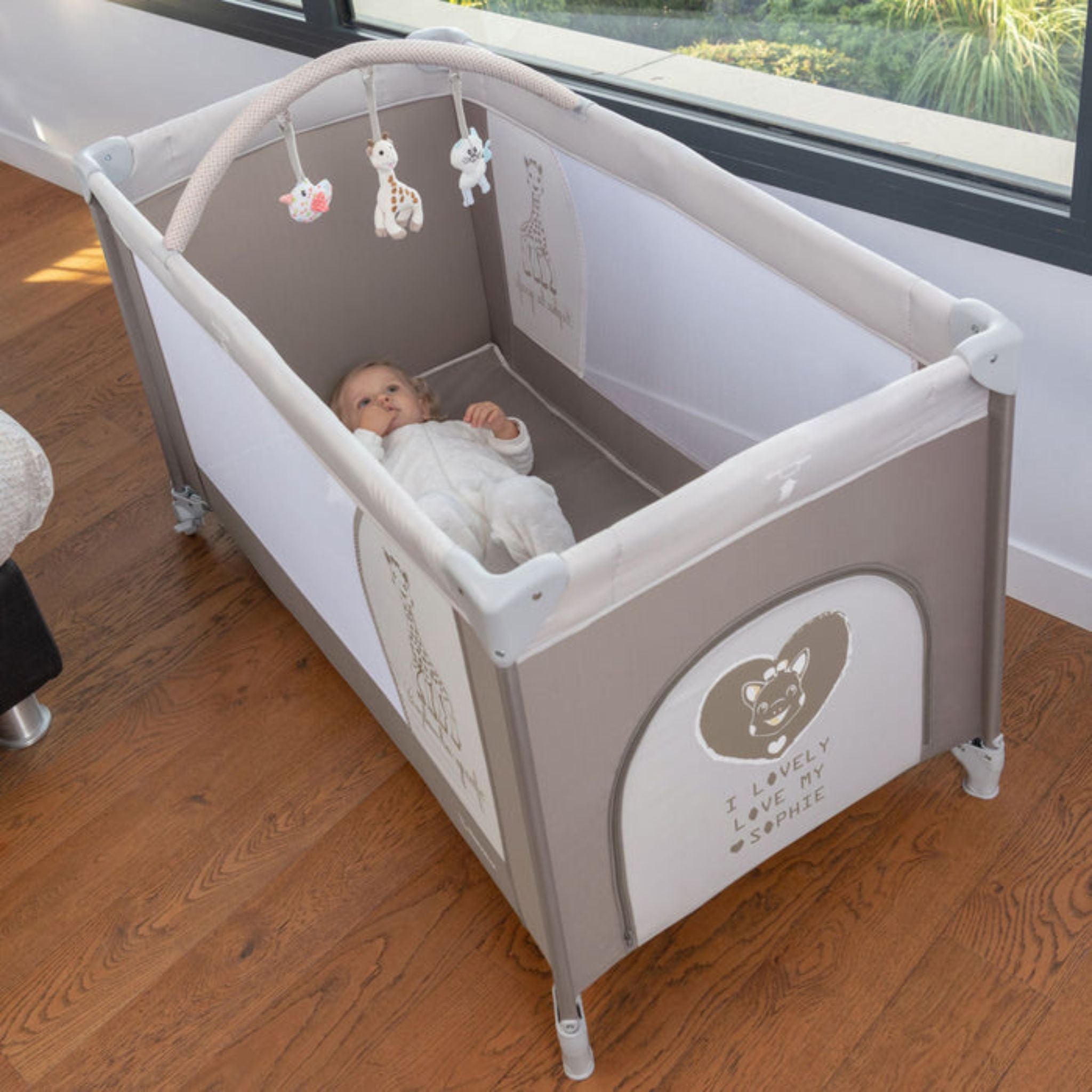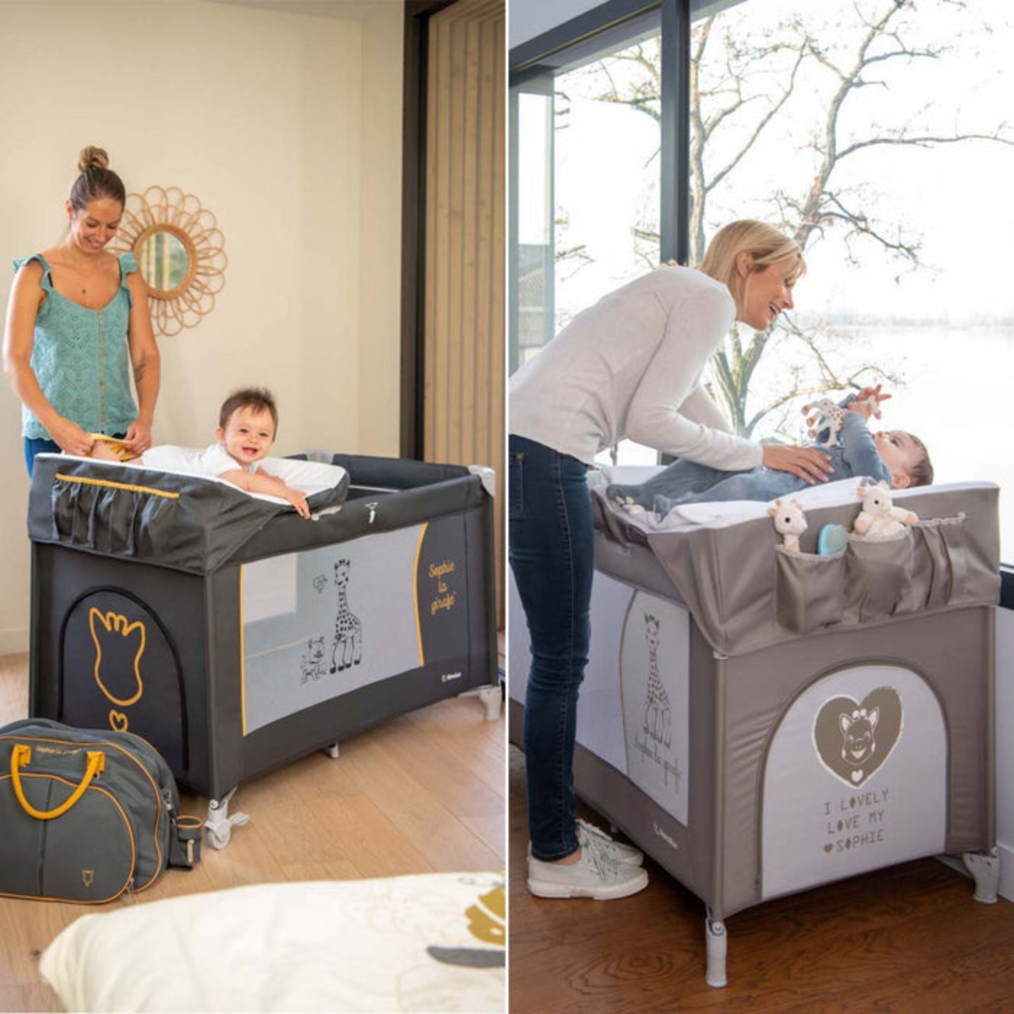 Doğumdan itibaren kullanılabilen bu çok amaçlı park yatak, seyahatte ve evde güvenli uyku ile eğlenceli oyun alanını bir araya getirir. Sophie la Girafe lisanslı tasarımı, pratik alt değiştirme ünitesi, fermuarlı oyun kapısı ve iki kademeli uyku seviyesi ile bebeklerin konforunu, ebeveynlerin günlük rutinini kolaylaştırır. Hızlı katlanabilen kompakt yapısı, taşıma çantası ve kitlenebilir tekerlekleri sayesinde hareket halindeki aileler için idealdir. 60 x 120 cm iç yatakla uyumlu ölçüler, geniş ağ panellerle hava sirkülasyonu ve kaliteli malzemelerle uzun ömürlü, güvenli bir kullanım sunar.