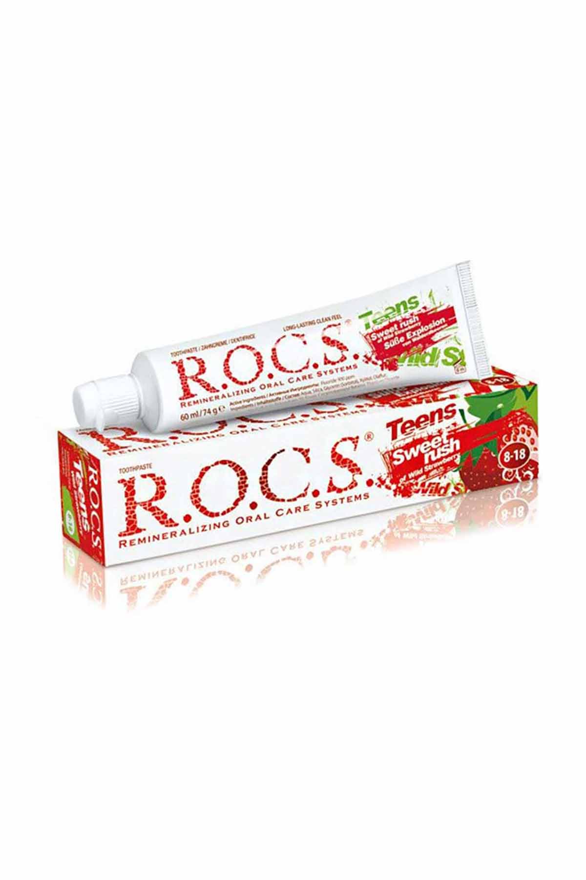 Rocs Teens 8-18 Çilekli Diş Macunu, okul çağındaki çocuklar (8-18 yaş) için özel olarak geliştirilmiştir. İçeriğindeki AMIFLUOR® kompleksi, aminoflorid ve ksilitol kombinasyonu sayesinde, diş minesi üzerinde hızla (20 saniye içinde) koruyucu bir tabaka oluşturarak dişleri çürüklerden korur. Ayrıca, ağız içinde çürüklere yol açan bakterilerin engellenmesine yardımcı olur. Düşük aşındırıcı içeriği ile dişlere zarar vermeden temizlik sağlar. Yaşa göre düzenlenmiş florid konsantrasyonu içerir (900 ppm). Sodium lauryl sulfate içermez, bu da ürünü hassas dişler için uygun hale getirir. 20 saniyelik diş fırçalama süresinde bile etkili olur, dişleri uzun süreli olarak korur. İsviçre WDS Laboratuarları tarafından geliştirilmiştir.