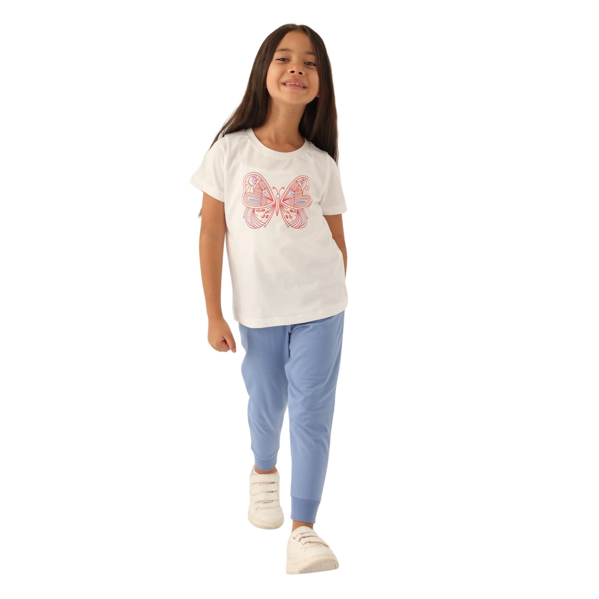 Kelebek Deseni: Canlı renklerle bezenmiş kelebek baskıları, takıma eğlenceli ve zarif bir hava katar.