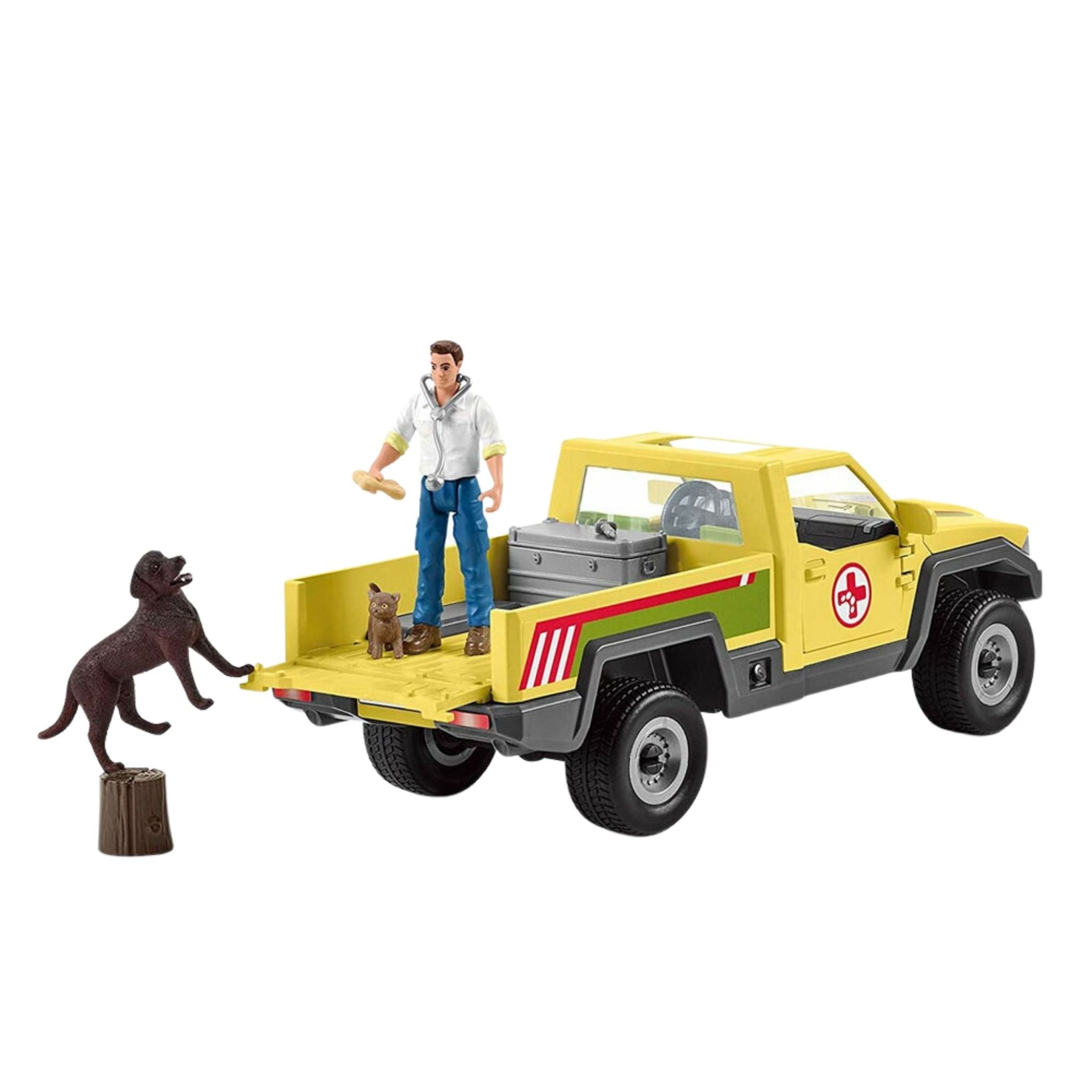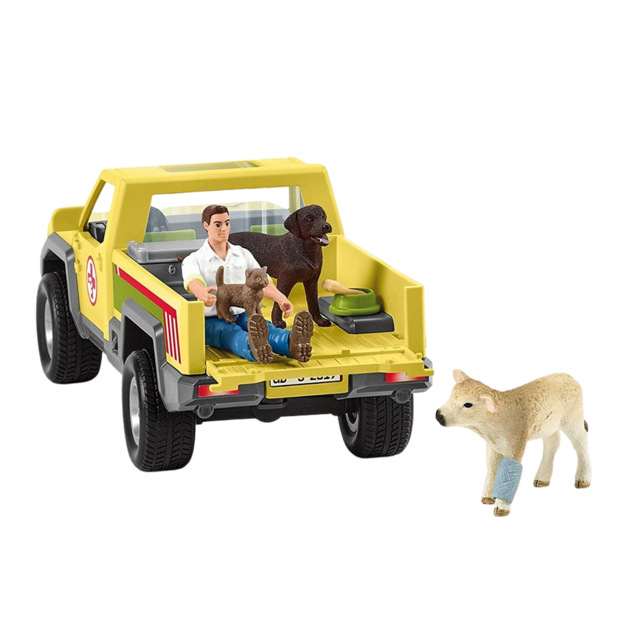 Schleich Çiftlikte Veteriner Ziyareti Oyun Seti, çocukların hem eğlenmesini hem de öğrenmesini sağlayan harika bir set sunuyor. Çiftlikte yaşayan buzağı, yavru kedi ve sevimli Labrador ’un bakımı için veteriner hazır! Veteriner, ilaç çantası, bandaj ve stetoskopu ile birlikte hızlıca yardıma koşuyor. Kamyoneti sayesinde çiftlikte acil müdahale gereken her yere ulaşabiliyor. Bu oyun seti, çocukların hayvan sevgisini geliştirmelerine ve veterinerlik mesleğini oyun yoluyla deneyimlemelerine olanak tanır. Schleich figürleri, el yapımı detaylar ve gerçekçi tasarımlarıyla hayal gücünü harekete geçirir, aynı zamanda güvenli ve dayanıklı malzemeleriyle uzun süreli kullanım sağlar.