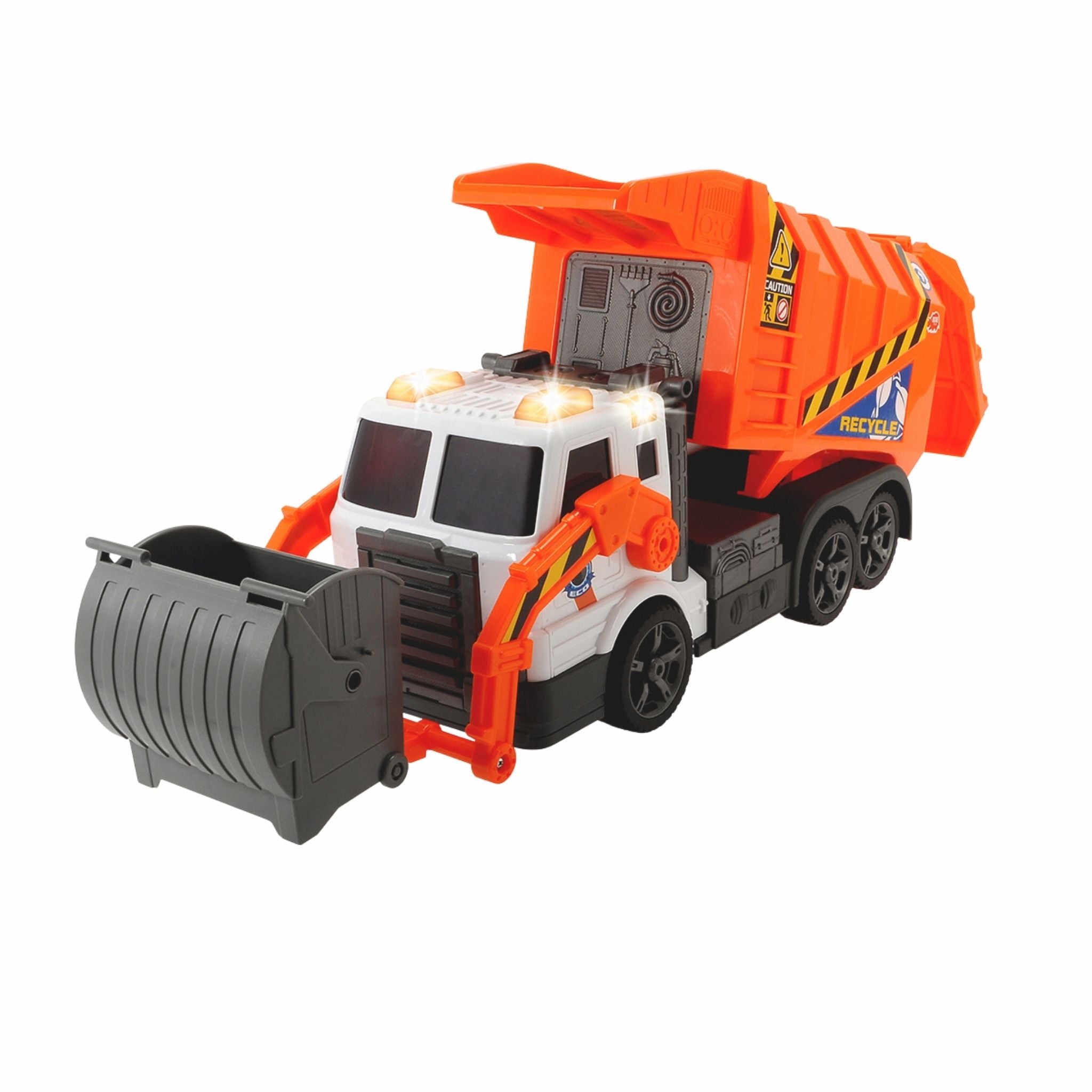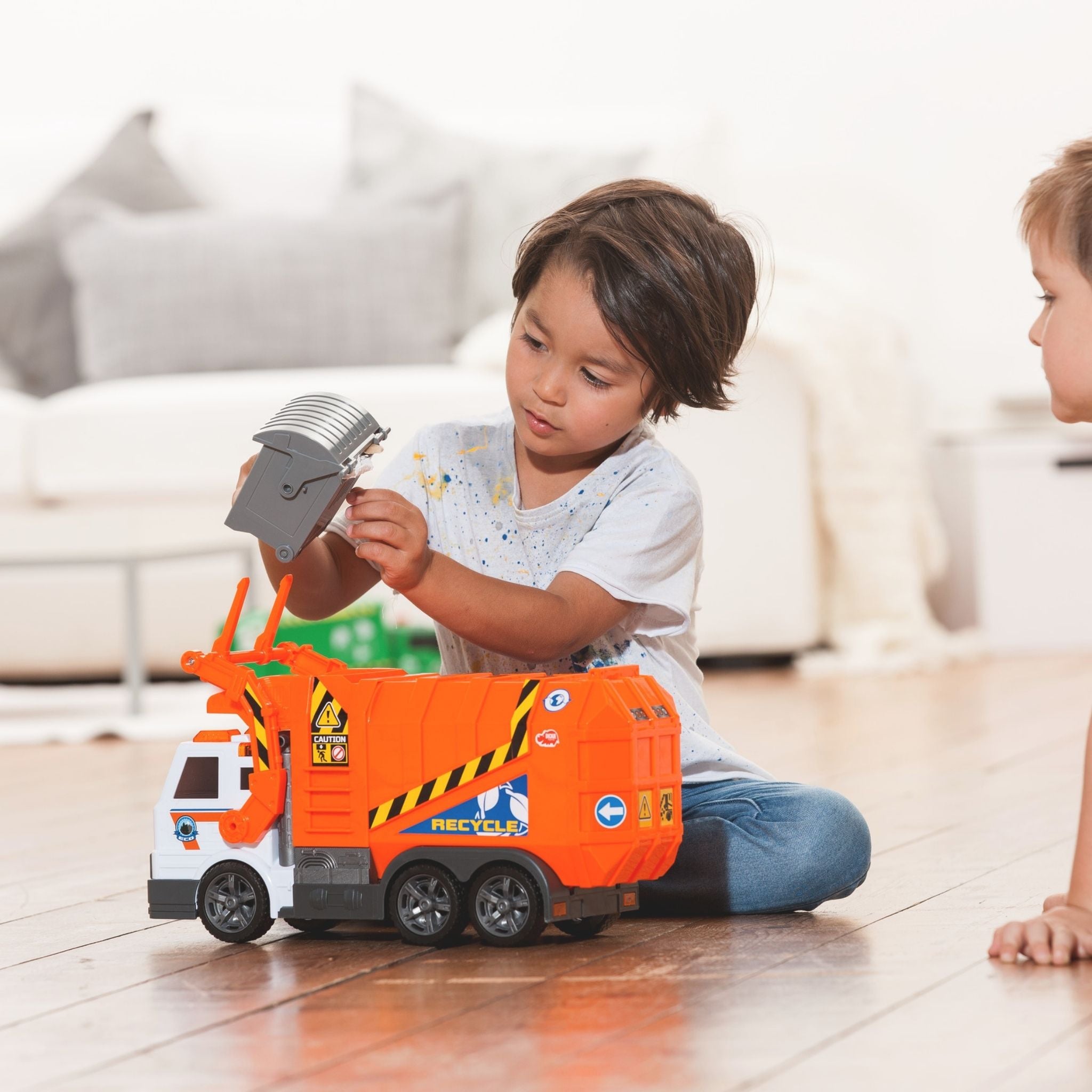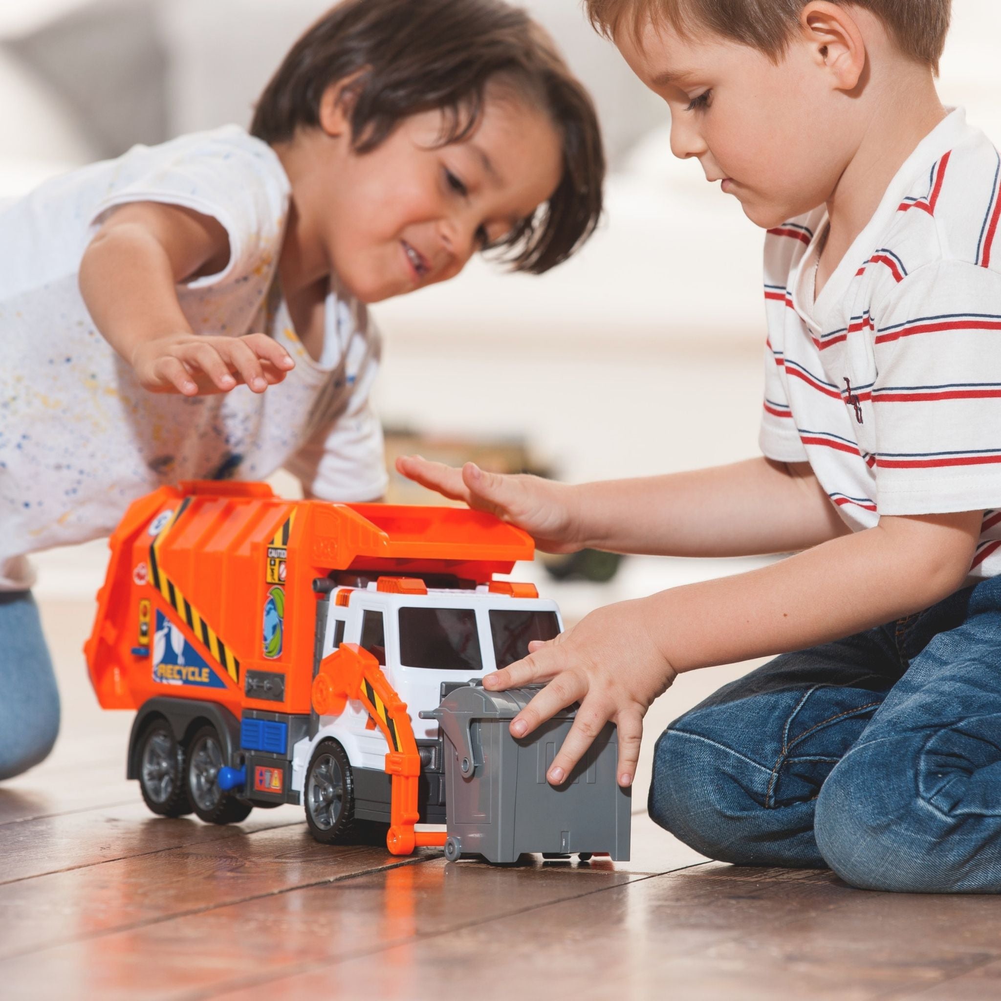 Dickie Işıklı Turuncu Çöp Kamyonu, şehir temalı oyunları seven çocuklar için gerçekçi detaylarla tasarlanmış eğlenceli bir araçtır. 46 cm uzunluğundaki bu büyük boyutlu kamyon, ışık ve ses özellikleriyle oyun deneyimini canlandırırken çocuklara çevre bilincini eğlenceli bir şekilde öğretir. Arka kapağı açılabilen ve konteyner boşaltma kancalarıyla donatılmış tasarımı sayesinde, çocuklar tıpkı gerçek bir çöp kamyonu gibi atıkları toplayabilir ve boşaltma işlemini manuel olarak gerçekleştirebilirler. Dickie Işıklı Turuncu Çöp Kamyonu, çocukların temizlik ve geri dönüşüm bilincini erken yaşta eğlenceli bir şekilde kazanmalarını sağlar. Gerçekçi fonksiyonları ve büyük boyutuyla hem ev içinde hem de dış mekânda uzun süreli oyun keyfi sunar.
