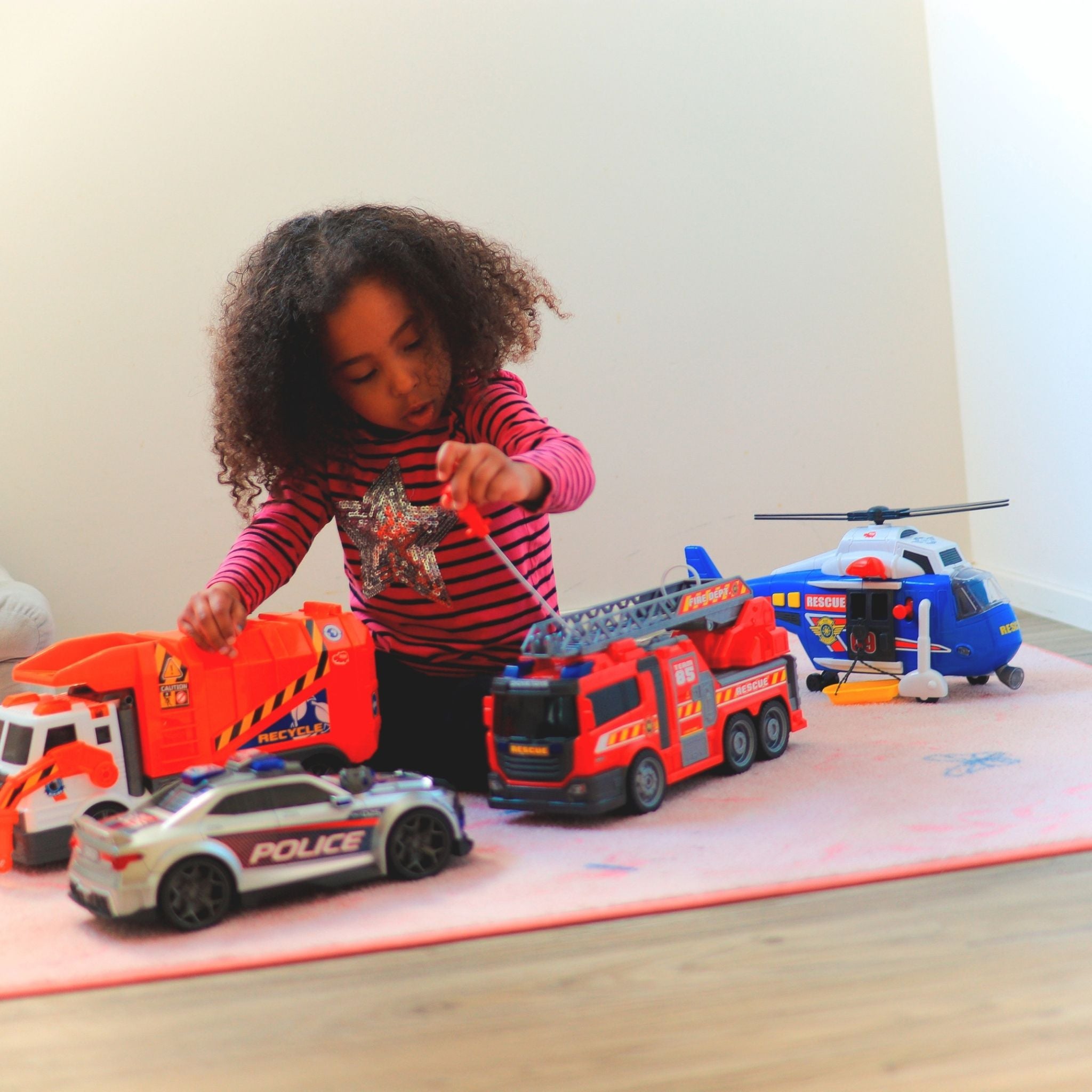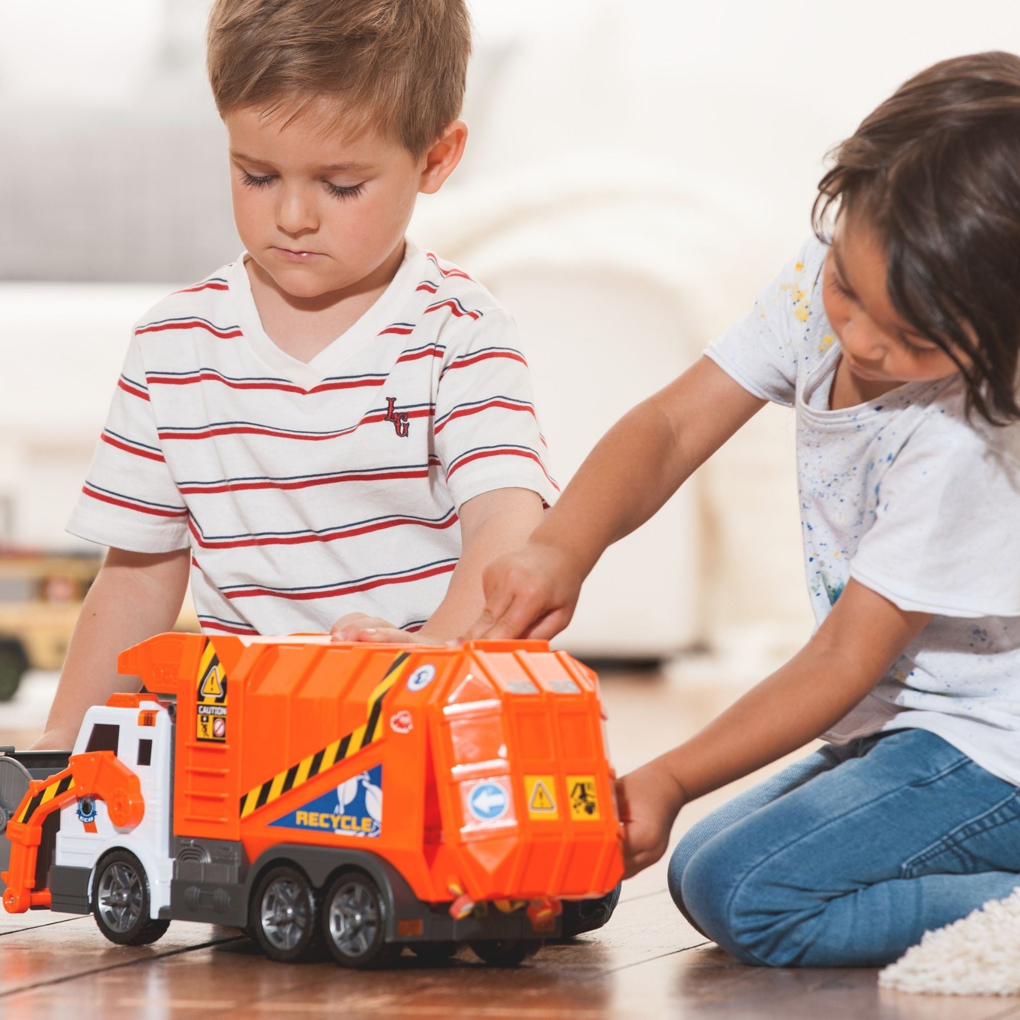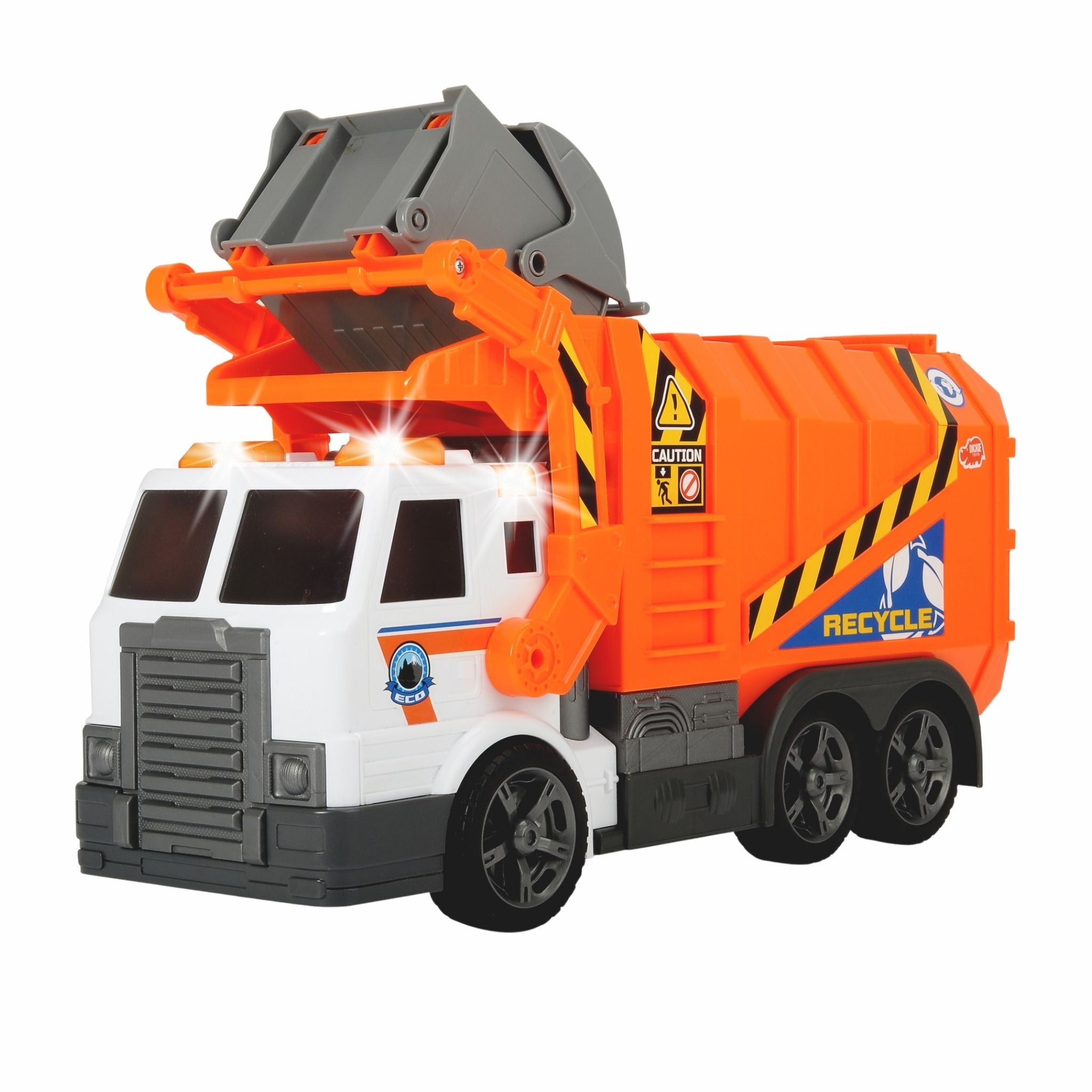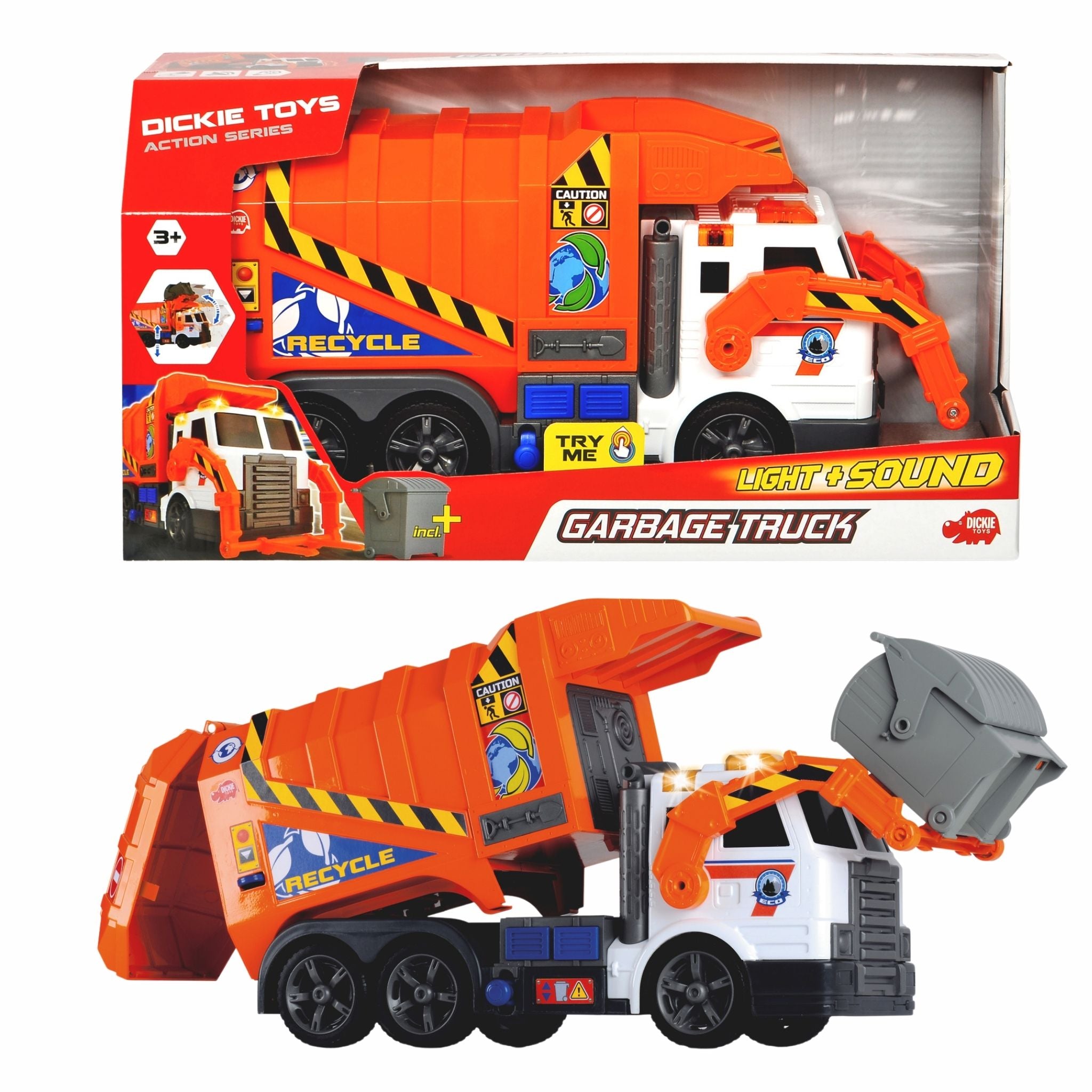 Dickie Işıklı Turuncu Çöp Kamyonu, şehir temalı oyunları seven çocuklar için gerçekçi detaylarla tasarlanmış eğlenceli bir araçtır. 46 cm uzunluğundaki bu büyük boyutlu kamyon, ışık ve ses özellikleriyle oyun deneyimini canlandırırken çocuklara çevre bilincini eğlenceli bir şekilde öğretir. Arka kapağı açılabilen ve konteyner boşaltma kancalarıyla donatılmış tasarımı sayesinde, çocuklar tıpkı gerçek bir çöp kamyonu gibi atıkları toplayabilir ve boşaltma işlemini manuel olarak gerçekleştirebilirler. Dickie Işıklı Turuncu Çöp Kamyonu, çocukların temizlik ve geri dönüşüm bilincini erken yaşta eğlenceli bir şekilde kazanmalarını sağlar. Gerçekçi fonksiyonları ve büyük boyutuyla hem ev içinde hem de dış mekânda uzun süreli oyun keyfi sunar.
