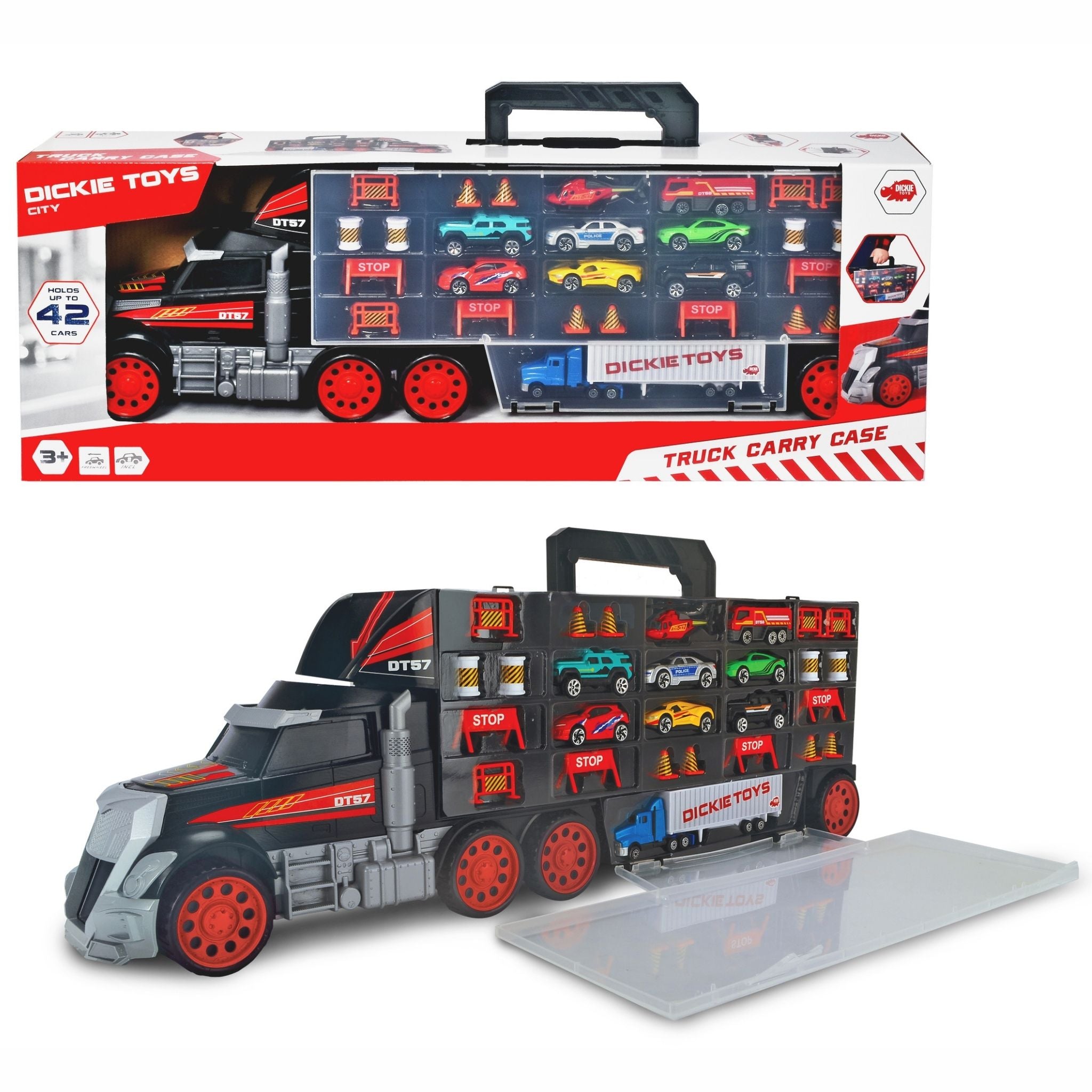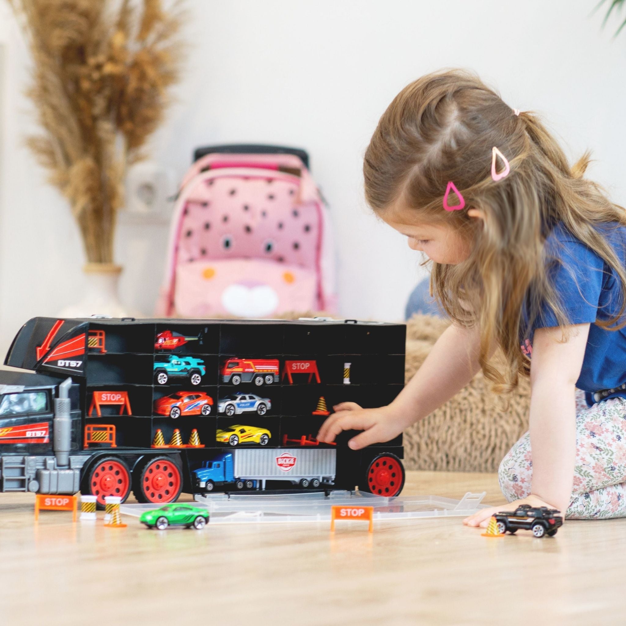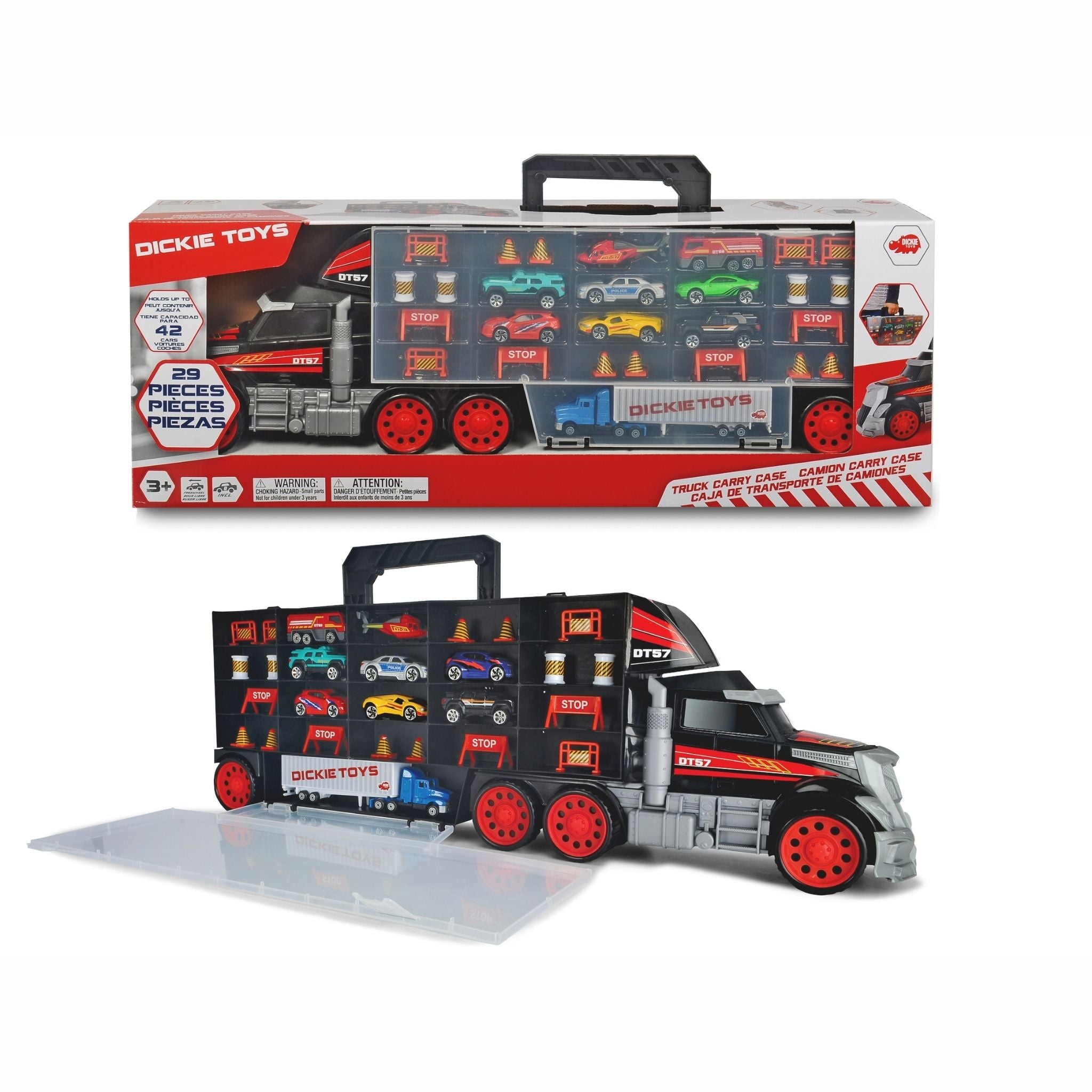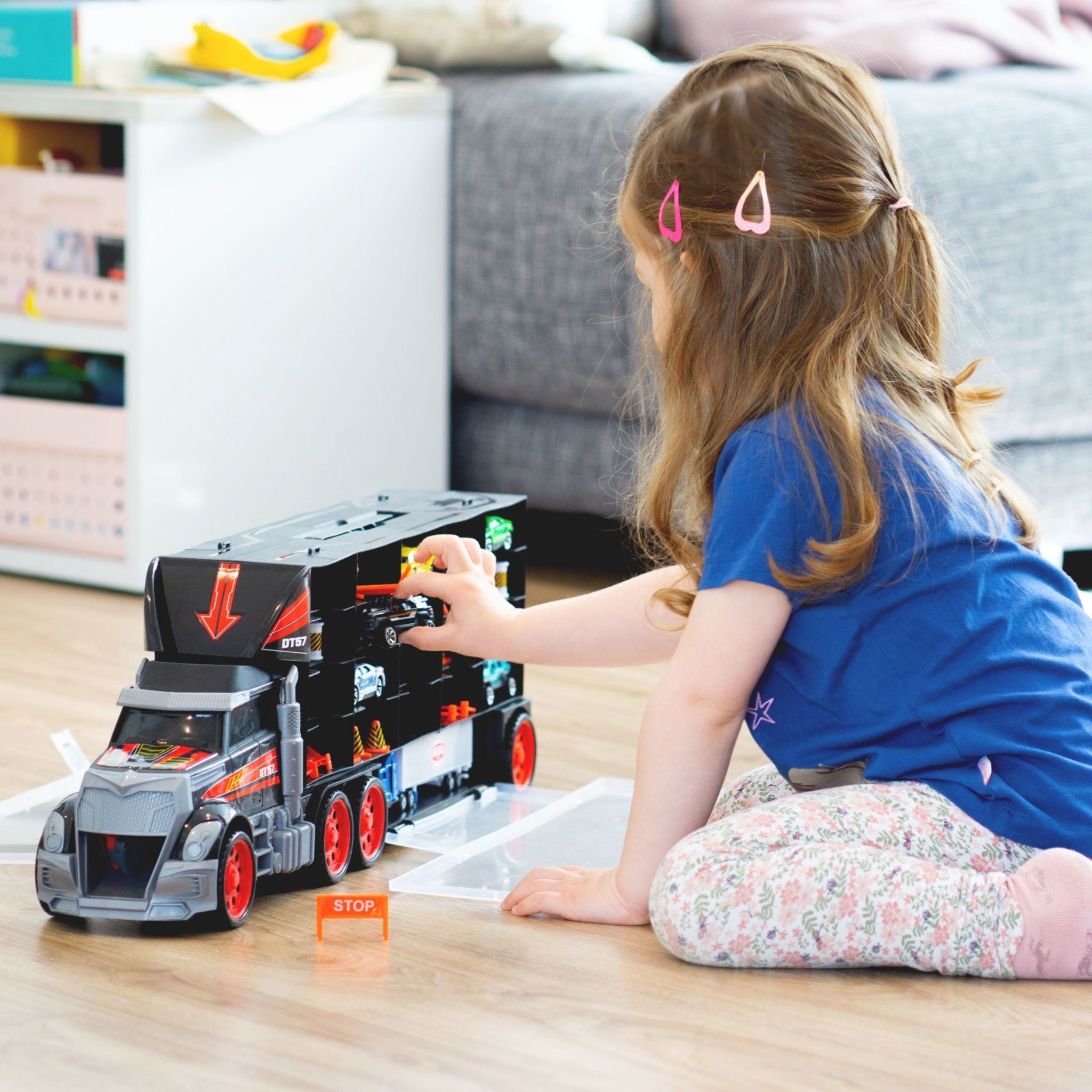 Dickie Tır Şeklinde Araba Taşıma Çantası, küçük araba koleksiyoncuları için tasarlanmış fonksiyonel bir taşıma ve oyun setidir. Hem depolama çantası hem de oyuncak tır olarak kullanılabilen bu özel tasarım, çocuklara düzenli saklama alışkanlığı kazandırırken aynı zamanda heyecan dolu oyun senaryoları sunar. Dayanıklı gövdesi ve geniş iç hacmi sayesinde çocuklar en sevdikleri arabaları kolayca yerleştirip taşıyabilir. Setle birlikte dört adet 7,5 cm premium detaylı araç gelir ve bu araçlar çantanın iç bölmelerine mükemmel şekilde sığar. Tırın geniş taşıma alanı ve çok gözlü yapısı sayesinde çocuklar araçlarını sıralayabilir, düzenleyebilir ve istedikleri her yere yanlarında götürebilir. Dickie, uluslararası kalite standartlarına bağlı, güvenilir ve dayanıklı oyuncaklar sunan bir markadır. Bu araba taşıma çantası da aynı sağlamlık ve güvenlik anlayışıyla üretilmiştir. Çocukların hayal gücünü geliştiren tasarımıyla hem oyun hem koleksiyon amacıyla ideal bir seçenektir.