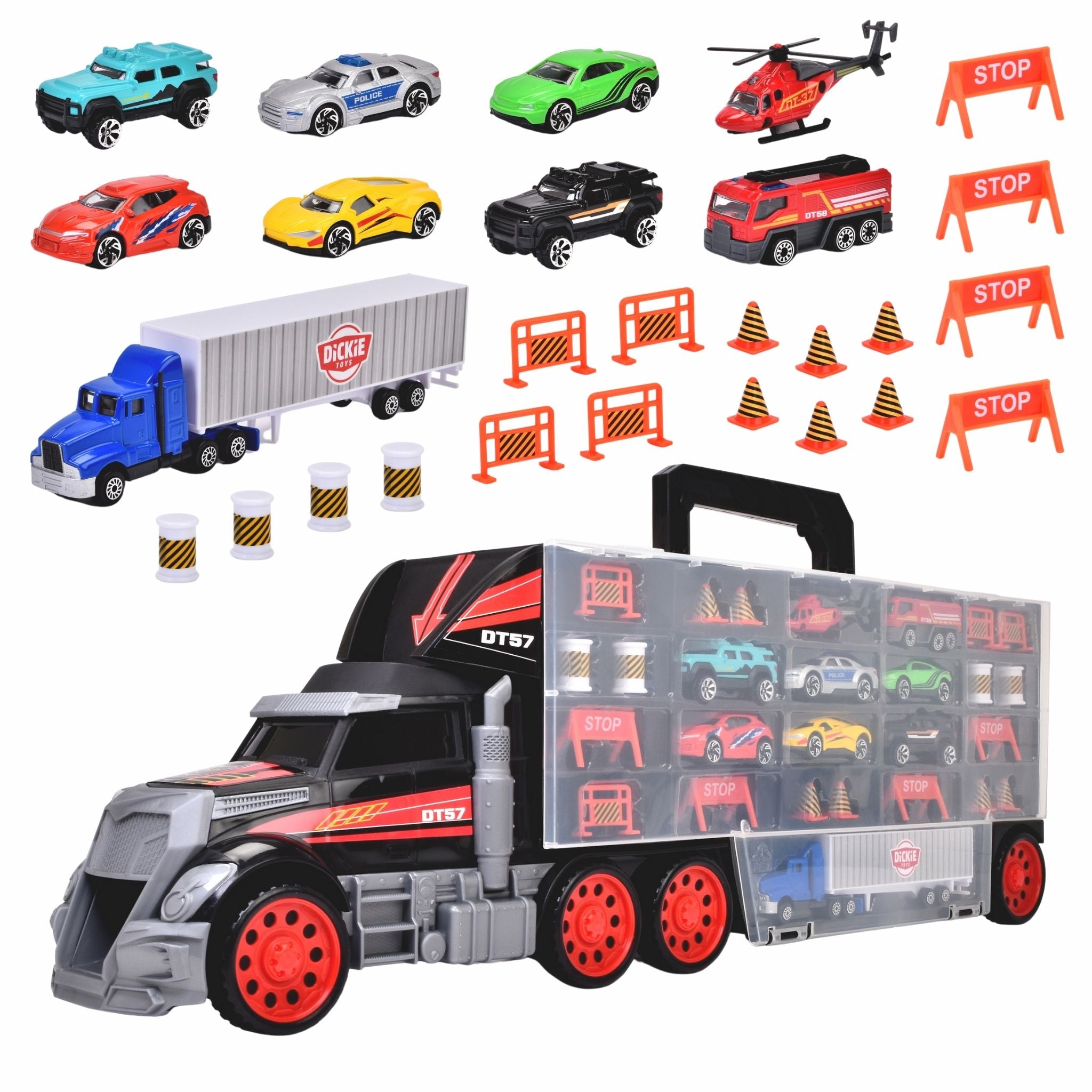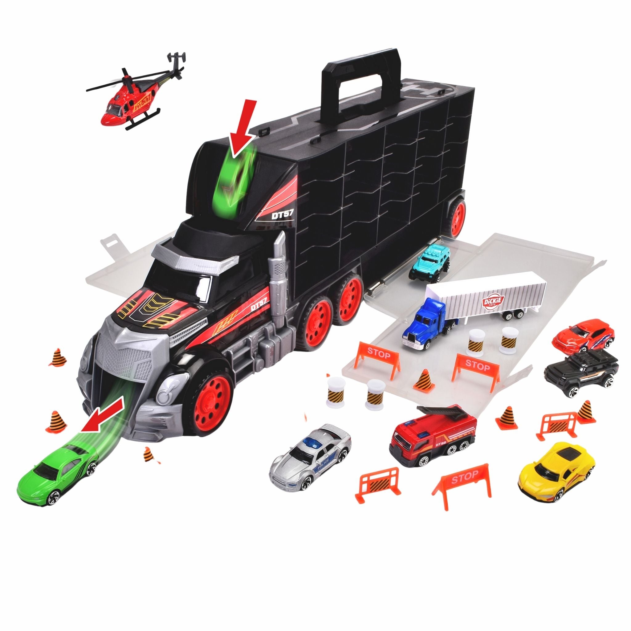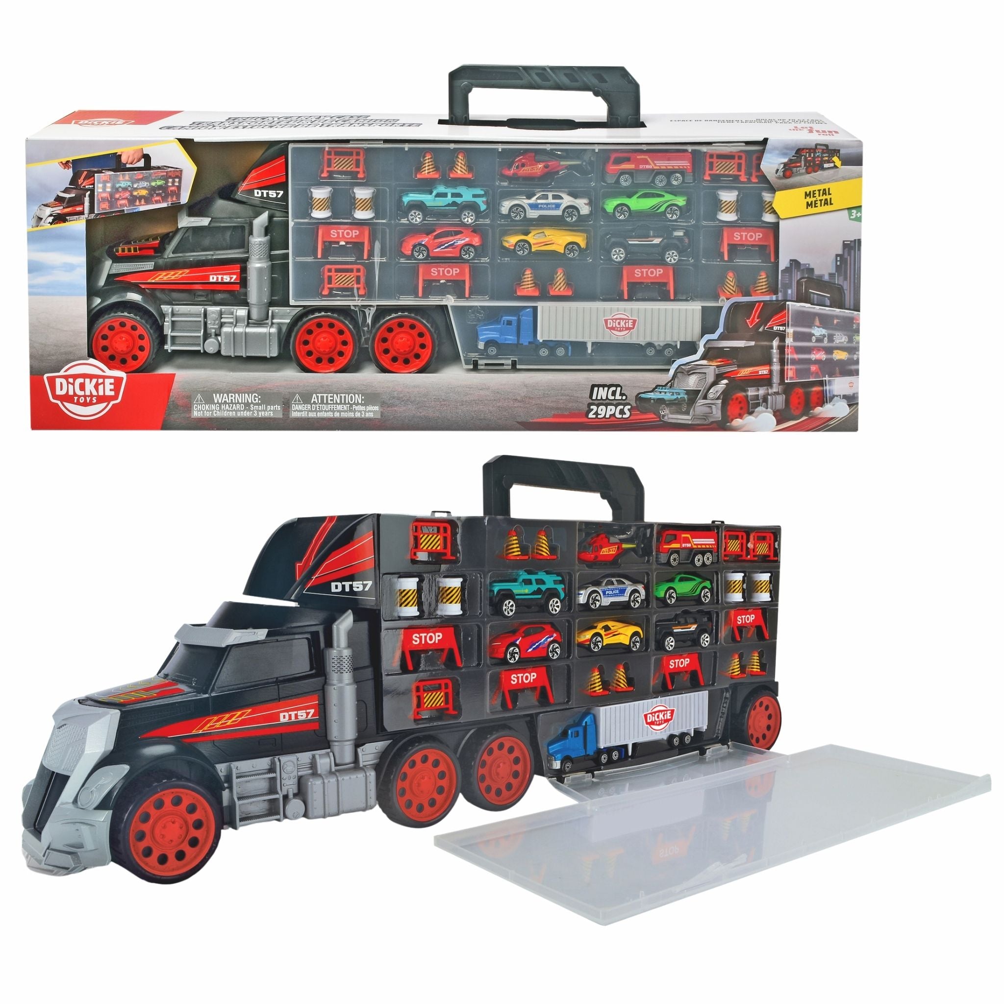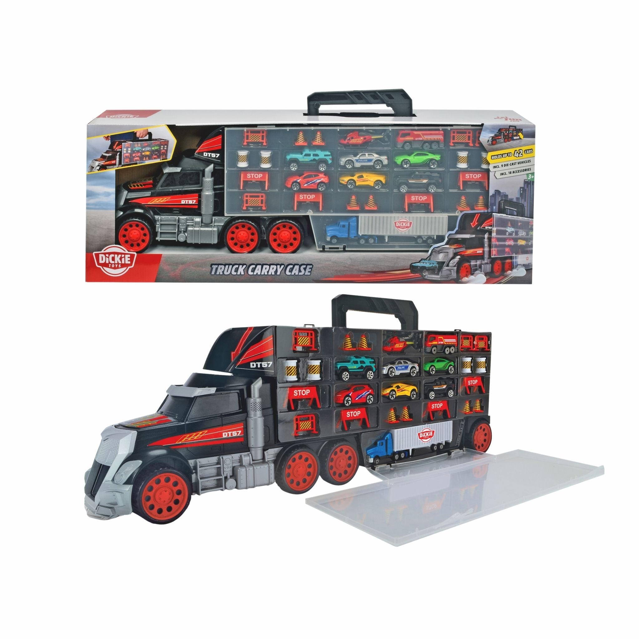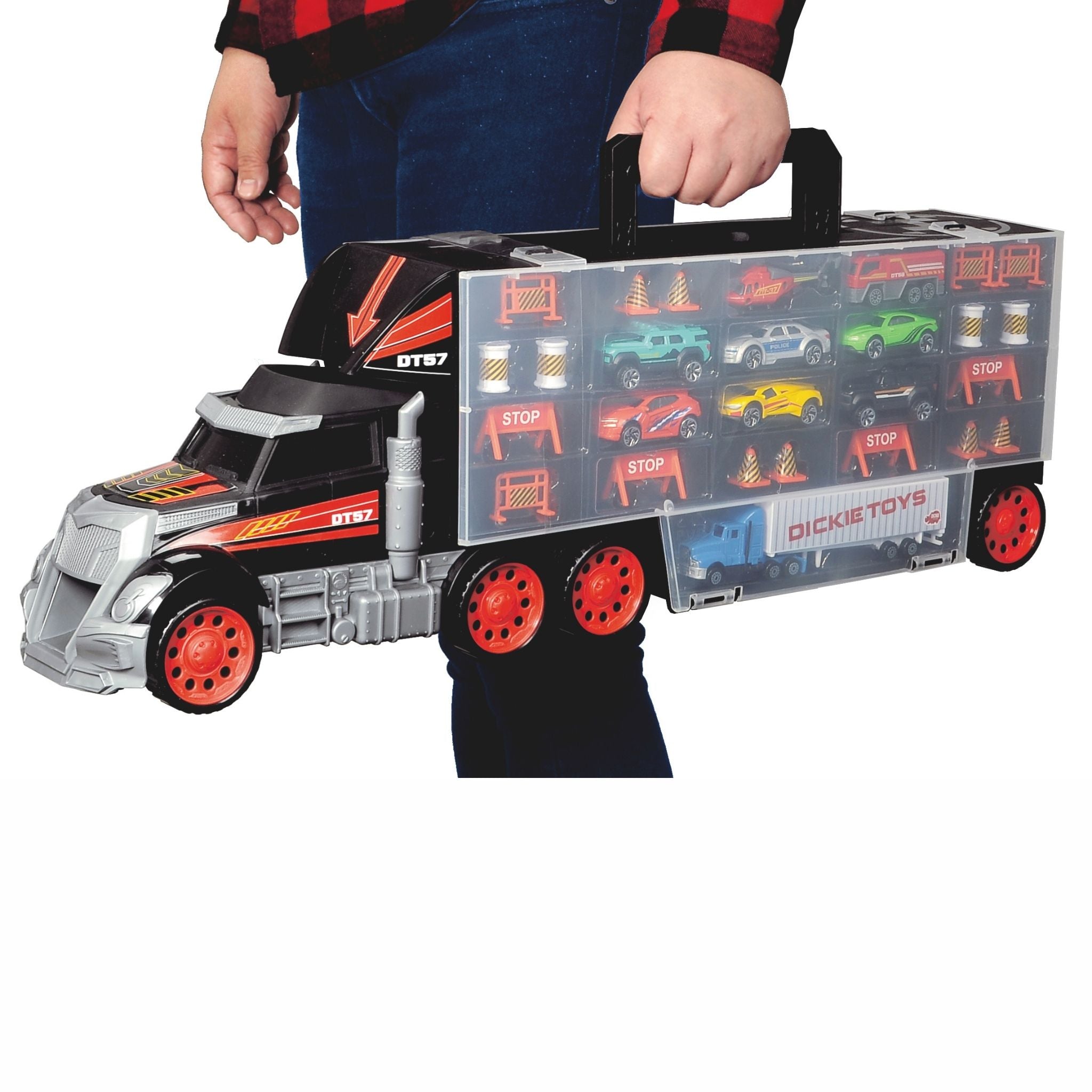 Dickie Tır Şeklinde Araba Taşıma Çantası, küçük araba koleksiyoncuları için tasarlanmış fonksiyonel bir taşıma ve oyun setidir. Hem depolama çantası hem de oyuncak tır olarak kullanılabilen bu özel tasarım, çocuklara düzenli saklama alışkanlığı kazandırırken aynı zamanda heyecan dolu oyun senaryoları sunar. Dayanıklı gövdesi ve geniş iç hacmi sayesinde çocuklar en sevdikleri arabaları kolayca yerleştirip taşıyabilir. Setle birlikte dört adet 7,5 cm premium detaylı araç gelir ve bu araçlar çantanın iç bölmelerine mükemmel şekilde sığar. Tırın geniş taşıma alanı ve çok gözlü yapısı sayesinde çocuklar araçlarını sıralayabilir, düzenleyebilir ve istedikleri her yere yanlarında götürebilir. Dickie, uluslararası kalite standartlarına bağlı, güvenilir ve dayanıklı oyuncaklar sunan bir markadır. Bu araba taşıma çantası da aynı sağlamlık ve güvenlik anlayışıyla üretilmiştir. Çocukların hayal gücünü geliştiren tasarımıyla hem oyun hem koleksiyon amacıyla ideal bir seçenektir.