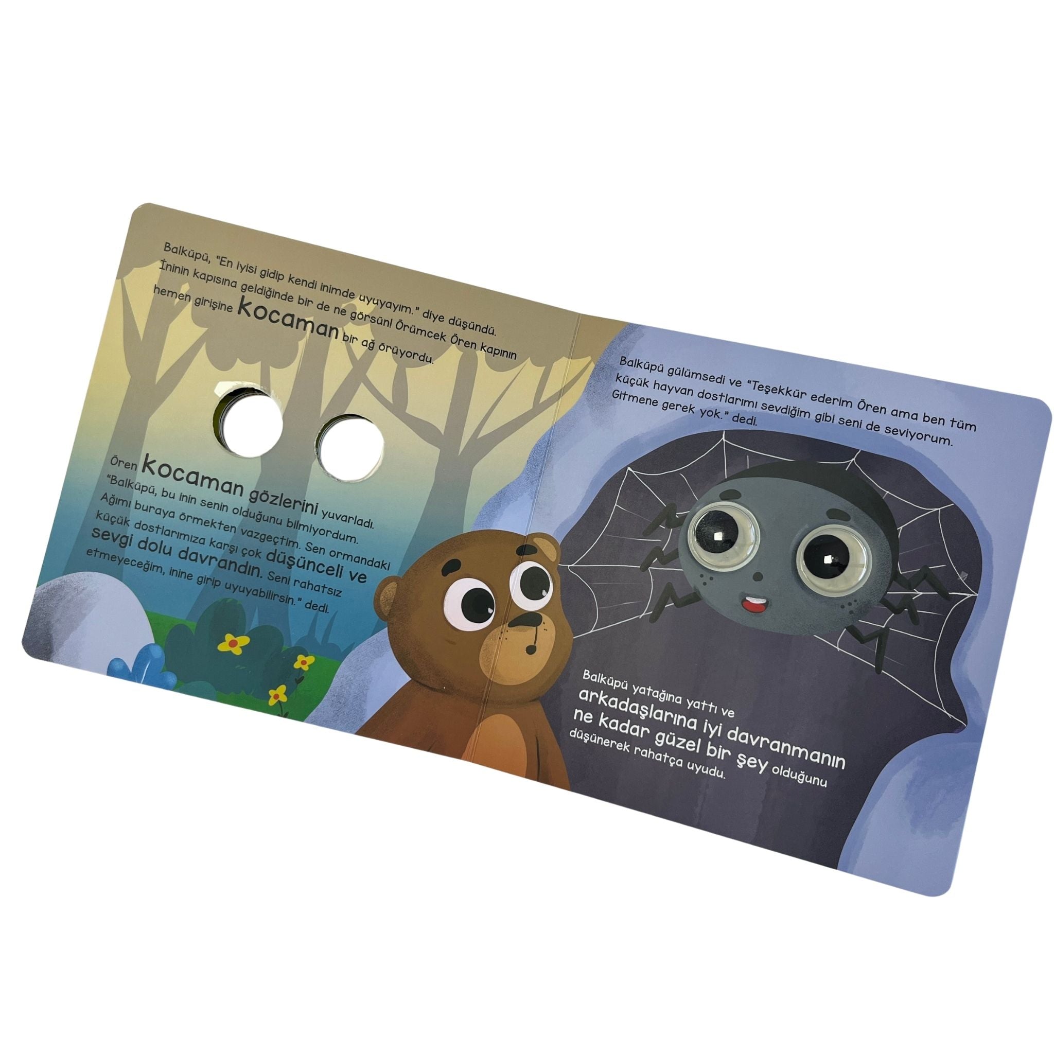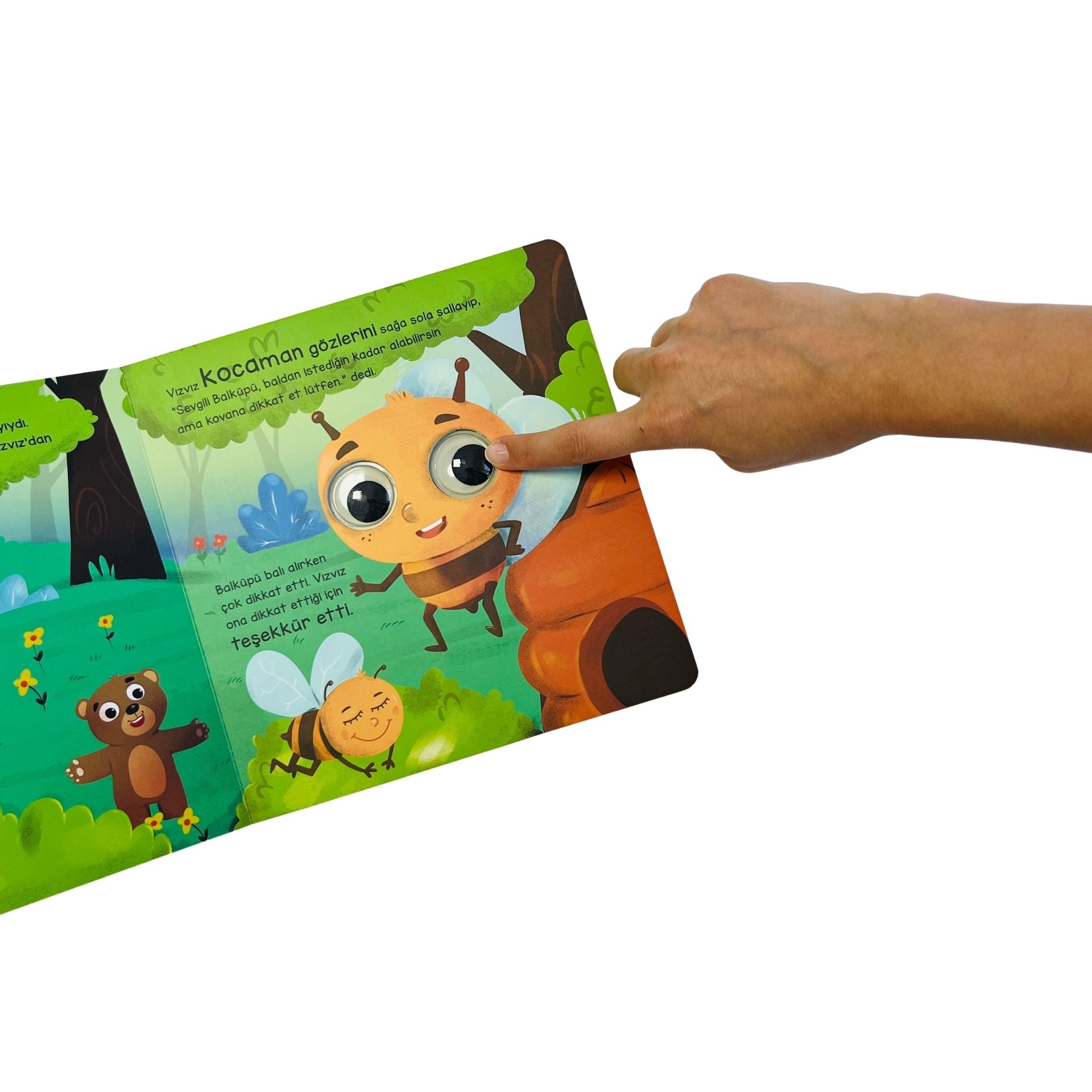 Sincap Kitap Ayı Balküpü ve Sevimli Dostları Bu Kocaman Gözler Kimin? küçük yaş grubundaki çocuklara eğlenceli bir keşif deneyimi sunan, hareketli ve dikkat çekici bir resimli hikâye kitabıdır. Asiye Aslı Aslaner’in sade ve anlaşılır dili ile Erkan Bastem’in renkli çizimleri birleşerek minik okuyucular için hem görsel hem duygusal açıdan keyifli bir okuma ortamı oluşturur. Ormanın içindeki dost canlısı karakterler aracılığıyla çocuklar; tanıma, gözlem yapma, canlılara saygı duyma ve empati kurma gibi temel değerleri doğal bir akış içinde öğrenir. Büyük gözlü karakter tasarımları merak duygusunu güçlendirirken kitabı interaktif bir deneyime dönüştürür. Hikâye, Ayı Balküpü ve dostları Arı Vızvız, Karınca Anten, Uğur Böceği Benek, Kelebek Nazik ve Örümcek Ören’in ormandaki küçük maceralarını konu alır. Her bir sayfada kocaman gözleriyle dikkat çeken karakterler, çocukların görsel algısını geliştirirken eğlenceli bir tanıma süreci oluşturur. Kitap, çocukların çevresindeki canlılara karşı duyarlılık kazanmasını destekleyen yapısıyla erken yaş okuma deneyimi için ideal bir içerik sunar.