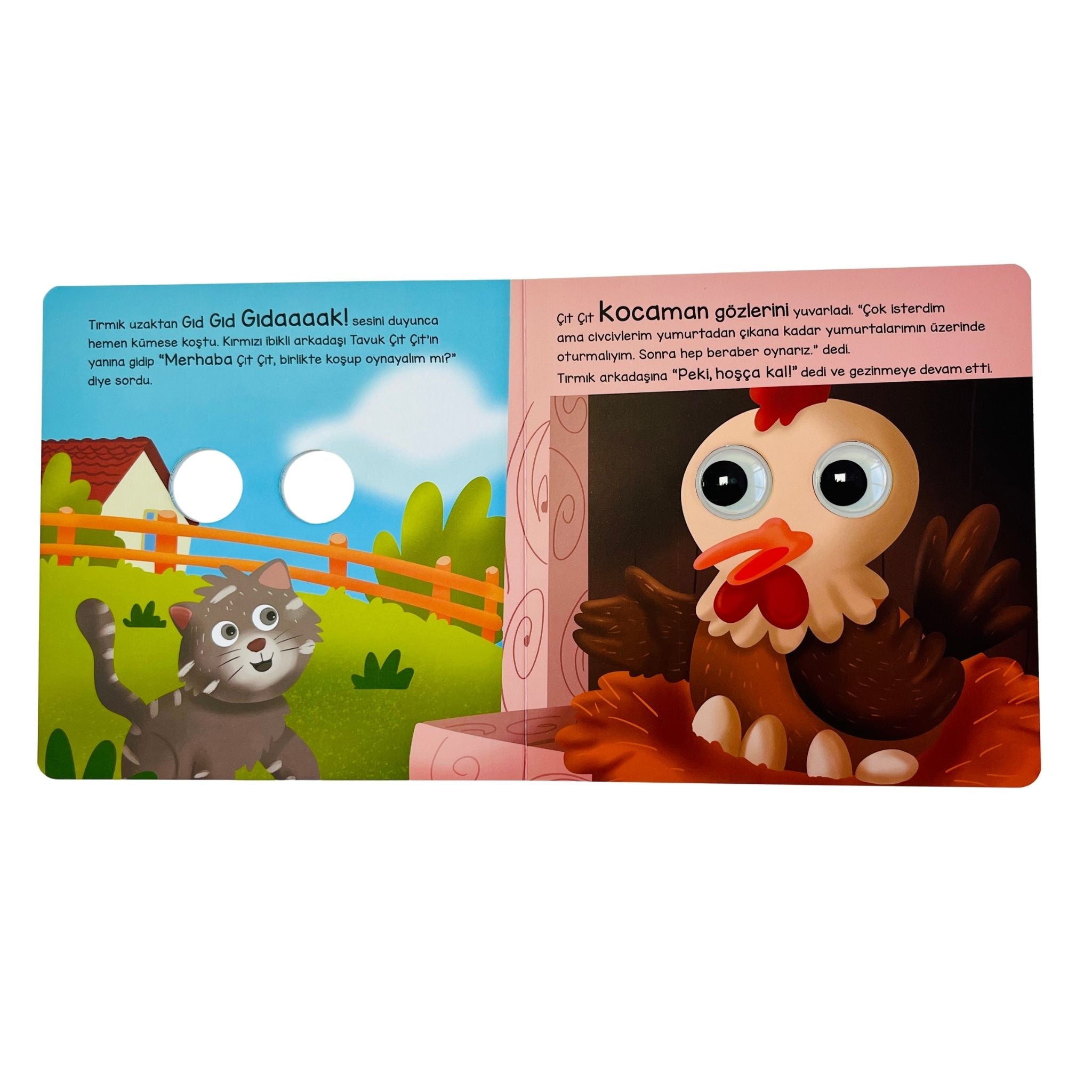 Kedi Tırmık ve Sevimli Dostları, 12-24 ay aralığındaki minik okurlar için özel olarak hazırlanmış, eğlenceli görselleri ve parmak takipli hikâye yapısıyla dikkat çeken bir okul öncesi kitabıdır. Sincap Kitap tarafından yayımlanan bu seri, çiftlik yaşamını çocuklara sıcak ve neşeli bir dille tanıtırken aynı zamanda dostluk, paylaşma ve birlikte keşfetme gibi temel kavramları öğretir. Büyük ve renkli gözlerle tasarlanmış karakterler, çocukların ilgisini anında çekerek kitabı hem eğlenceli hem de öğrenmeyi destekleyen bir deneyime dönüştürür. Kedi Tırmık, Salyangoz Gezgin, İnek Kibarcık, Köpek Hızlı pati ve At Küheylan gibi sevimli karakterlerin yer aldığı hikâye, çocukların hayal gücünü geliştirirken aynı zamanda ince motor becerilerinin desteklenmesine katkı sağlar. Dayanıklı sıvama kapak, kaliteli Amerikan Bristol kağıt yapısı ve parmak takipli tasarım sayesinde hem uzun ömürlü bir kullanım sunar hem de küçük eller için kolayca uygulanabilir bir yapı sağlar. Okul öncesi dönem çocuklarının severek keşfedeceği bu kitap, ebeveynler için de eğitici bir okuma rutini oluşturur.