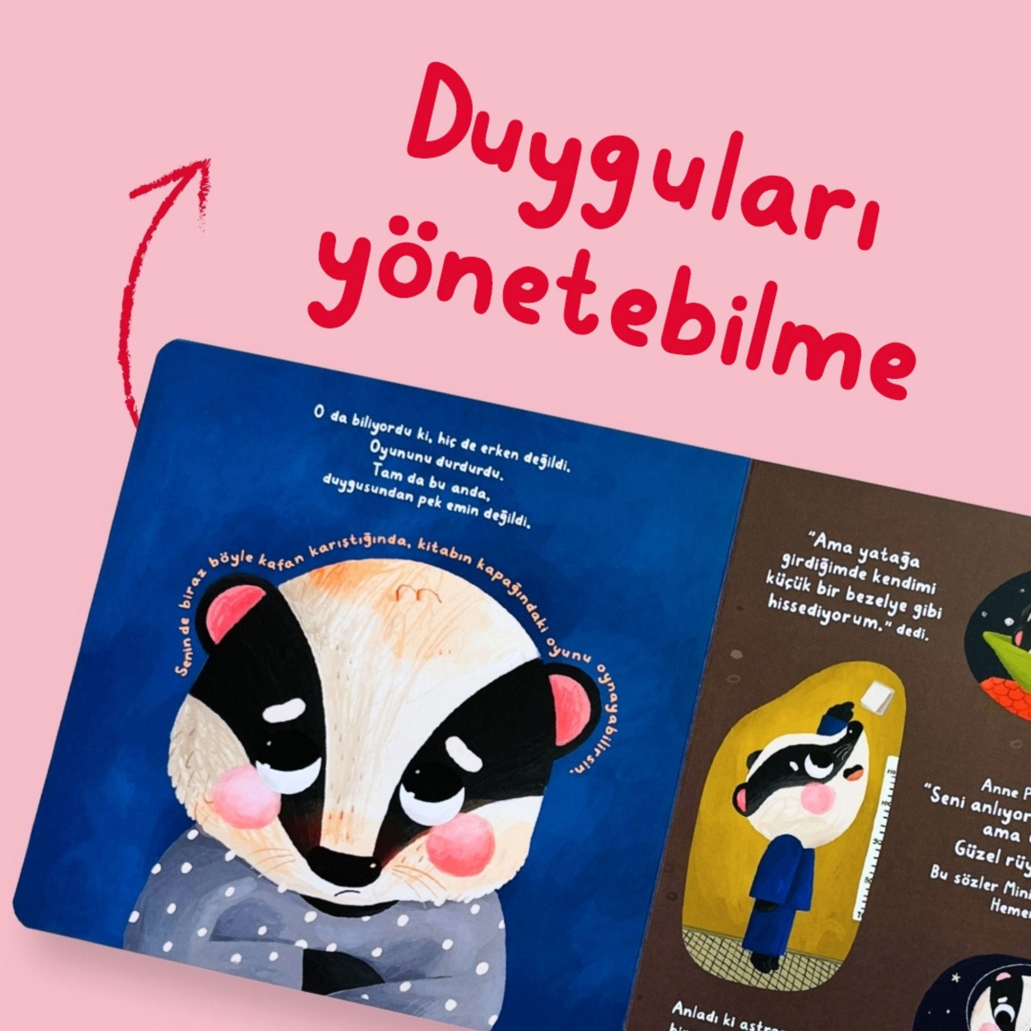 Kendi Başıma Uyku, miniklerin kendi uyku rutinlerini oluşturmalarına destek olan, renkli çizimlerle zenginleştirilmiş bir boncuklu labirent oyunlu hikâye kitabıdır. Sincap Kitap tarafından hazırlanan bu özel seri, 0-4 yaş aralığındaki çocukların günlük alışkanlıklarını bağımsız bir şekilde kazanmasını hedefler. Minik Porsuk’un uykuya hazırlanma sürecini adım adım anlatan hikâye, çocuklara hem eğlenceli hem de güven verici bir uyku rutini sunar. Boncuklu labirent oyunu, kitabın hikâyesini destekleyen bir etkileşim sunarak çocukların dikkatini toplamasına, el göz koordinasyonunu geliştirmesine ve ince motor becerilerini güçlendirmesine katkı sağlar. Yumuşak dille yazılmış metni ve sevimli karakteri ile bu kitap, uyku öncesi hikâye zamanını daha keyifli ve öğretici hale getirir. Sağlam malzeme yapısı ve kaliteli baskısı sayesinde uzun süre kullanılabilir.