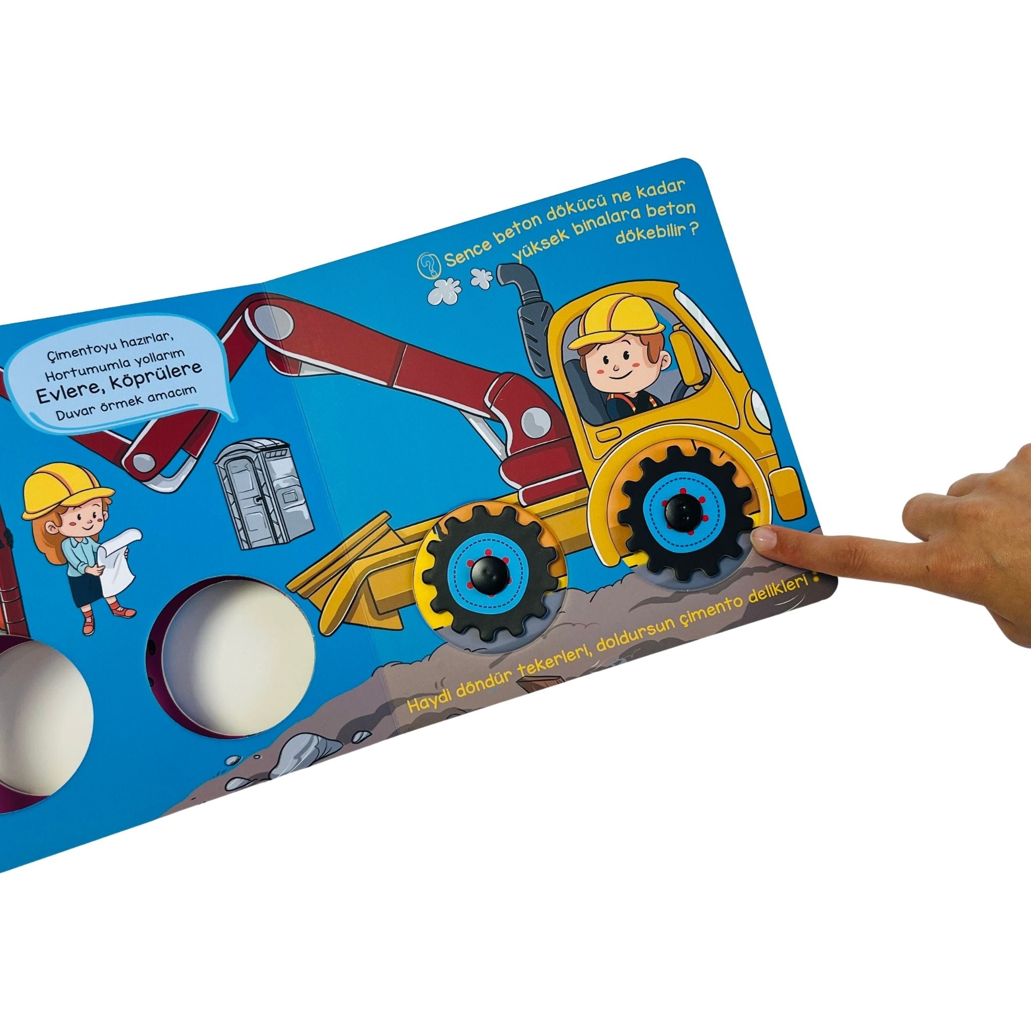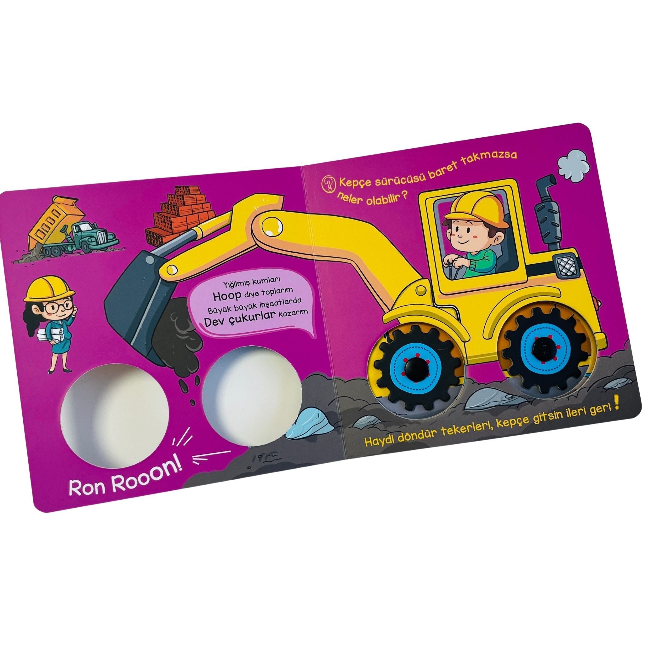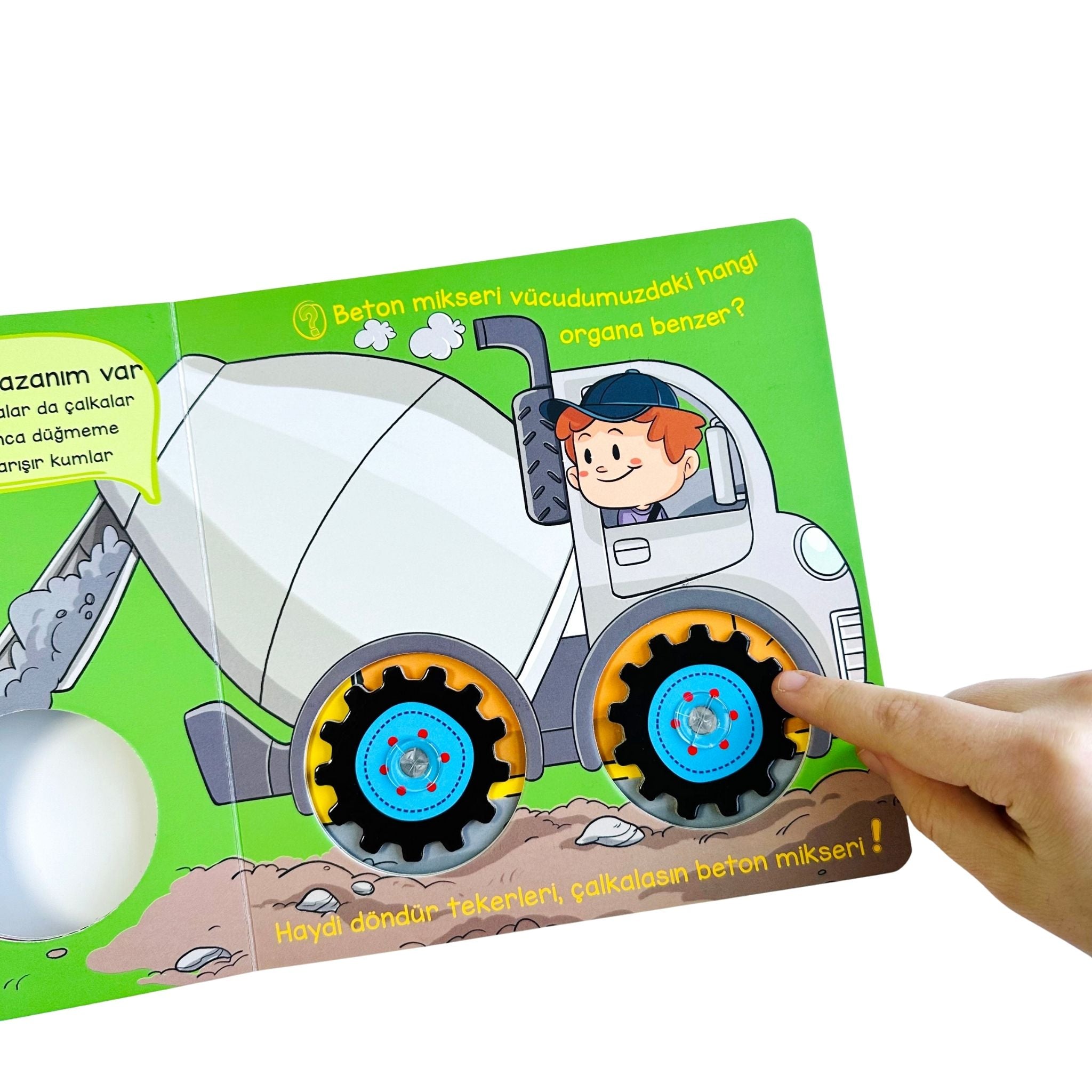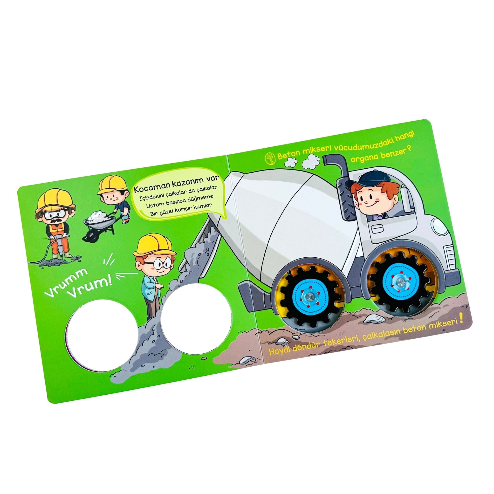 Tekerlekler İş Başında serisinin bu kitabı, miniklerin inşaat araçlarının dünyasına adım atmasını sağlayan eğlenceli ve hareketli bir hikâye sunar. İnşaat alanlarında çalışan güçlü araçların nasıl hareket ettiğini, hangi görevleri yerine getirdiğini ve birlikte nasıl uyum içinde çalıştığını çocuklara sade ve eğlenceli bir dille anlatır. Kamyonlardan kepçelere, beton mikserlerinden çatallı kaldırıcıya kadar pek çok aracı tanıtan bu kitap, çocukların merakını canlı tutar ve onları keşfetmeye teşvik eder. Hareketli tekerlekleri sayesinde çocuklar kitabı sadece okumakla kalmaz, aynı zamanda interaktif şekilde deneyimler. Bu da kitabı hem eğlenceli hem öğretici bir yapıya dönüştürür. Erken yaşta motor becerilerinin gelişmesine, kelime dağarcığının zenginleşmesine ve çevresel farkındalığın desteklenmesine yardımcı olur. Sincap Kitap Atölye tarafından hazırlanan bu seri, okul öncesi dönemde araçlara ilgi duyan tüm minikler için keyifli bir öğrenme yolculuğudur.