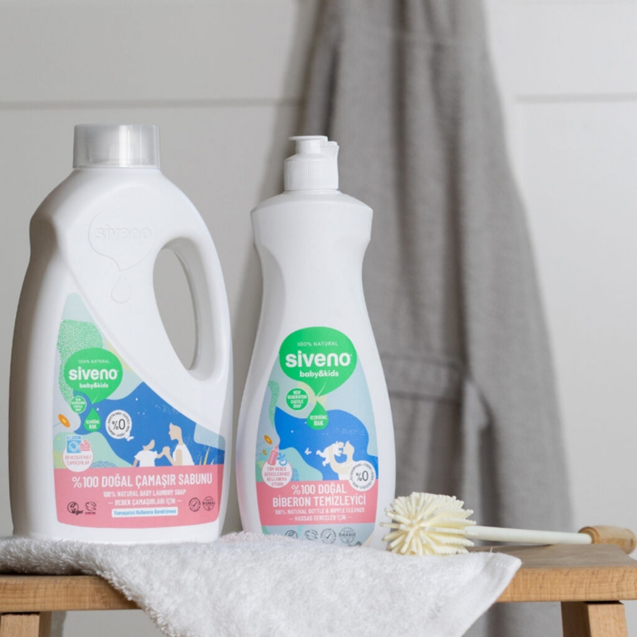 Siveno %100 Doğal Baby Çamaşır Sabunu 1 lt, bebeklerin hassas teni için özel olarak geliştirilen bitkisel içerikli ve sentetik madde içermeyen doğal bir temizlik ürünüdür. Yeni doğan bebeklerden itibaren güvenle kullanılabilir. Doğal formülü sayesinde kumaşlardaki kalıntı bırakmadan temizler, deterjan kalıntılarından kaynaklanabilecek cilt hassasiyetlerini önlemeye yardımcı olur. Sudaki kireci doğal yollarla çözerek çamaşırları yumuşatır, ekstra yumuşatıcı kullanımı gerektirmez. Kimyasal katkı maddesi, sentetik parfüm ya da boya içermez. Dermatolojik olarak test edilmiş, hipoalerjenik yapısı sayesinde hassas ciltlerle tamamen uyumludur. Hayvanlar üzerinde test edilmemiştir ve Cruelty Free sertifikasına sahiptir. %100 geri dönüştürülebilir gıda ambalajı ve doğaya saygılı üretim anlayışı ile çevre dostudur. Doğal yaşamı benimseyen ebeveynler için sağlıklı, etkili ve güvenilir bir temizlik çözümüdür.