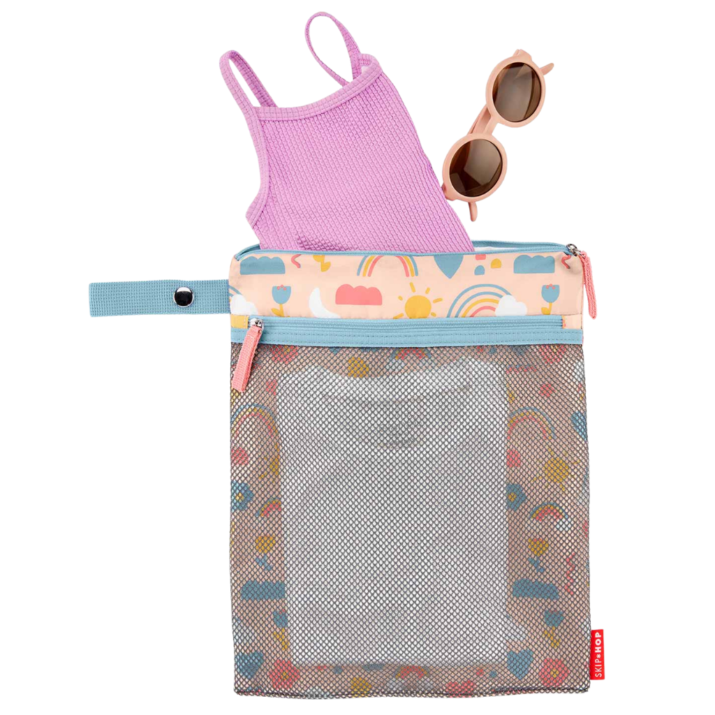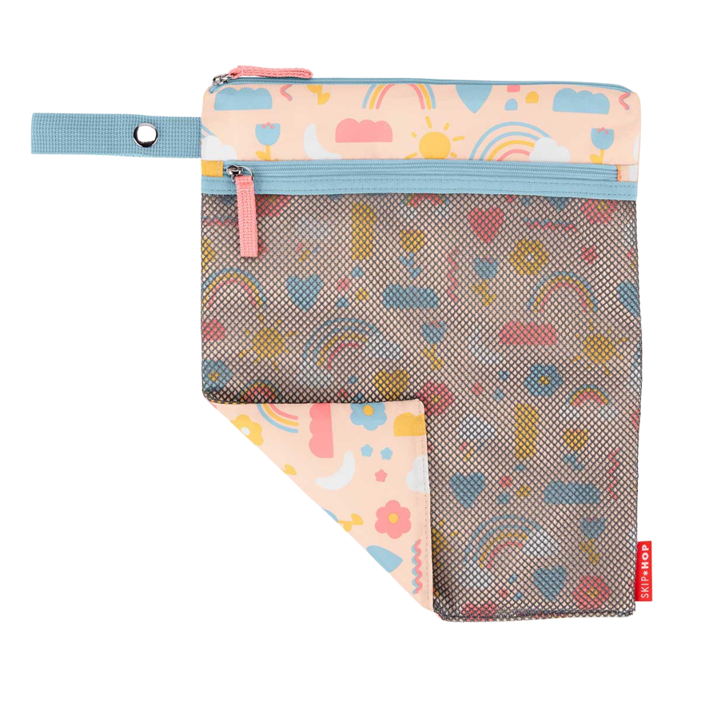 Skip Hop Islak Kuru Çantası Gökkuşağı, bebek bakım sürecinde hijyen ve düzeni bir arada sunan pratik ve fonksiyonel bir çözümdür. Günlük kullanımda ıslak ve kuru eşyaları ayrı bölmelerde saklamaya olanak tanıyan bu çanta, özellikle dışarıda geçirilen zamanlarda ebeveynlerin en büyük yardımcılarından biridir. Su geçirmez iç yapısı sayesinde kirli bezler, ıslak kıyafetler veya nemli ürünler güvenle taşınabilirken, diğer bölmede temiz eşyalar hijyenik şekilde muhafaza edilir. Kompakt ve hafif tasarımıyla çanta, bebek arabasına kolayca takılabilen sağlam kayışı sayesinde kullanım kolaylığı sağlar. Geniş iç hacmi, birden fazla bebek bezini rahatlıkla taşıyabilecek kapasite sunarken, fermuarlı cepler sayesinde eşyalar düzenli şekilde yerleştirilebilir. Renkli gökkuşağı teması ise ürüne hem şık hem de eğlenceli bir görünüm kazandırır. Su geçirmez PEVA astar, sıvı geçişini engelleyerek çantanın içini kuru tutar ve kötü koku oluşumunu minimize eder. Dayanıklı polyester kumaşı sayesinde uzun süreli kullanım sunan bu model, hem seyahatlerde hem de günlük kullanımda ebeveynlerin hayatını kolaylaştırır. Skip Hop Islak Kuru Çantası Gökkuşağı, hem düzenli hem hijyenik bir kullanım sunarak ebeveynlerin günlük hayatını kolaylaştıran vazgeçilmez bir yardımcıdır.