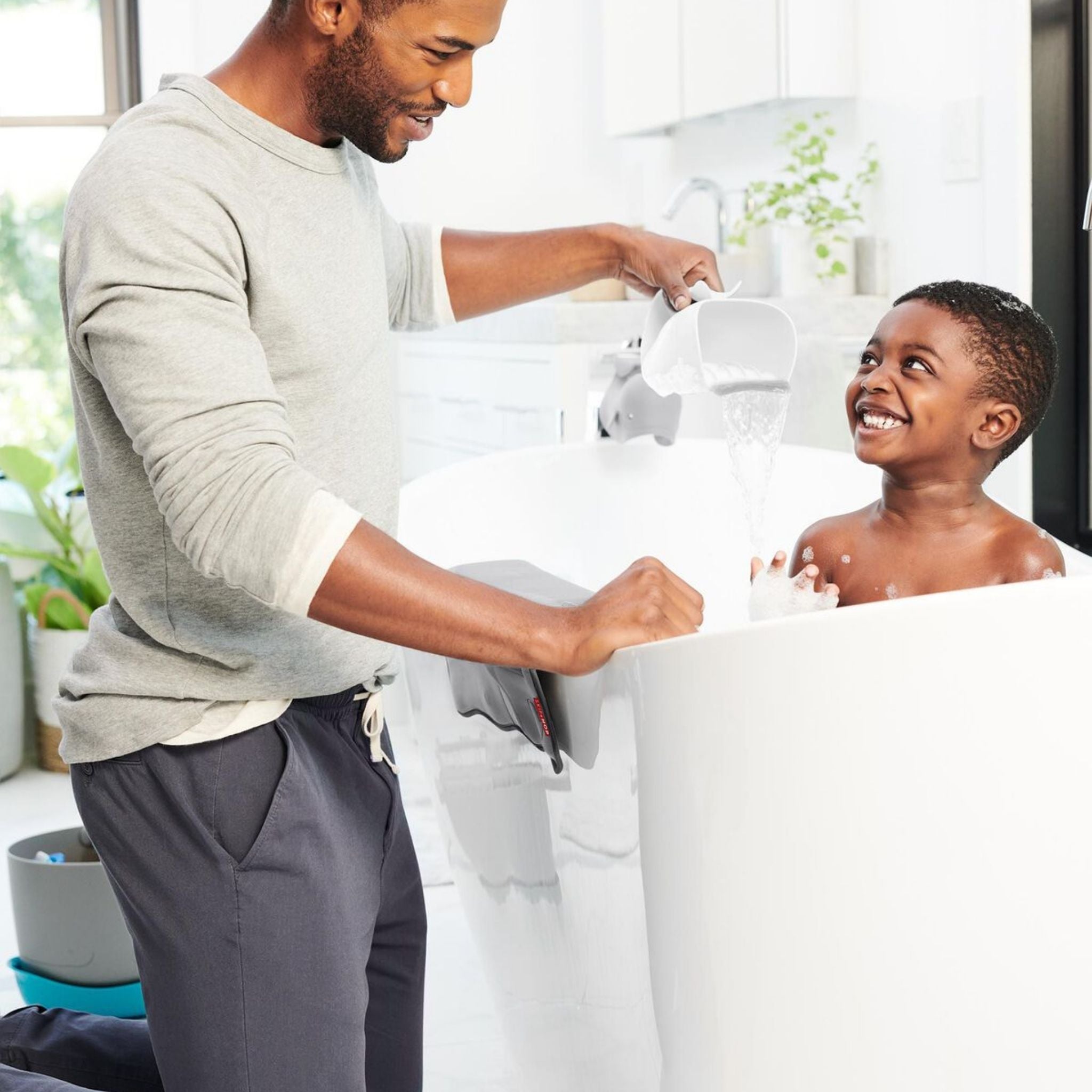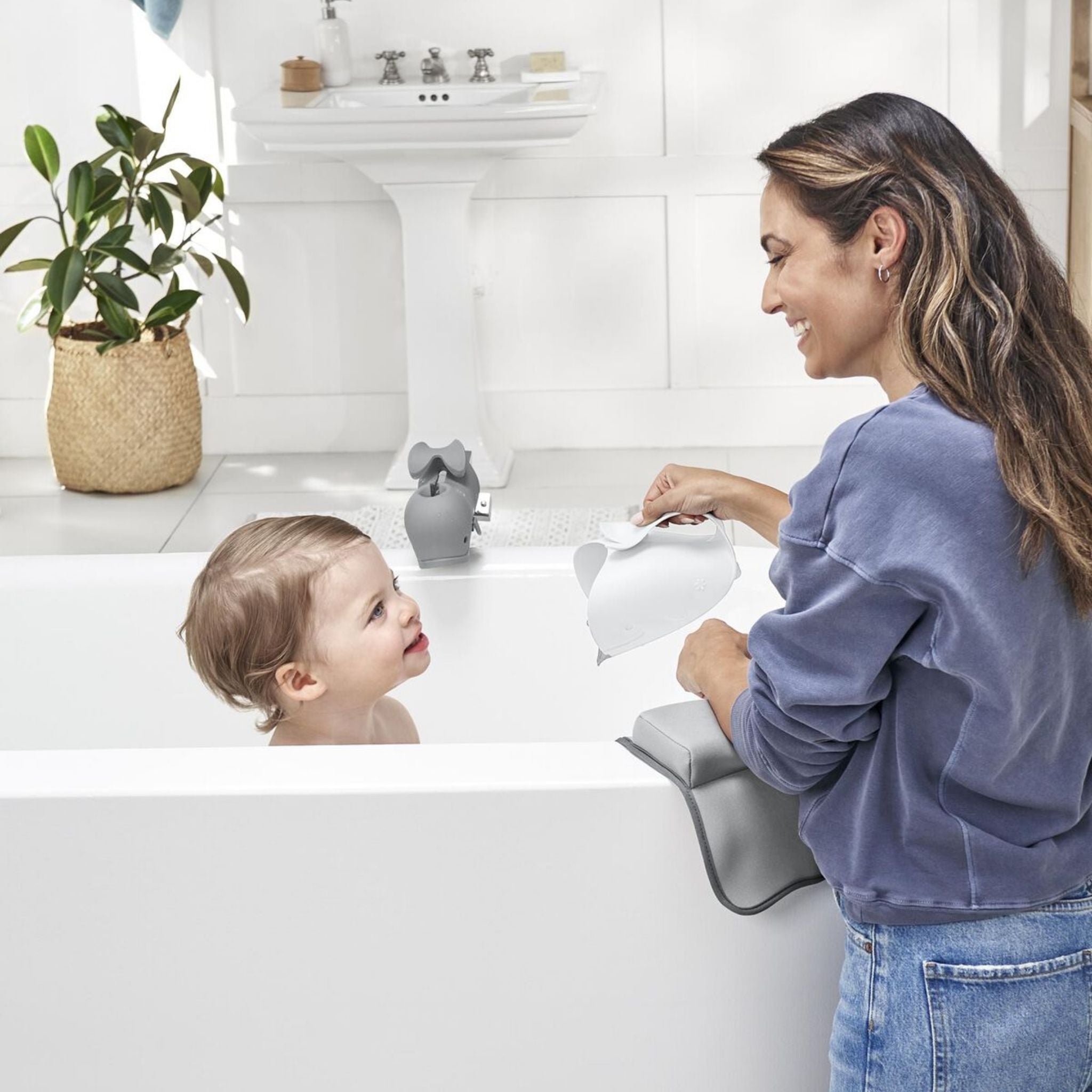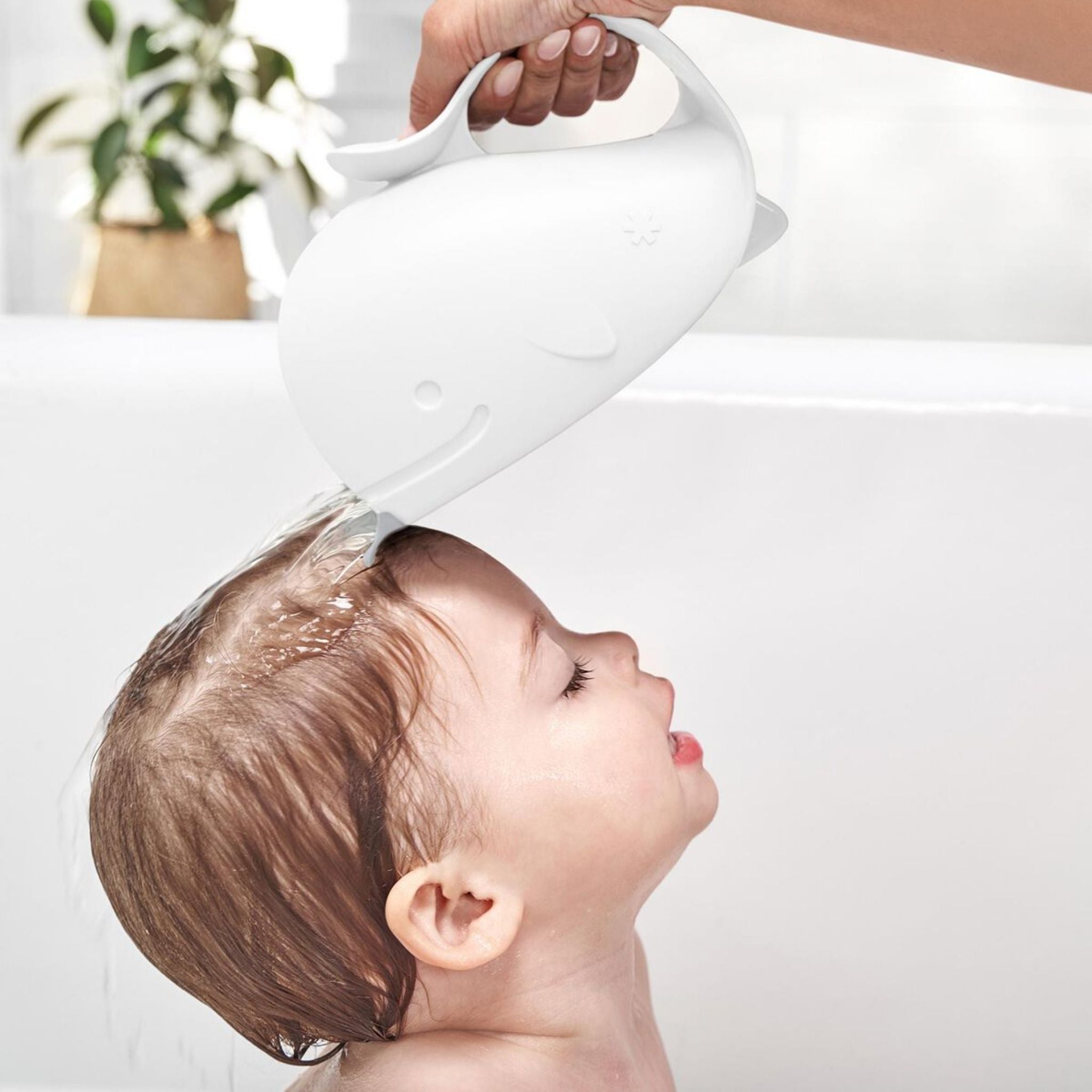 Skip Hop Moby Durulama Kabı Beyaz, bebek banyosunda konfor ve güvenliği bir arada sunan pratik bir durulama çözümüdür. Minimal ve sade renk tasarımıyla banyoda her stile uyum sağlarken, fonksiyonel yapısıyla ebeveynlerin işini büyük ölçüde kolaylaştırır. Kabın iç kısmında yer alan özel yönlendirici çıkıntılar, suyun akışını düzenli bir şekilde dağıtarak durulama sırasında göz ve kulak bölgesine su gelmesini azaltır. Yumuşak dudak bölümü, bebeğin alnına nazikçe temas ederek suyun doğru noktadan akmasını sağlar. Hafif ve ergonomik yapısı, tek elle rahatça kullanım imkanı sunar. Banyo sonrasında dik şekilde bırakılabilir veya sap kısmından asılarak hijyenik biçimde kurutulabilir. Temizlik açısından pratik olan ürün, bulaşık makinesinde yıkanabilir ve uzun süre hijyenini korur.