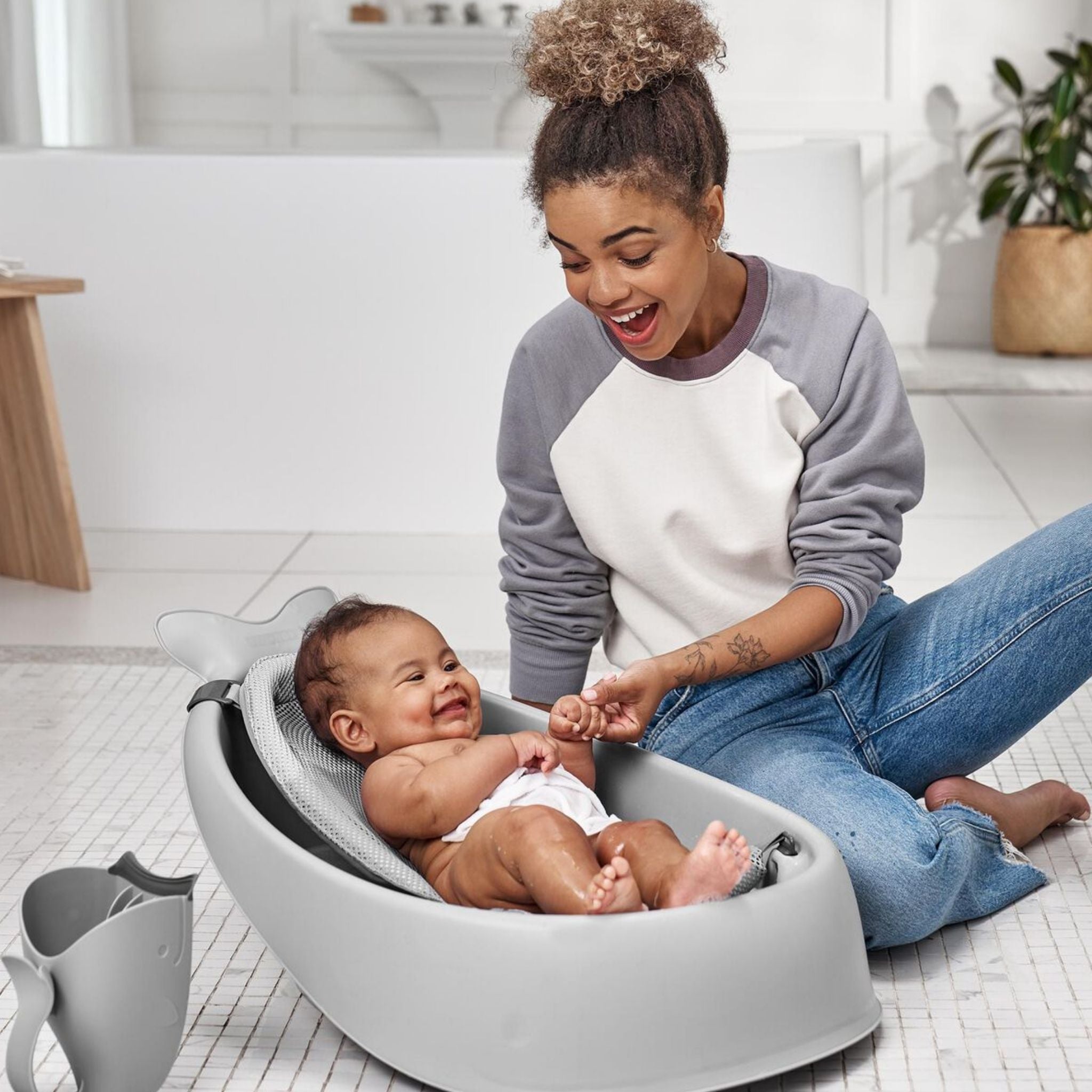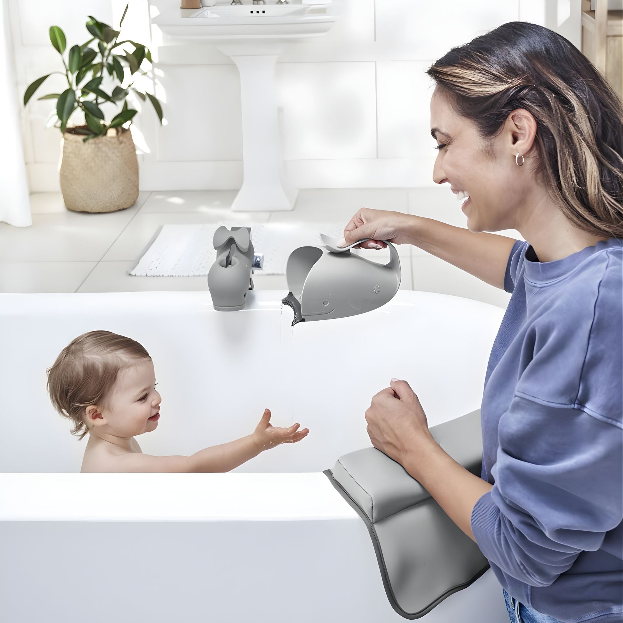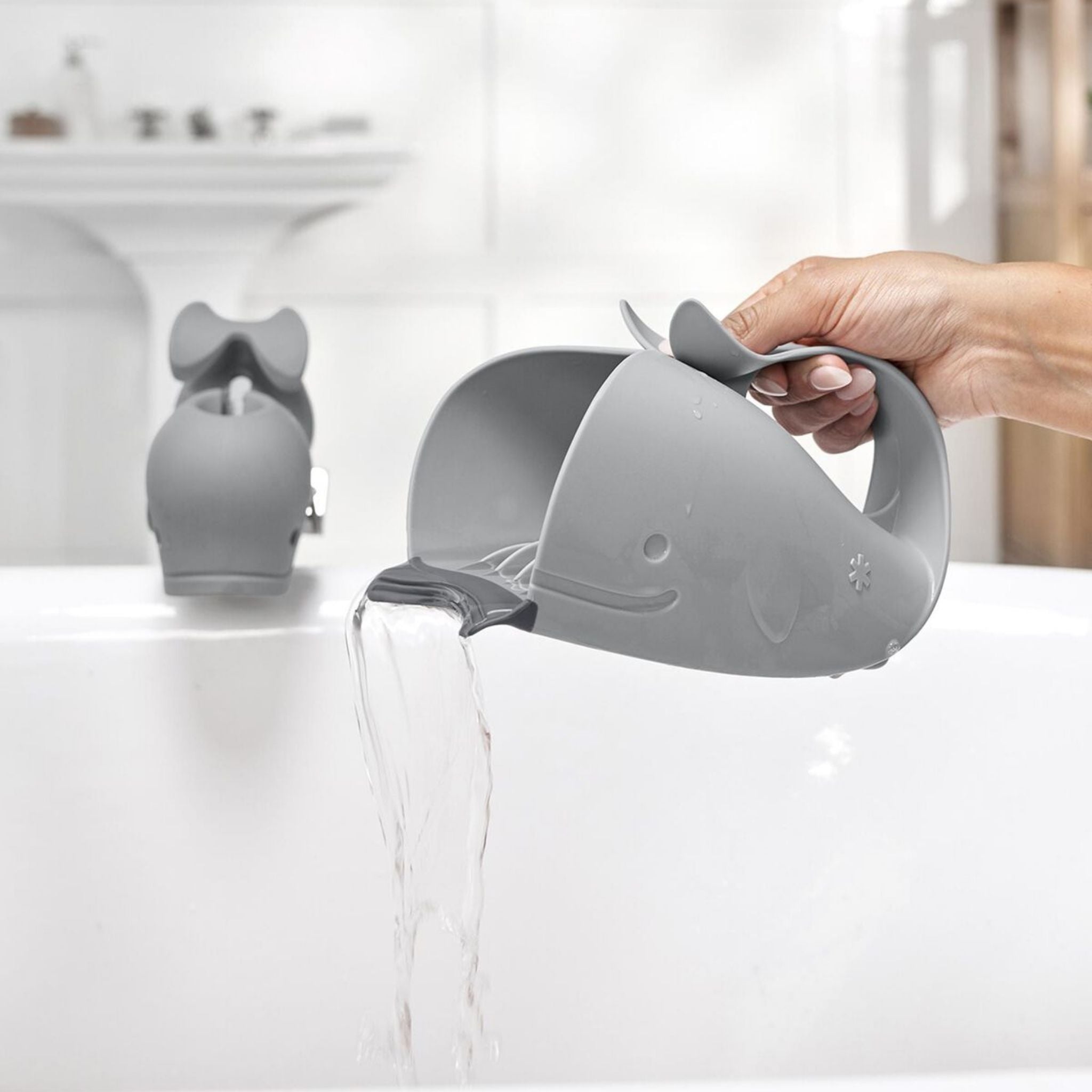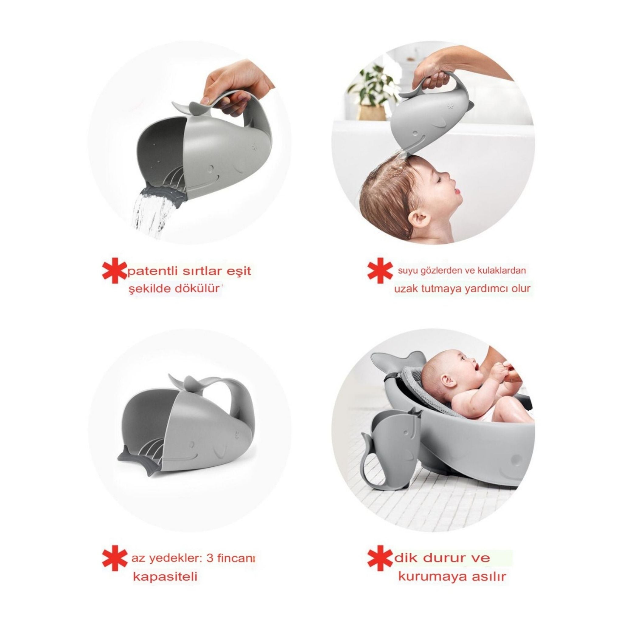 Skip Hop Moby Durulama Kabı, bebek banyosu sırasında suyun gözlere ve kulaklara kaçmasını önlemek için özel olarak tasarlanmış yenilikçi bir durulama aparatıdır. Patentli iç çıkıntıları sayesinde su akışını eşit şekilde yönlendirir ve durulama işlemini hem hızlı hem de konforlu hale getirir. Yumuşak kauçuk dudak kısmı bebeğin alnına nazikçe oturarak suyun yüz bölgesine gelmesini engeller. Ergonomik sapı, tek elle durulama yaparken diğer elinizle bebeğinizi güvenle desteklemenizi sağlar. Kullanım sonrasında dik şekilde durabilir veya sapından kolayca asılarak kurutulabilir. Bulaşık makinesinde yıkanabilir yapısıyla pratiklik sunan bu ürün, Skip Hop Moby banyo koleksiyonuyla uyumlu bir tasarıma sahiptir.