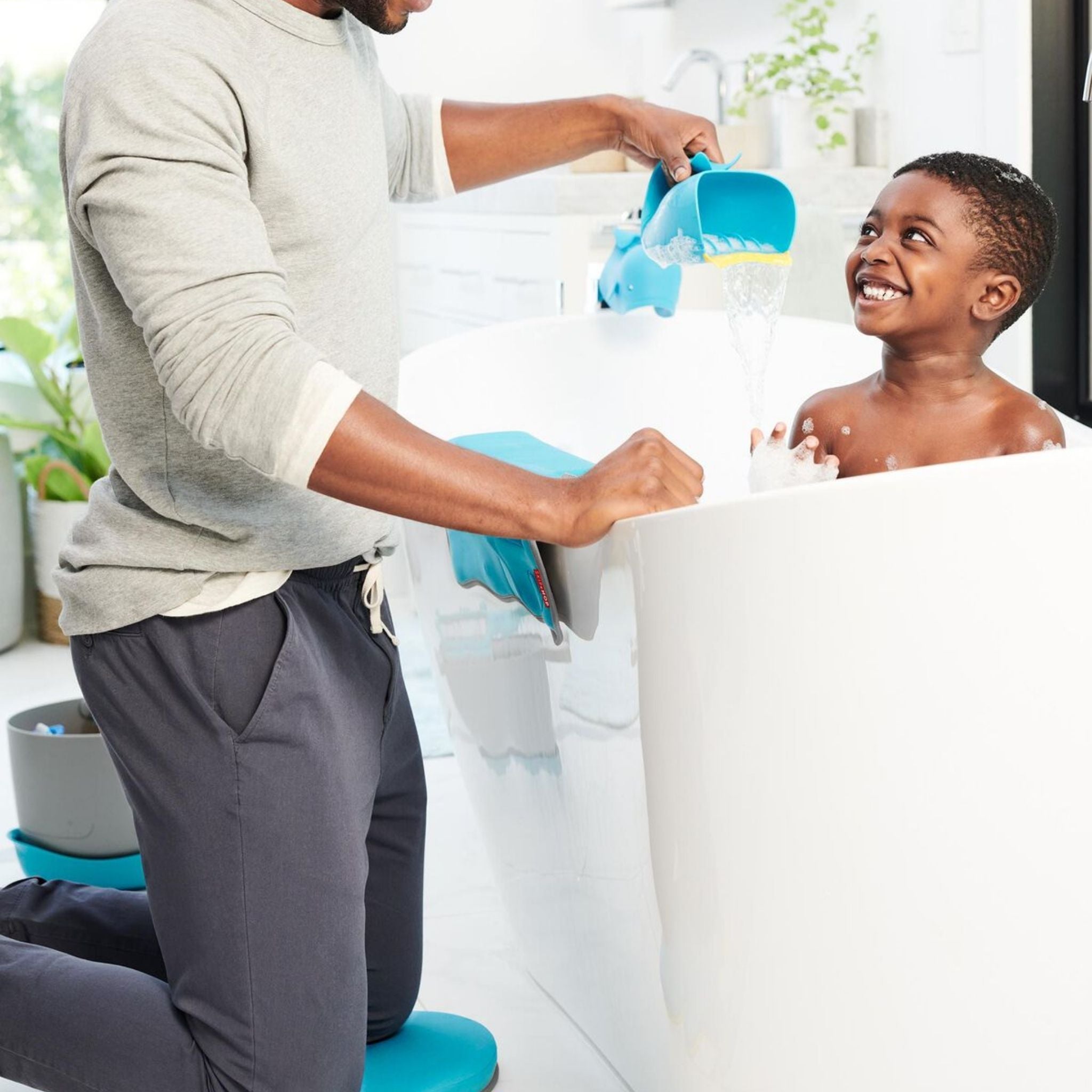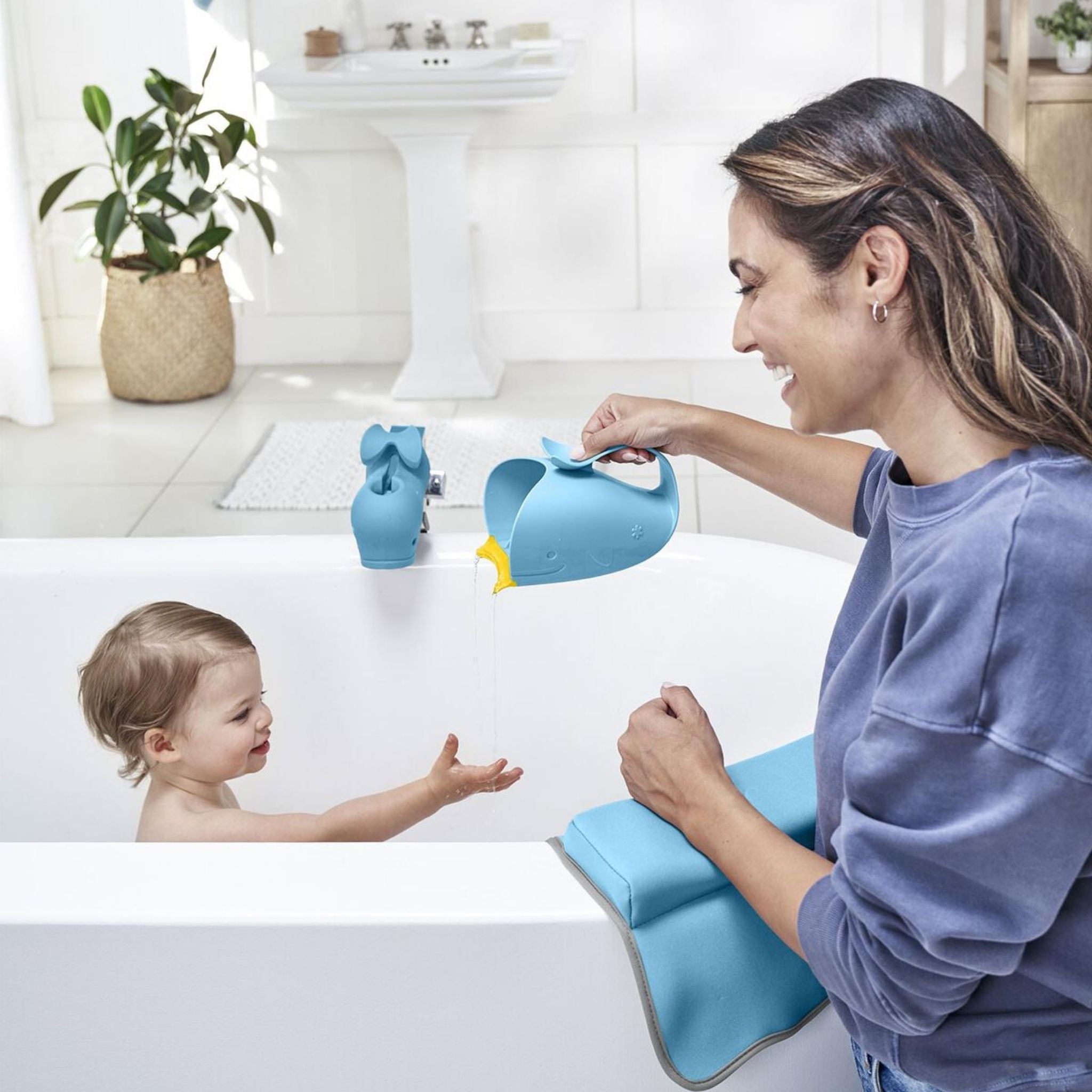 Skip Hop Moby Durulama Kabı, bebek banyosunu daha konforlu, güvenli ve pratik hale getirmek için geliştirilmiş özel bir yardımcı üründür. Mavi renkli tasarımıyla banyo zamanına neşe katarken, fonksiyonel yapısıyla ebeveynlerin en büyük destekçisi olur. Kabın iç yüzeyinde yer alan mühendislik tasarımı çıkıntılar, suyu tek bir noktaya değil kontrollü bir şekilde yönlendirerek durulama işlemini daha kolay hale getirir. Yumuşak dudak bölümü bebeğin alnına tam oturur ve suyun yüz bölgesine gelmesini en aza indirir. Böylece bebekler için göz yakmayan, ebeveynler için zahmetsiz bir banyo deneyimi sunar. Kullanım sonrası dik konumda durabilmesi veya sapından asılarak kurutulabilmesi sayesinde hijyenik bir saklama sağlar. Bulaşık makinesinde yıkanabilen yapısı ile genel temizliği hızlı ve pratiktir.