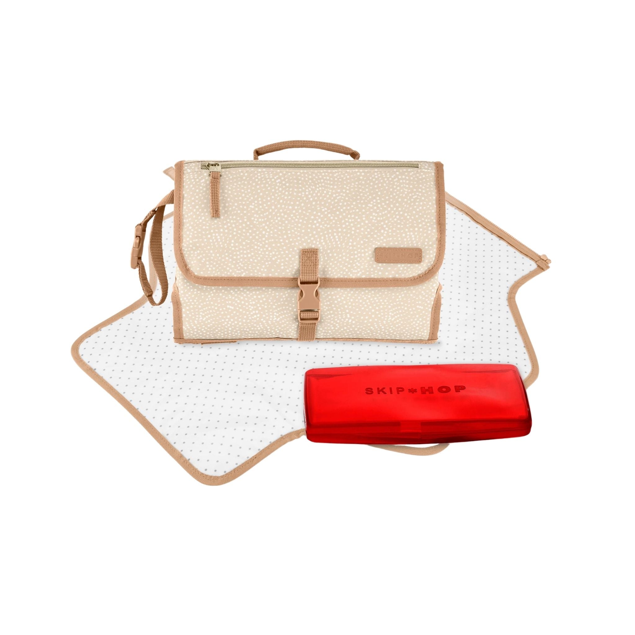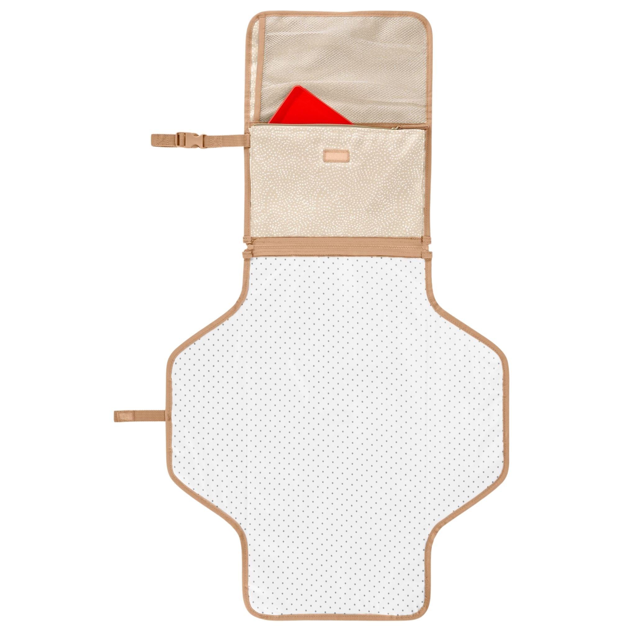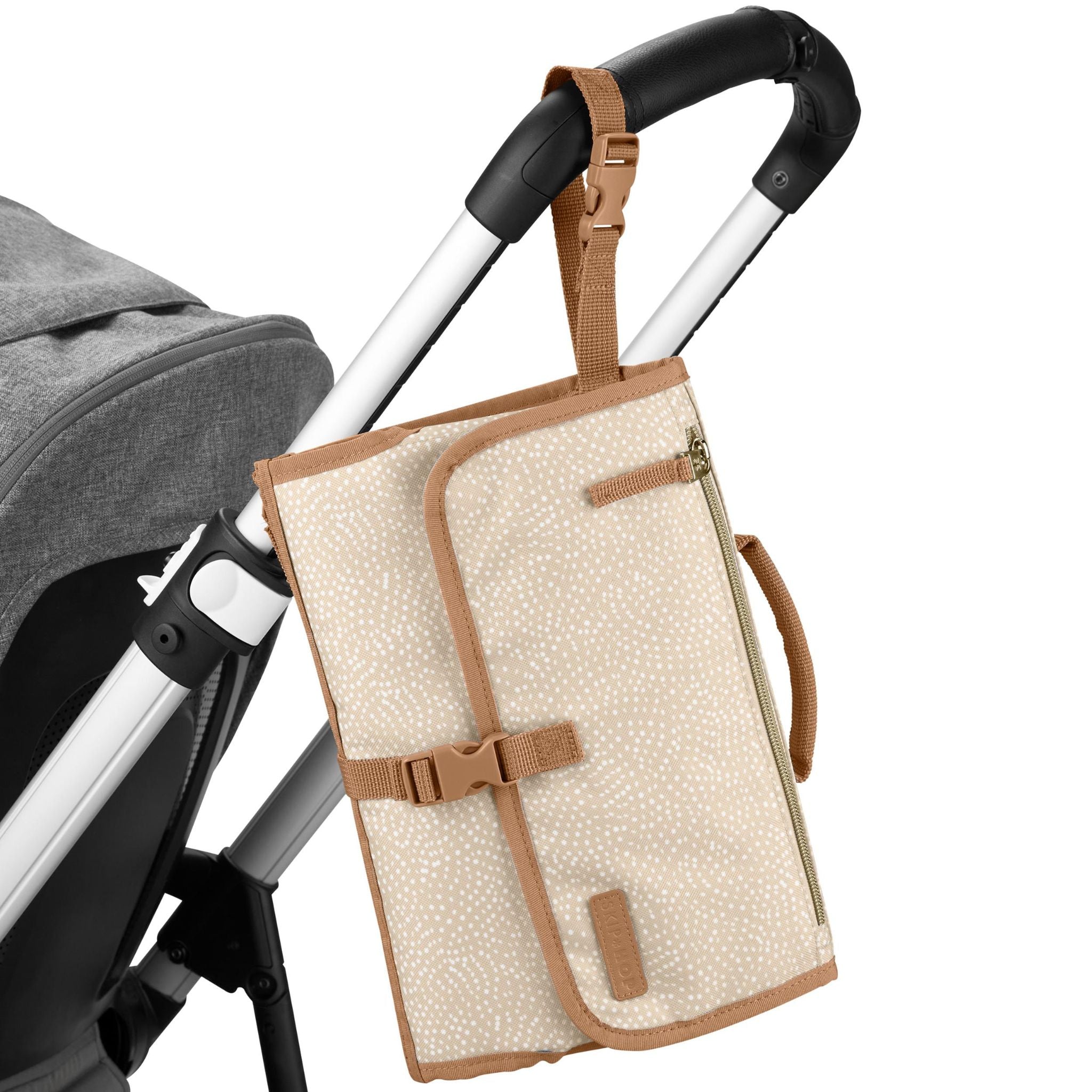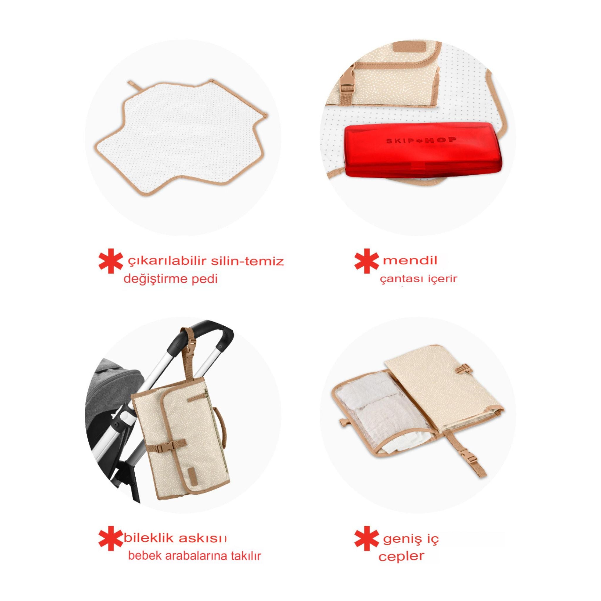 Nerede olursanız olun, bebeğinizin altını değiştirmek artık çok daha kolay! Bebek Bezi Değiştirme Örtüsü, hem çanta hem de silinebilir geniş değiştirme pedi olarak iki fonksiyonu bir araya getirir. Tek elle kolayca açılabilen yapısıyla, diğer elinizle bebeğinizle ilgilenebilirsiniz. İçerisindeki yarı saydam mendil kutusu, zamanında yeniden doldurmayı hatırlatırken; file cepler dört büyük bebek bezi ve krem gibi temel ihtiyaçlara yer sunar. Ön fermuarlı bölme sayesinde anahtar, telefon veya cüzdan gibi kişisel eşyalarınızı da kolayca taşıyabilirsiniz. İster bebek arabasına asın, ister bileğinize takın ya da çantanıza yerleştiriniz, bu çok amaçlı ürün, annelerin en büyük yardımcısı!