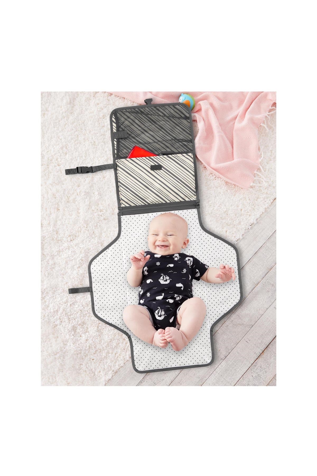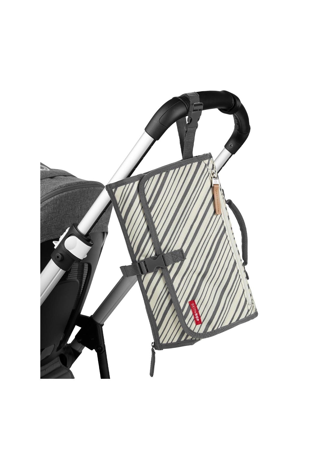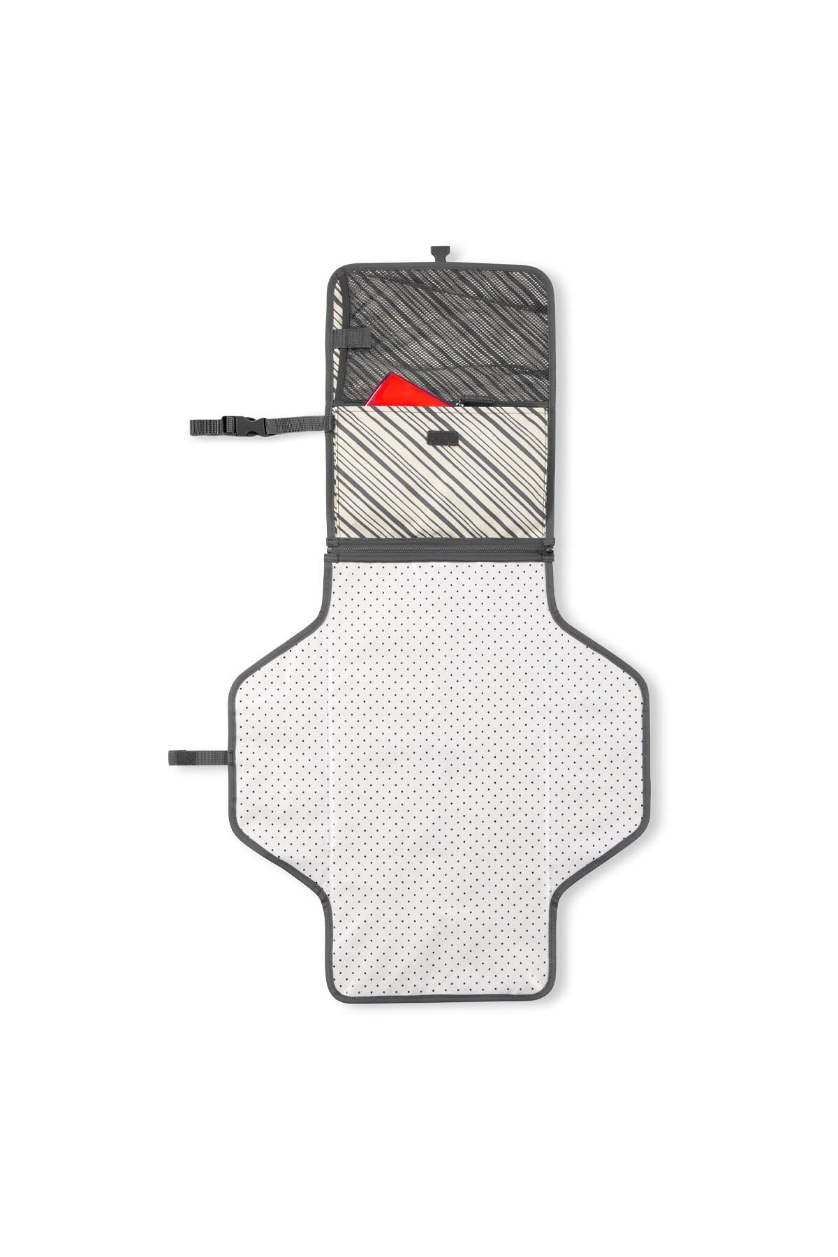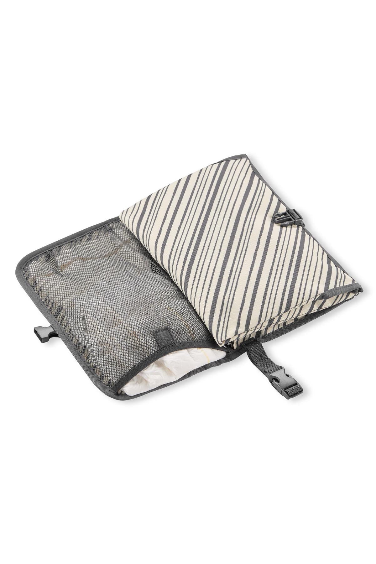 Şehirde, yolculukta, parkta… Pronto, bebeğinizin altını her yerde hızlı ve hijyenik biçimde değiştirmenizi sağlar. Silinerek temizlenen geniş alt değiştirme pedi, şeffaf mendil kutusu ve düzenli saklama cepleriyle “tek elle” bile pratik kullanım sunar. Çizgili modern tasarımıyla her çantaya uyum sağlar; bileğe takılabilir ya da bebek arabasına kliplenebilir.