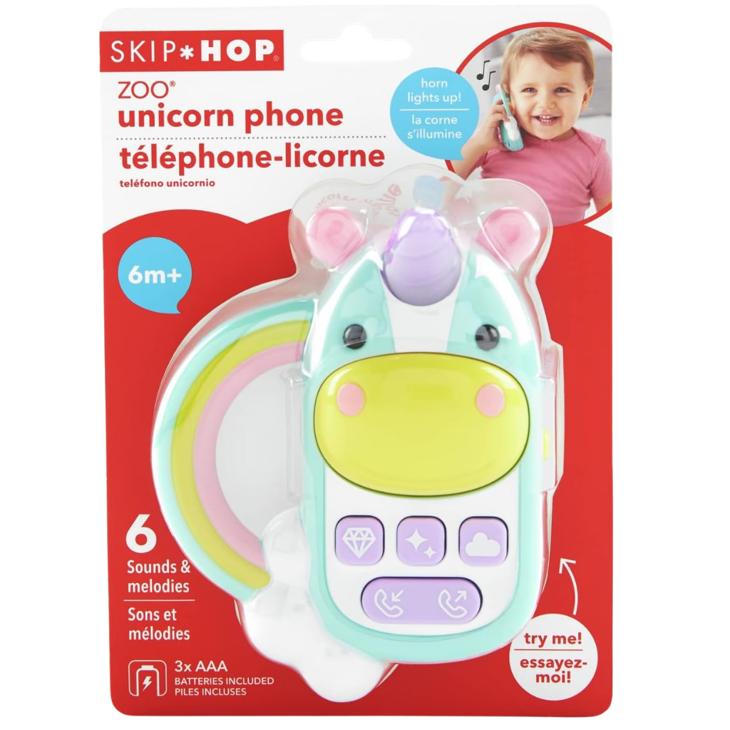 Skip Hop Zoo Oyuncak Telefon Unicorn 6 Ay+, bebekler için tasarlanmış eğlenceli ve etkileşimli bir ilk telefon deneyimi sunar. Tek boynuzlu at tasarımı, ışıklı boynuzu ve renkli düğmeleri ile miniklerin dikkatini çekerken hem oyun hem de gelişim sürecini destekler. Sevimli ses efektleri ve melodileri sayesinde uzun süreli eğlence sağlar. Skip Hop Zoo koleksiyonuna ait bu oyuncak telefon, 6 ay ve üzeri bebekler için uygundur. Neşeli arama ve zil sesleri dahil toplam 6 farklı ses ve melodi içerir. Buruna basıldığında boynuz ışığı yanar ve görsel uyarım sunar. Düğmelere basıldığında farklı sesler ve şarkılar devreye girer. Bu etkileşim, bebeğin neden sonuç ilişkisini keşfetmesine yardımcı olur. Kolay kavranabilen gökkuşağı tutamağı küçük eller için ergonomik olarak tasarlanmıştır. İnce motor becerilerinin gelişimini desteklerken el göz koordinasyonuna katkı sağlar. Ftalat içermeyen güvenli malzemeden üretilmiştir. Skip Hop Unicorn Telefon, görsel ve işitsel uyarıcıları bir araya getirerek bebeğinizin eğlenirken öğrenmesini sağlayan interaktif bir oyuncaktır.