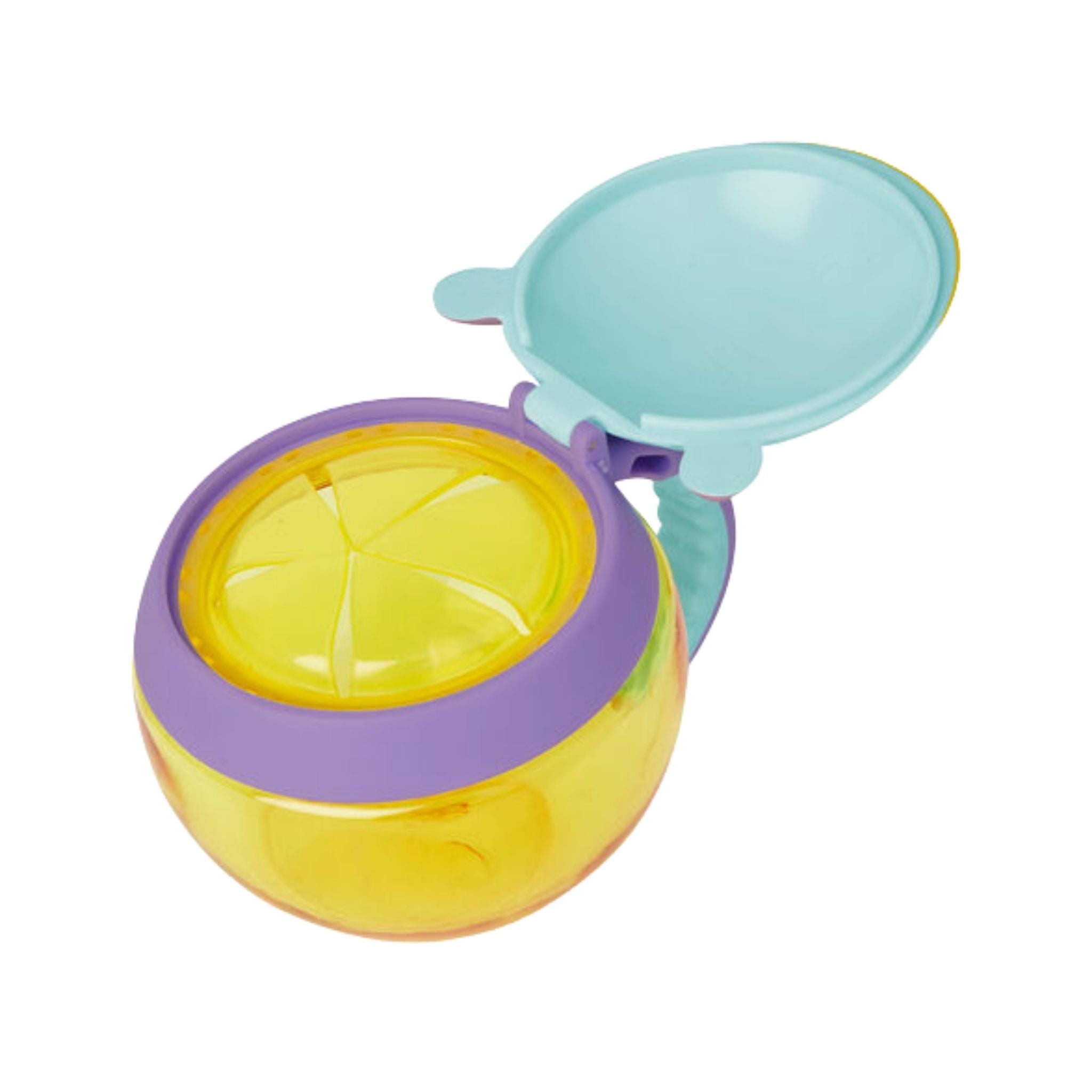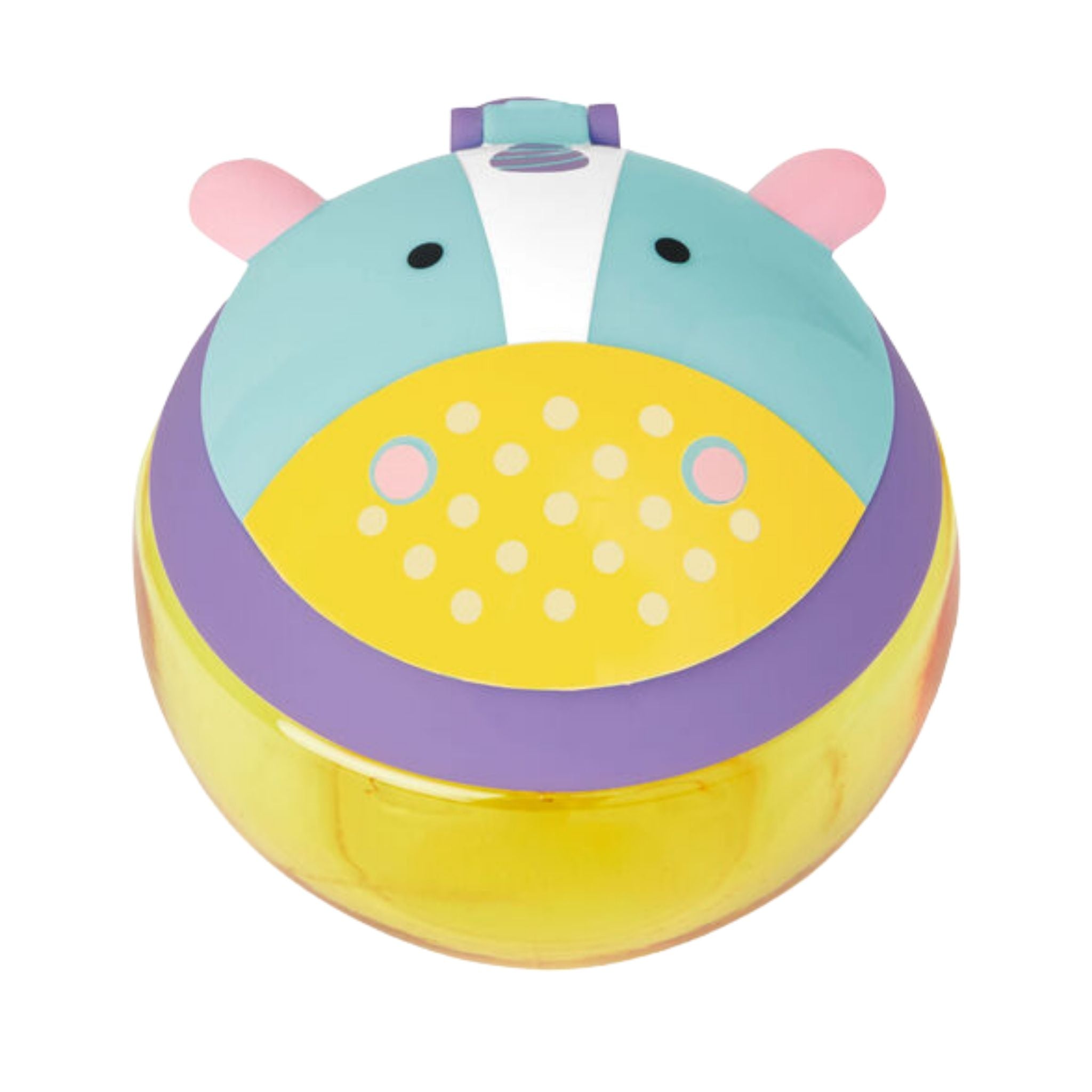 Unicorn temalı Skip Hop Zoo çerez kabı, miniklerin kendi kendine dökmeden atıştırmasını kolaylaştırır. Şeffaf gövde doldurma zamanını gösterir, çıtçıtlı üst kapak atıştırmalıkları taze tutar. Yumuşak esnek iç ağız devrilse bile dökülmeyi azaltır; kolay kavranan kaymaz sap ise küçük ellere tam uyum sağlar. Zoo koleksiyonundaki diğer ürünlerle takım yaparak oyun ve atıştırma saatlerini daha eğlenceli hâle getirebilirsiniz.