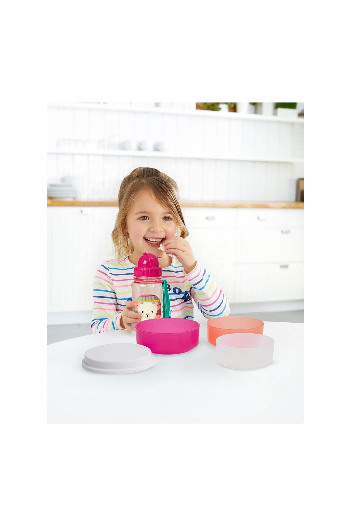 Sevimli ve renkli iç içe geçen Skip Hop Zoo kaseleri ile yemek zamanını kolay ve eğlenceli hale getirin! Tabak, çatal ve kaşık setlerinin 1 numaralı tercihi bu beslenme seti, dökülmeyi önlemek için kaymaz tabana sahip 3 farklı ve kullanışlı boyut içerir. Ayrıca en büyük kase için mükemmel bir şekilde uyum gösteren güvenli bir kapak da dahildir. Bu nedenle artıkları kurtarmak, yiyecekleri taşımak ve saklamak için çok kullanışlı!