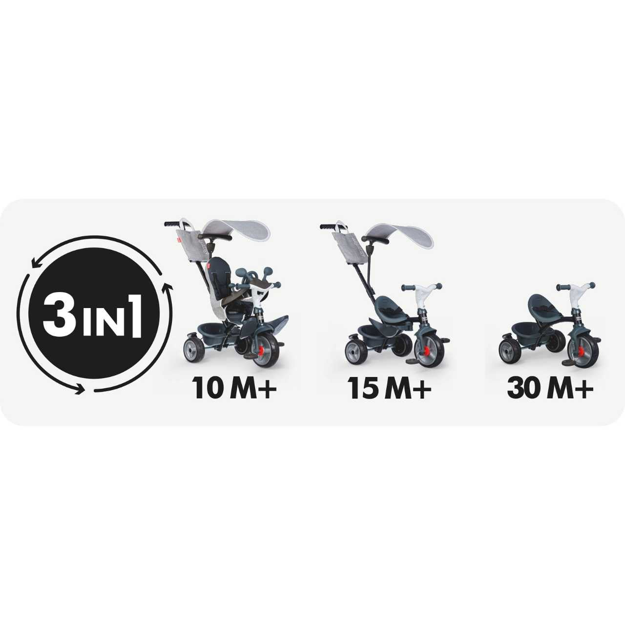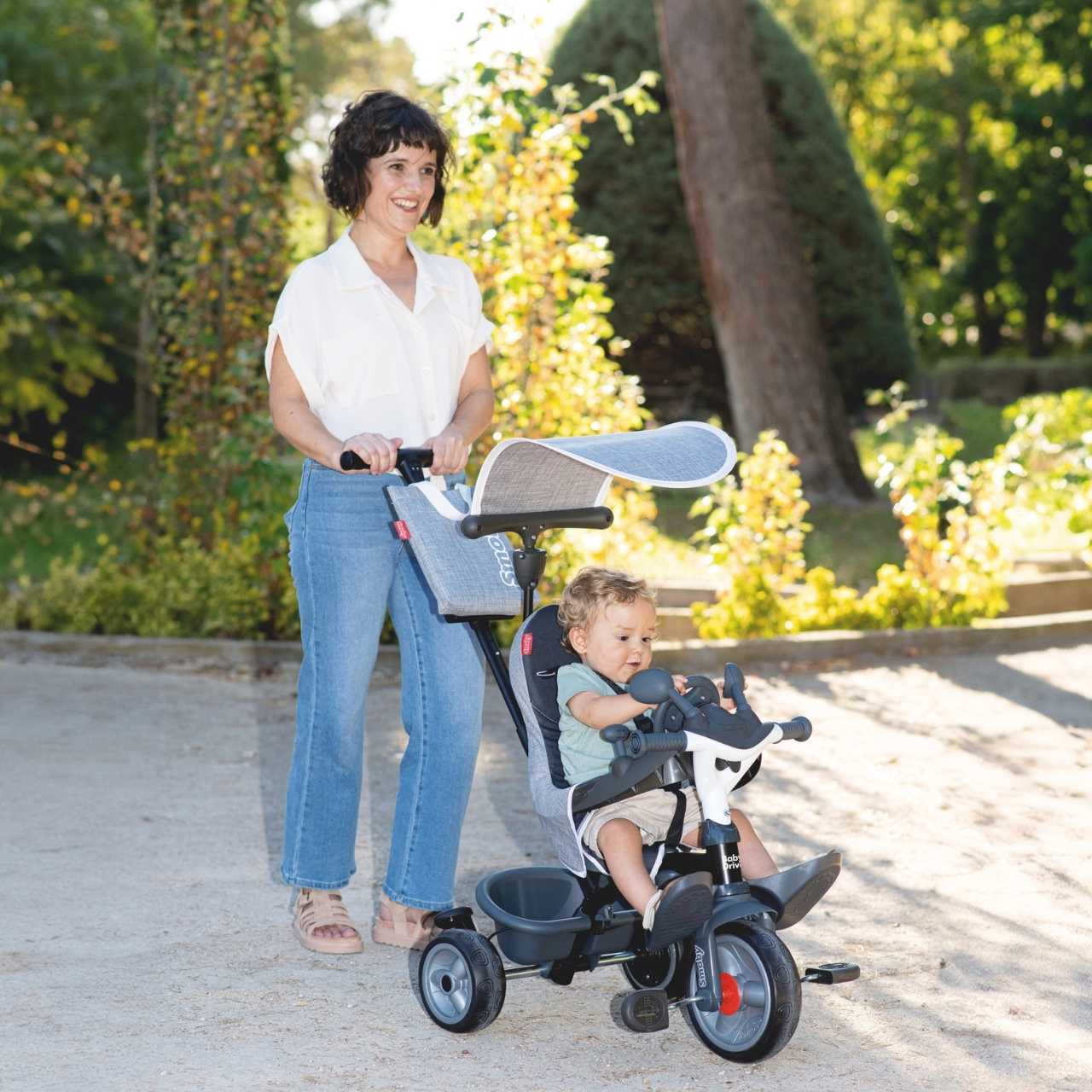 Smoby Baby Driver 3 Tekerlekli Bisiklet Gri, bebeklikten çocukluk dönemine geçişi destekleyen çok aşamalı bir kullanım sistemi sunar. Hem puset hem de üç tekerlekli bisiklet olarak kullanılabilen bu model, güvenlik, konfor ve kontrolü bir araya getirerek uzun süreli bir sürüş deneyimi sağlar. 10 aydan başlayan kullanım avantajı sayesinde aileler, çocuklarının büyüme hızına göre ürünü aşamalı olarak dönüştürebilir. Gri tonlarındaki modern tasarımı ile hem estetik hem fonksiyonel beklentileri karşılayan özel bir sürüş aracıdır. Ergonomik ve yumuşak oturma alanı, ayarlanabilir emniyet kemeri ve UV korumalı tente ile küçük çocukların güvenli şekilde gezmesine olanak tanır. Ebeveyn yönlendirme kolu yüksekliği ayarlanabilir yapıdadır ve sürüşü yetişkinler için oldukça kolaylaştırır. Patlamayan, sessiz tekerlek yapısı dış mekân kullanımlarında dayanıklılık sağlar. Pedallar ve direksiyon kontrolü çocuk büyüdükçe aktif hâle getirilebilir, böylece sürüş becerisi doğal bir şekilde gelişir. Geniş arka konteyner bölmesi ve çıkarılabilir ebeveyn çantası ise günlük gezilerde büyük pratiklik sunar. Baby Driver’ın gri modeli sade yapısı, güvenlik detayları ve gelişim destekleyen sürüş modlarıyla ailelerin uzun süre tercih edebileceği çok yönlü bir bisiklet seçeneğidir.
