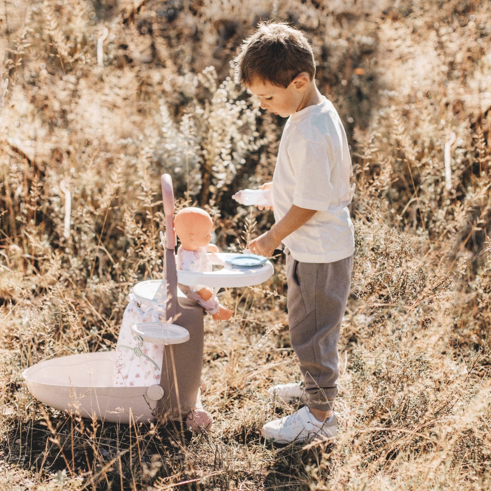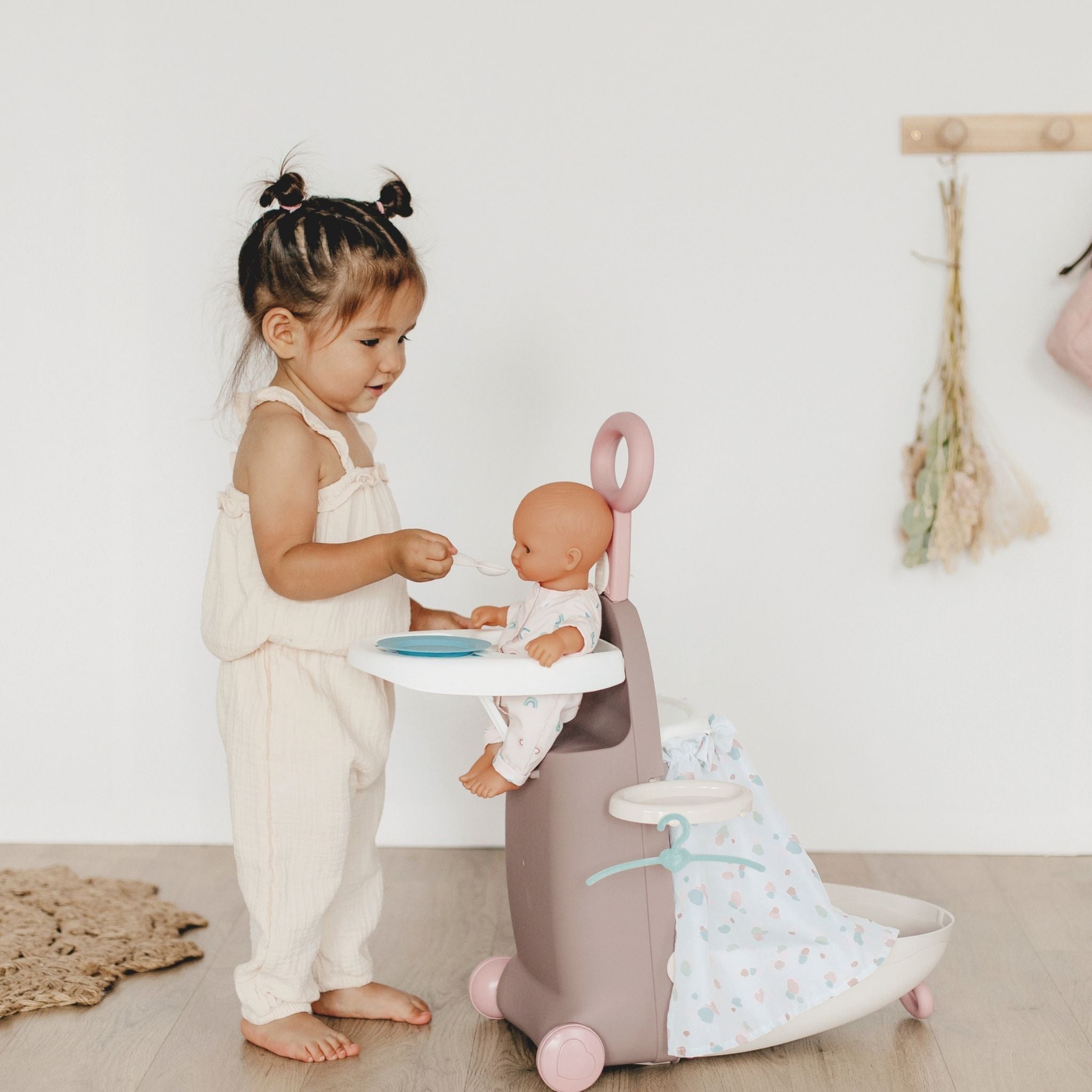 Smoby Baby Nurse 3'ü 1 Arada Oyuncak Seyahat Seti, küçük ebeveynlerin bebek bakım dünyasını gerçekçi bir şekilde deneyimlemesi için tasarlanmış çok fonksiyonlu bir oyuncak setidir. Kompakt yapısı sayesinde kolayca taşınabilen bu pratik seyahat arabası, açıldığında tam donanımlı bir bakım merkezi haline gelir. Hem ev içi oyunlarda hem de seyahat temalı oyun kurgularında kullanılabilen set, çocuklara özgürce rol yapma imkânı sunar. Yatak alanı, yemek bölümü ve mini sandalye gibi çok yönlü fonksiyonlarıyla küçüklerin hayal gücünü desteklerken aynı zamanda bakım ve sorumluluk duygularını geliştirmeye yardımcı olur. Yumuşak battaniyesi, rahat yastığı ve geniş kullanım alanı ile 42 cm’e kadar tüm oyuncak bebeklerle uyumlu olması büyük bir avantaj sağlar.