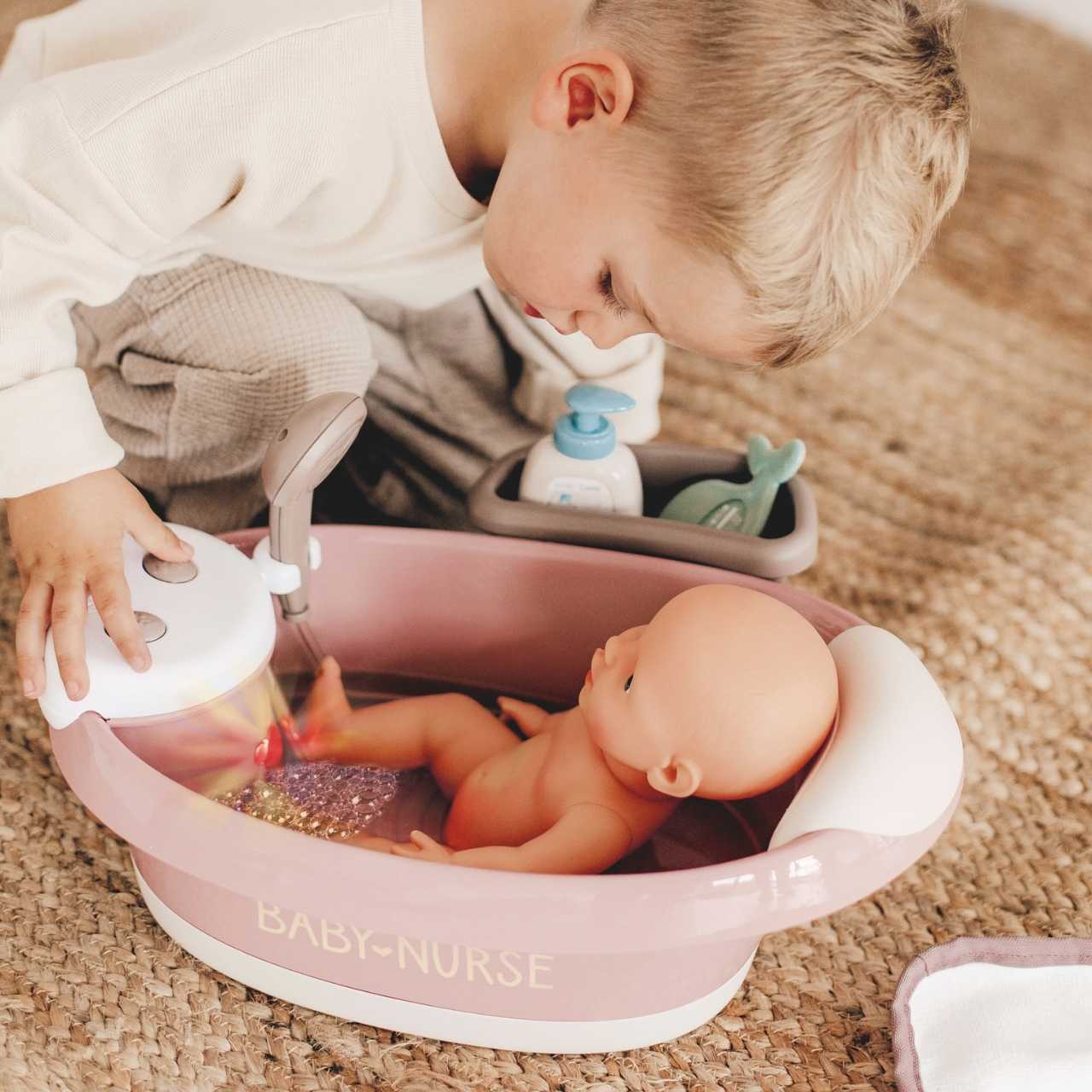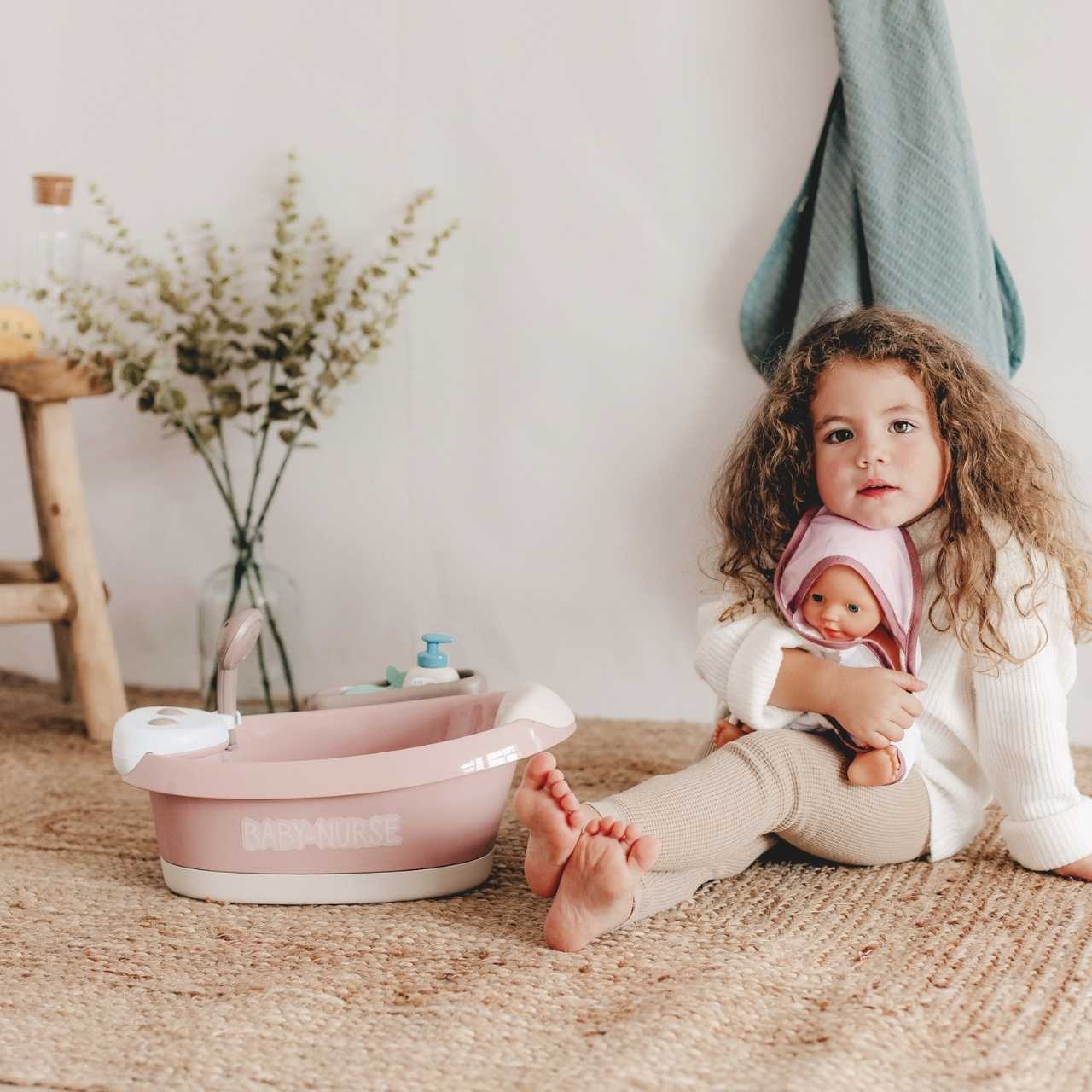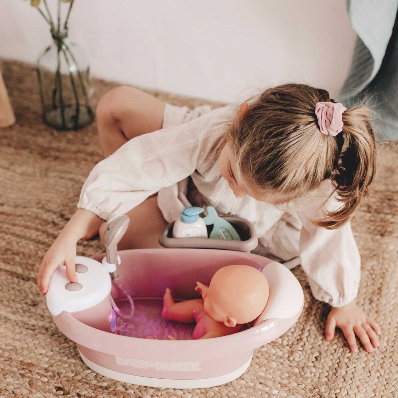 Smoby Baby Nurse Oyuncak Bebek Banyo Küveti; gerçek bir spa deneyimini miniklerin oyuncak bebeklerine taşıyan fonksiyonel bir oyun setidir. Renkli ışık efekti, baloncuk fonksiyonu ve su püskürten otomatik duş başlığı sayesinde banyo zamanı hem eğlenceli hem öğretici hâle gelir. Elektronik modüllü yapısı, gerçekçi banyo rutini sunarak çocukların rol yapma becerilerini destekler. 42 cm’e kadar tüm oyuncak bebeklerle uyumlu olan bu modern küvet, kaliteli malzemesi ve geniş aksesuar setiyle uzun süre keyifle oynanabilecek bir üründür.