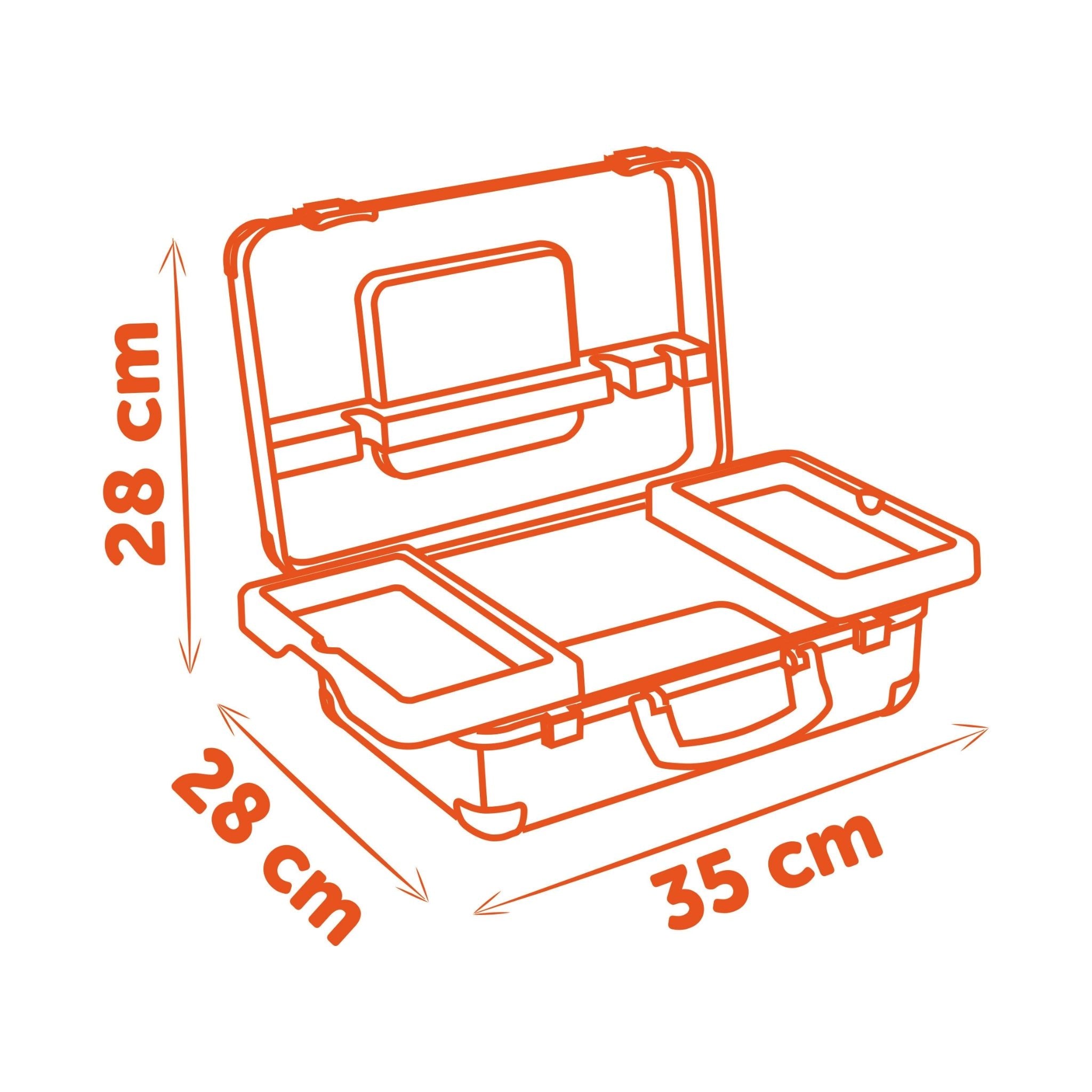 Küçük tamirciler iş başına! Smoby’nin lisanslı Black Decker Alet Kutusu ile çocuklar hayal güçlerini kullanarak tamirat yapmayı öğreniyor, kendi minik projelerini hayata geçiriyor. Gerçekçi detaylara sahip bu tamir seti, çocuklara eğlenirken el becerisi ve koordinasyon kazandırıyor. Pratik taşıma sapı sayesinde evin içinde ya da dışarıda her yere kolayca götürülebilen kutu, iki katlanabilir saklama gözüyle düzenli kullanım sunar. Kutunun içindeki parçalar; somunlar, cıvatalar ve yapı elemanlarının yanı sıra tornavida, anahtar ve açık uçlu anahtar gibi olmazsa olmaz tamir aletlerinden oluşur. Çocuklar ayrıca, set içerisinde yer alan parçaları kullanarak kendi araçlarını da vidalayarak oluşturabilir. Minik tamirciler için harika bir başlangıç! Smoby Black Decker Alet Kutusu, çocukların hem eğlenip hem öğrenmesini sağlar. El becerilerini ve problem çözme yeteneklerini destekleyen bu eğlenceli set, küçük ustaların vazgeçilmezi olacak.