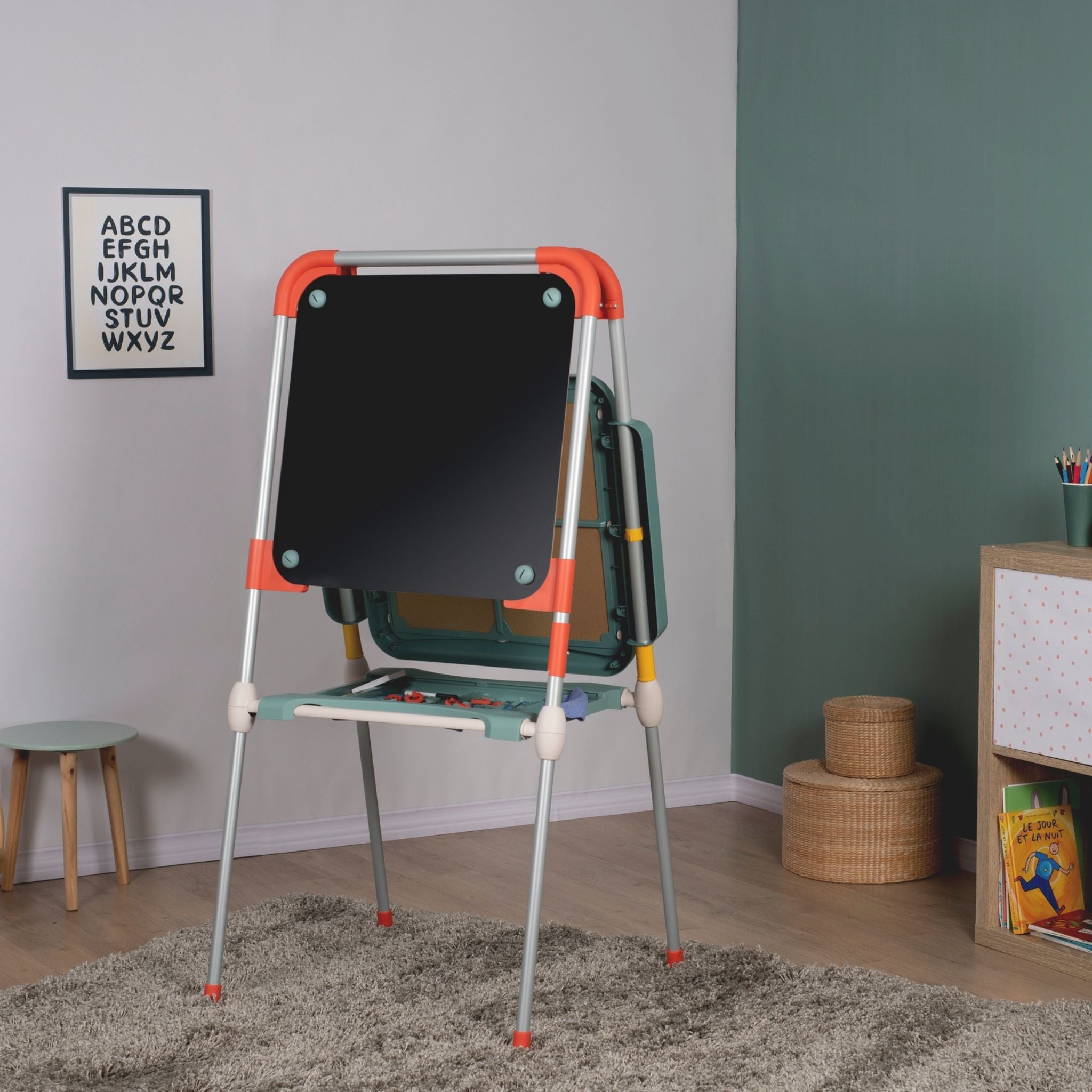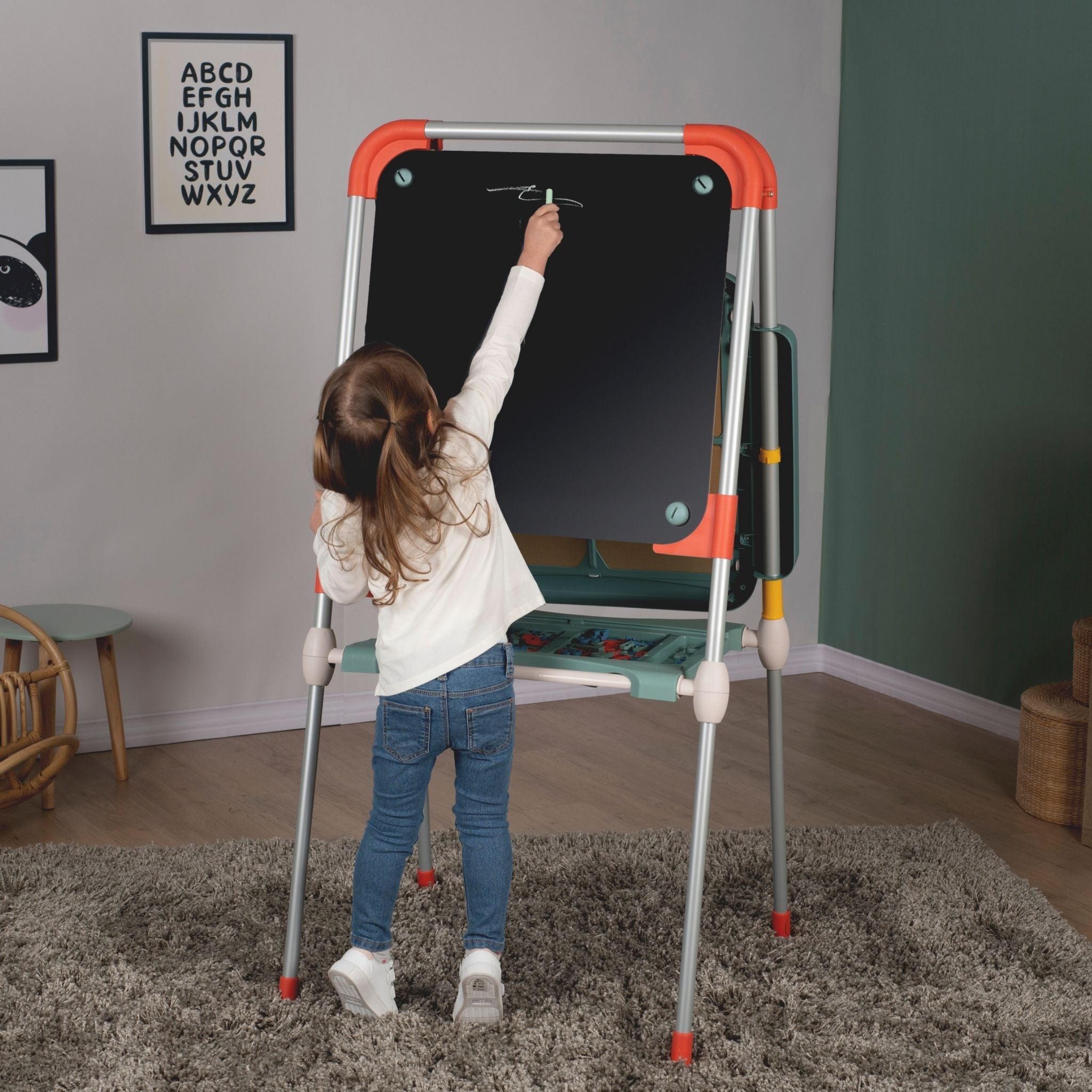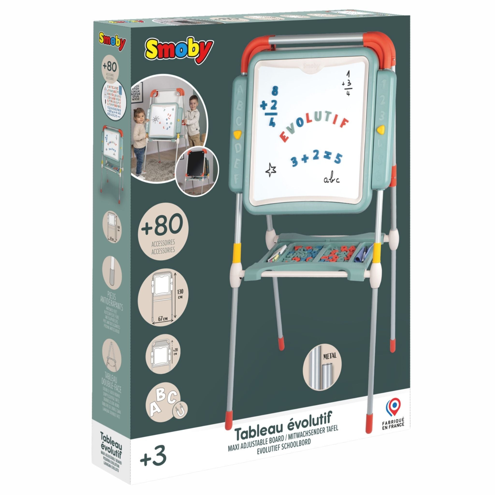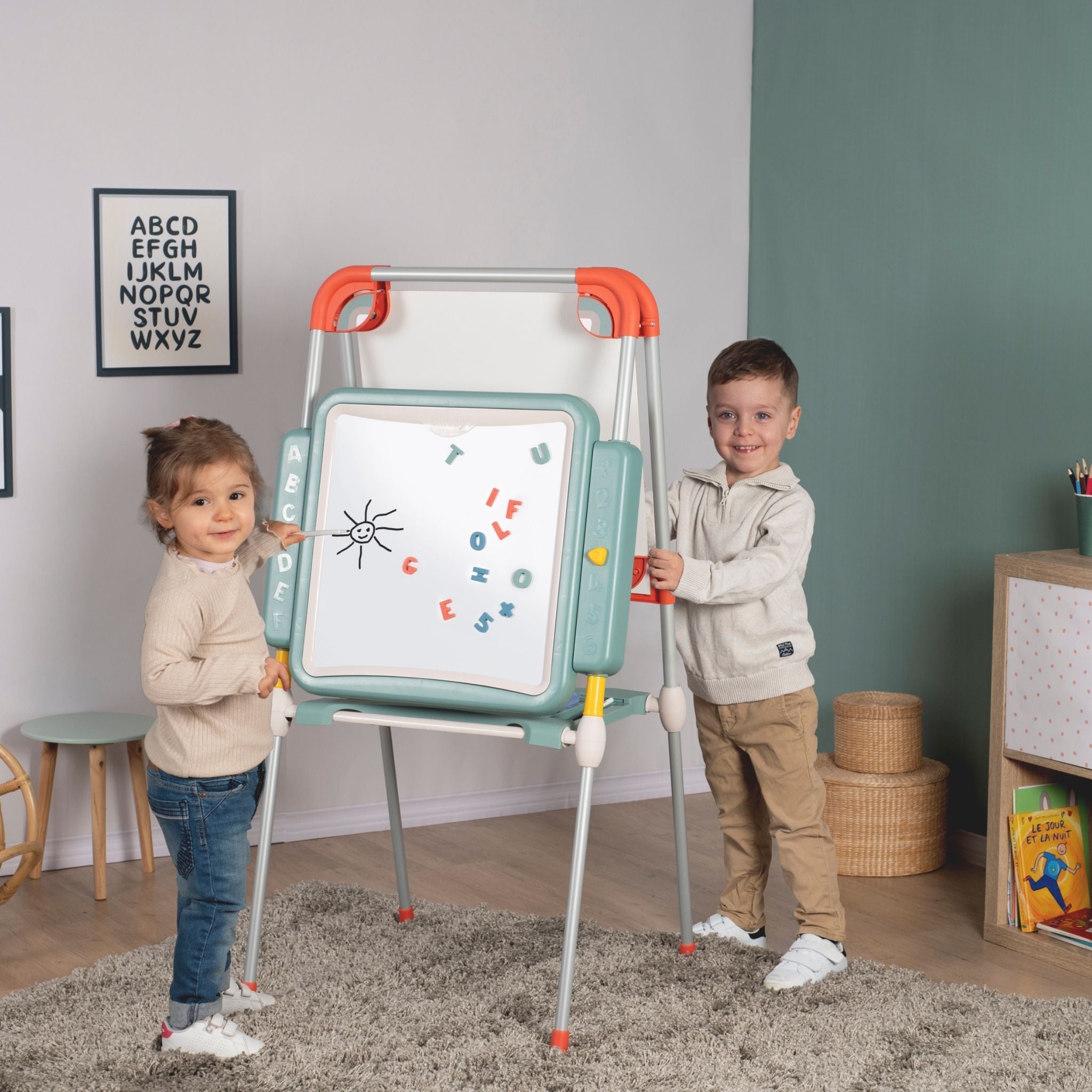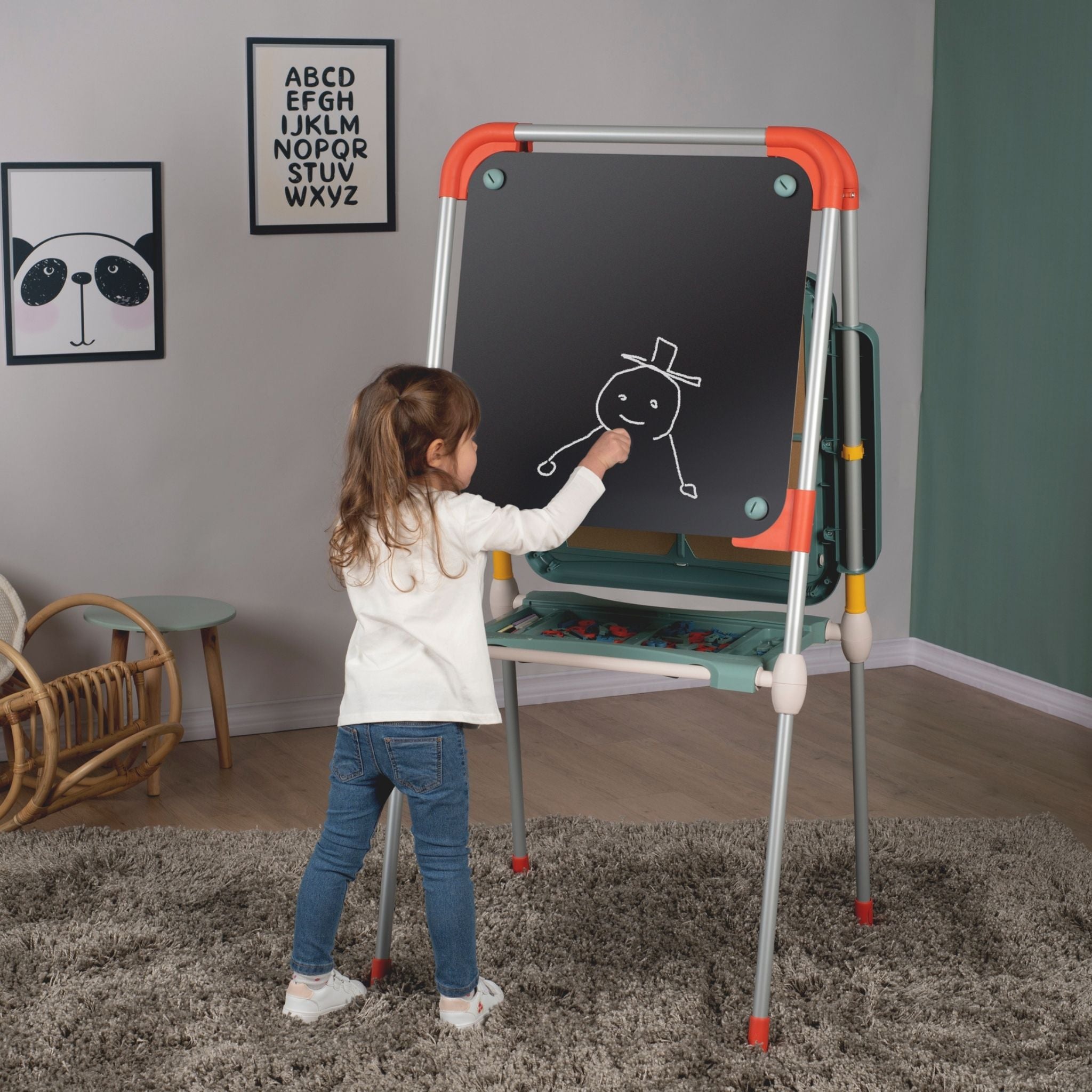 Smoby’nin modern tasarımlı ve fonksiyonel Evrimsel Oyun Tahtası, çocukların öğrenme ve yaratıcılık becerilerini destekleyen harika bir eğitim aracıdır. Yüksekliği ayarlanabilir yapısı sayesinde farklı yaş gruplarına uyum sağlar ve çocuklarla birlikte “büyüyen” bir tahtadır. Bir yüzü manyetik beyaz tahta, diğer yüzü ise geniş sabit aktivite alanı olarak kullanılabilir. Çocuklar manyetik harf ve rakamlarla kelimeler ve sayılar oluşturabilir, silinebilir kalemle yazı yazabilir veya renkli tebeşirlerle özgürce resim yapabilir. Tahta, katlanabilir tasarımı sayesinde kolayca toparlanır ve yer tasarrufu sağlar. Ayrıca, çift bölmeli saklama alanı, kalem, tebeşir ve diğer aksesuarları düzenli bir şekilde muhafaza etmek için idealdir. Fransa’da yüksek kaliteli malzemelerden üretilen Smoby Evrimsel Oyun Tahtası, sağlamlığı ve uzun ömürlü kullanımıyla dikkat çeker. Smoby Evrimsel Oyun Tahtası, çocuklara hem oyun hem de öğrenme deneyimi sunarak yazı yazmayı, sayıları öğrenmeyi ve hayal gücünü geliştirmeyi eğlenceli hale getirir.