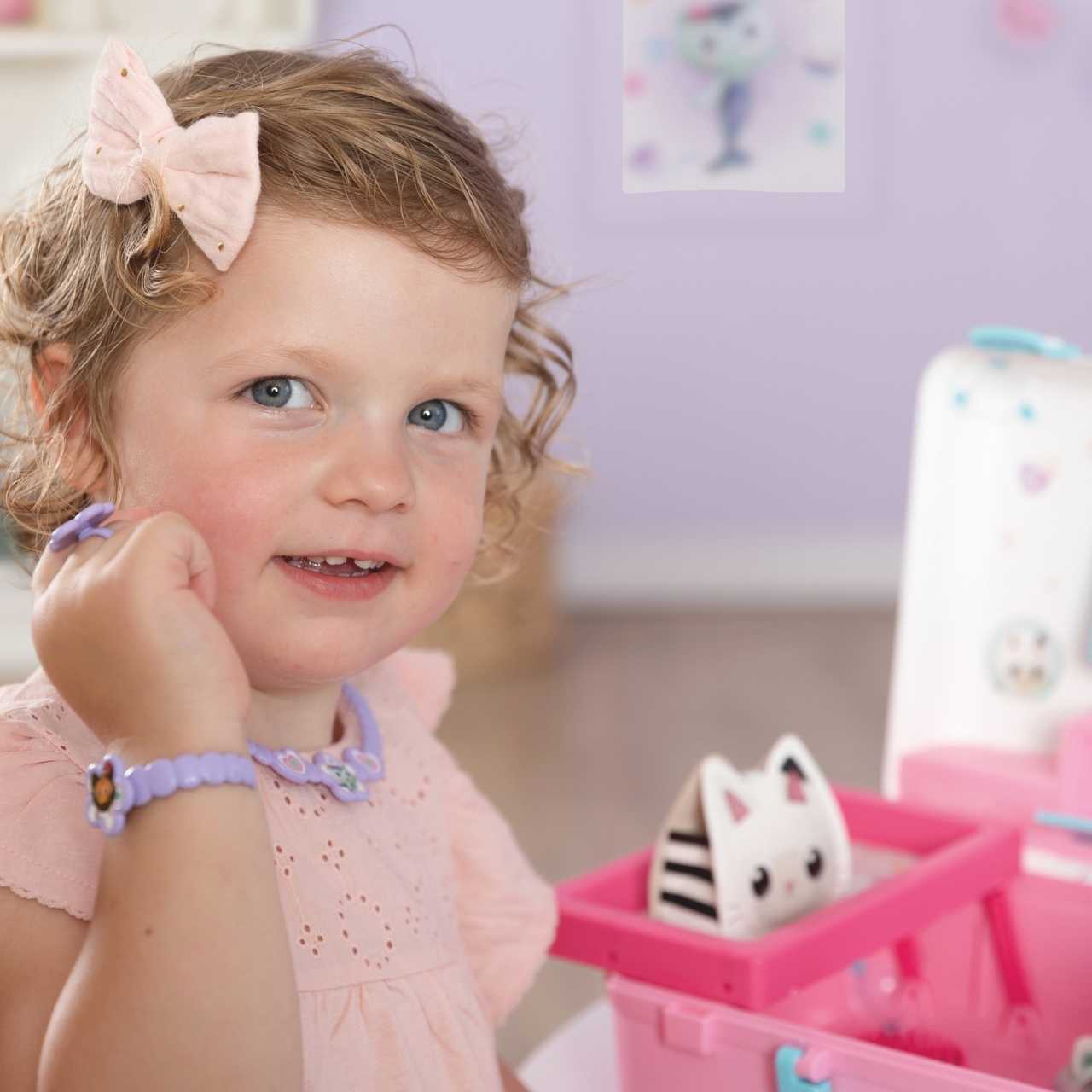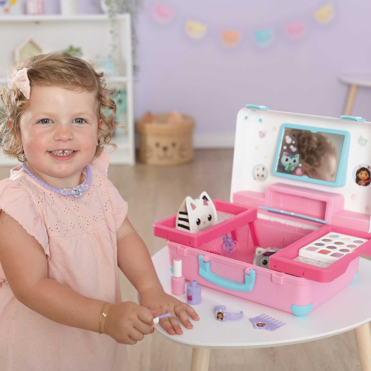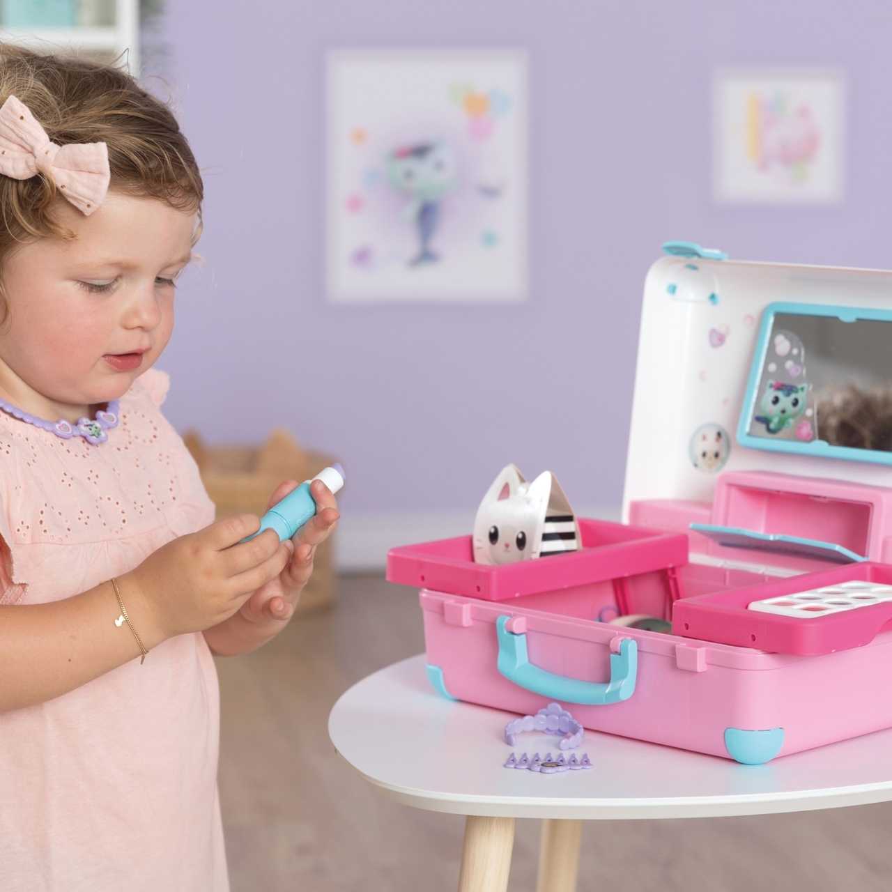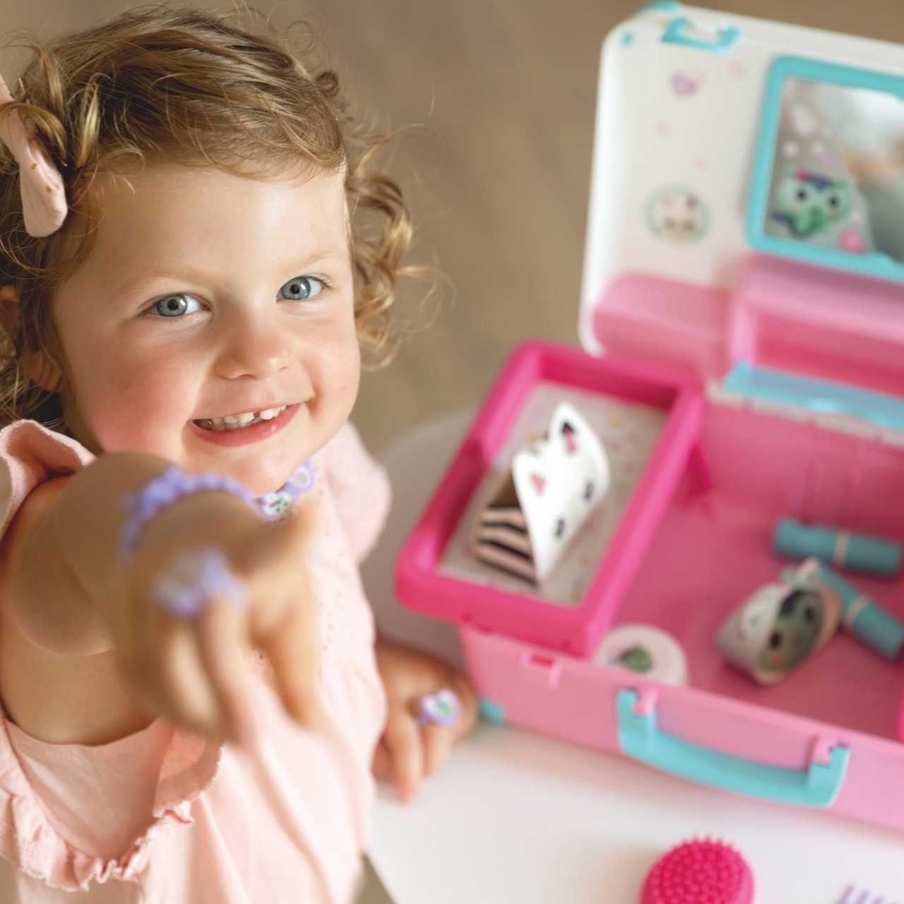 Gabby 'nin Bebek Evi dünyasından ilham alan Gabby Beauty Vanity, miniklerin hayal gücünü harekete geçiren eğlenceli ve interaktif bir güzellik setidir. 3 yaş ve üzeri çocuklar için özel olarak tasarlanan bu kompakt makyaj masası; saç şekillendirme, makyaj ve tırnak bakımını tek bir sette buluşturur. Kolay taşınabilir tasarımı sayesinde her yerde eğlenceye hazır olan Gabby Beauty Vanity, gerçek ayna, gizli kapak, geri çekilebilir raflar ve toplam 15 adet aksesuar ile çocuklara saatler süren rol yapma ve keşif imkânı sunar. Gabby Beauty Vanity, çocukların rol yapma becerilerini, özgüvenlerini ve yaratıcılıklarını geliştirirken onları Gabby 'nin büyülü dünyasına keyifli bir yolculuğa çıkarır. Şimdi keşfetme zamanı!