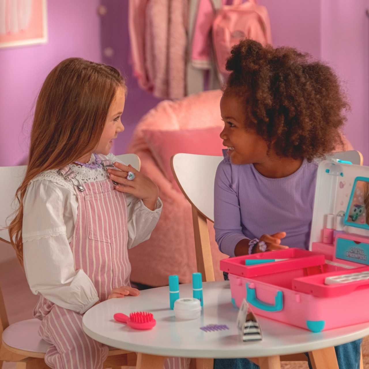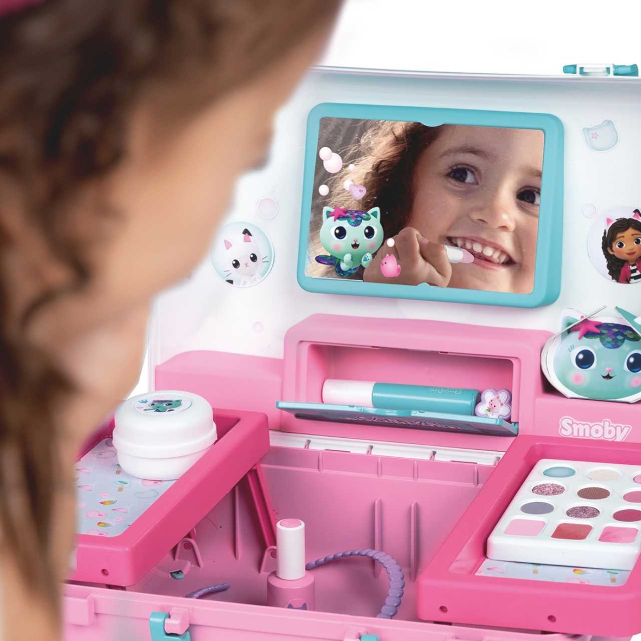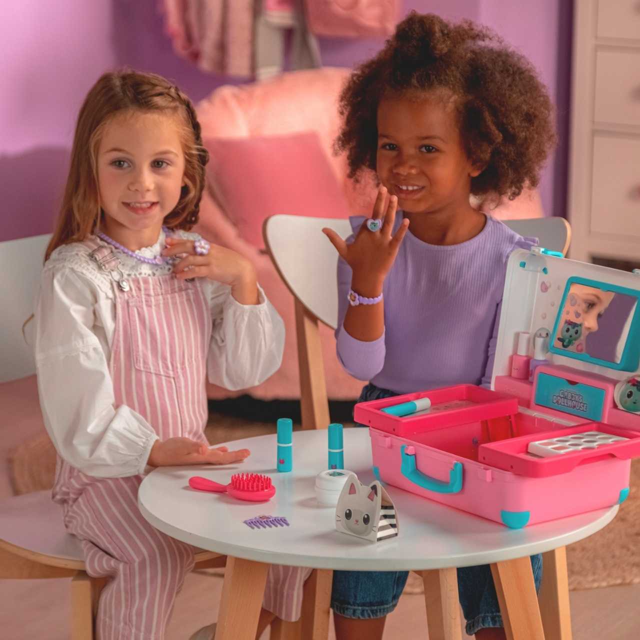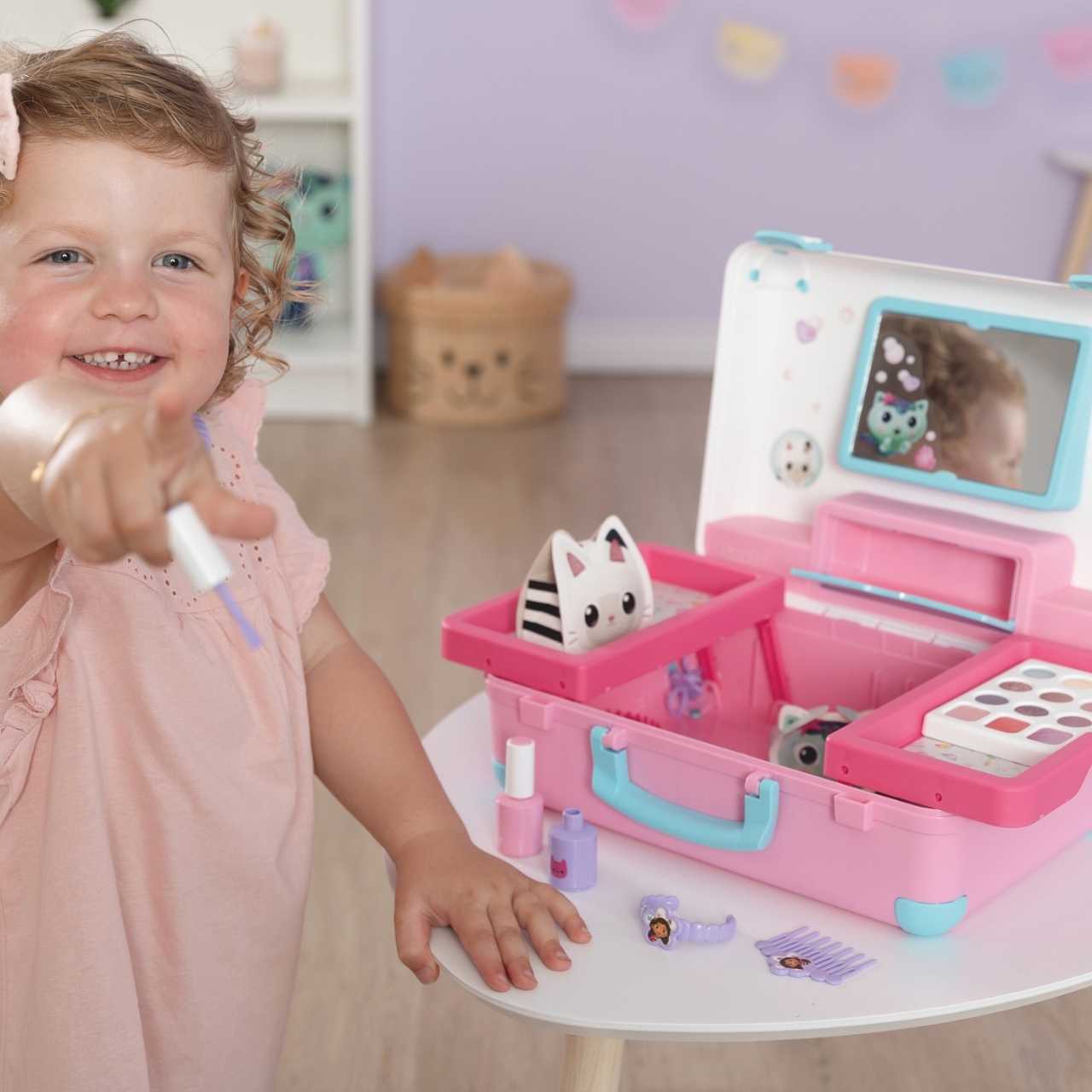 Gabby 'nin Bebek Evi dünyasından ilham alan Gabby Beauty Vanity, miniklerin hayal gücünü harekete geçiren eğlenceli ve interaktif bir güzellik setidir. 3 yaş ve üzeri çocuklar için özel olarak tasarlanan bu kompakt makyaj masası; saç şekillendirme, makyaj ve tırnak bakımını tek bir sette buluşturur. Kolay taşınabilir tasarımı sayesinde her yerde eğlenceye hazır olan Gabby Beauty Vanity, gerçek ayna, gizli kapak, geri çekilebilir raflar ve toplam 15 adet aksesuar ile çocuklara saatler süren rol yapma ve keşif imkânı sunar. Gabby Beauty Vanity, çocukların rol yapma becerilerini, özgüvenlerini ve yaratıcılıklarını geliştirirken onları Gabby 'nin büyülü dünyasına keyifli bir yolculuğa çıkarır. Şimdi keşfetme zamanı!