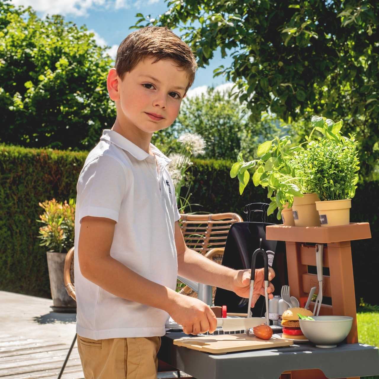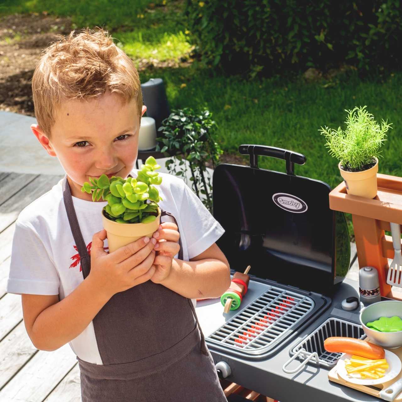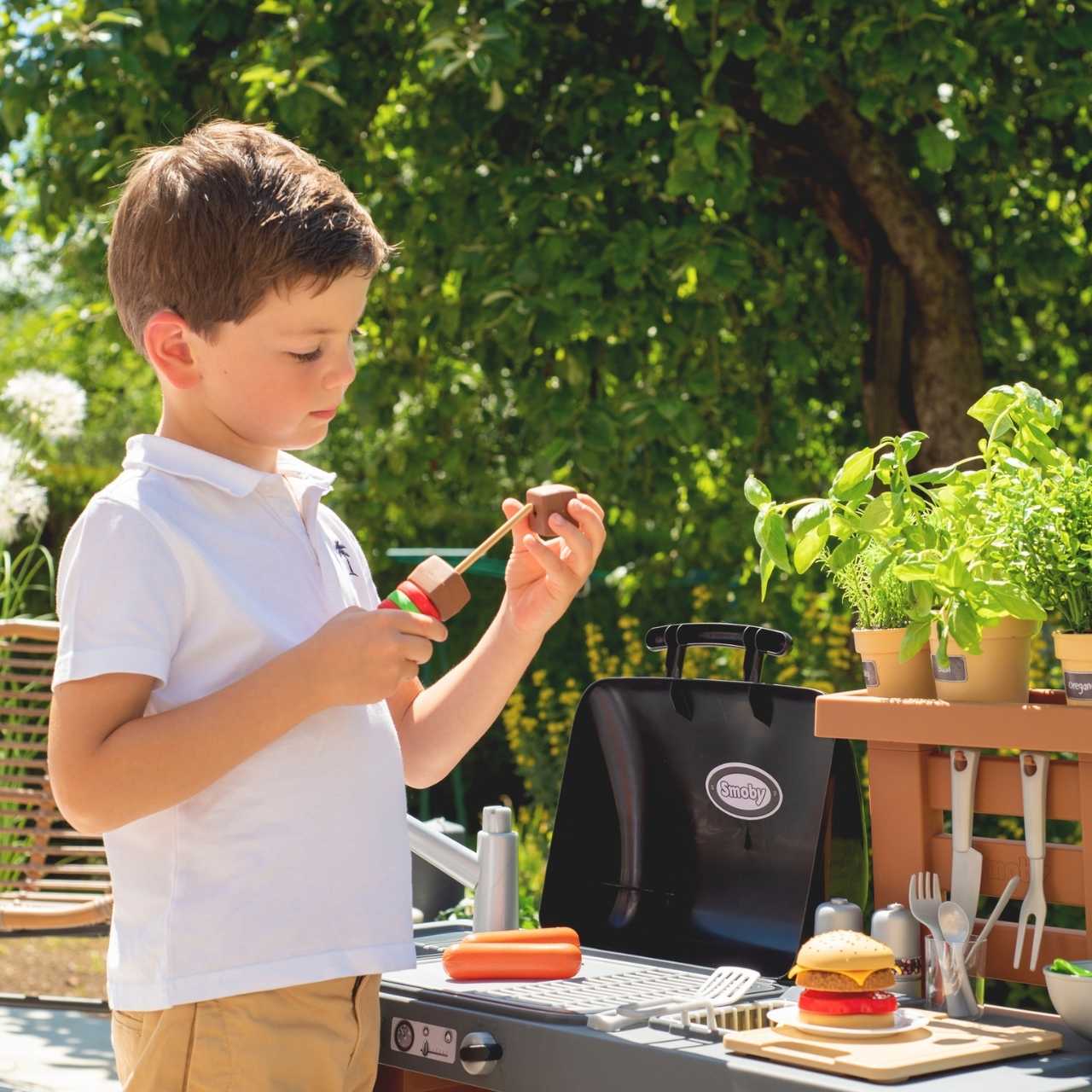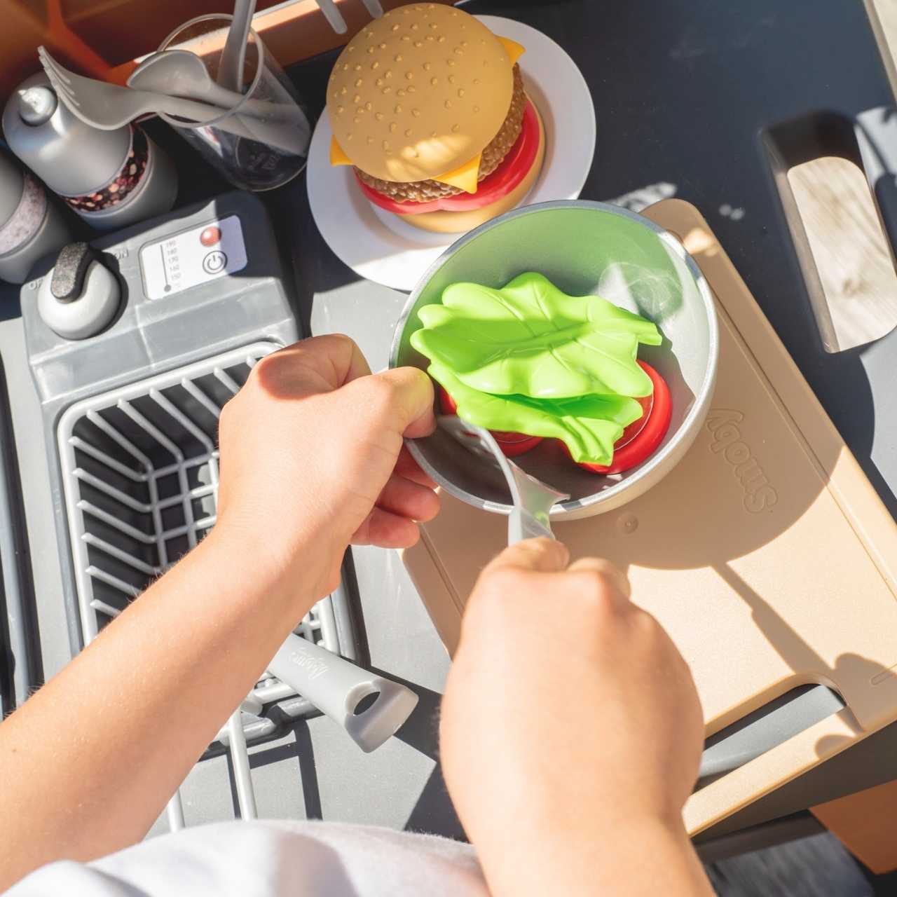 Smoby Garden Kitchen Mutfak, 3 yaş ve üzeri çocuklar için tasarlanmış geniş ve fonksiyonel bir oyuncak mutfak setidir. Minikler, gerçek bir aşçı gibi yemek pişirme, bulaşık yıkama ve mangal keyfi yapma deneyimi yaşayabilirler. Su pompalı lavabo, geri çekilebilir ızgara, plancha ve fritöz gibi detaylarla oyun daha gerçekçi ve eğlenceli hale gelir. Smoby Garden Kitchen Mutfak, çocukların rol yapma oyunlarını desteklerken, yaratıcılıklarını ve el becerilerini geliştirmelerine olanak tanır.