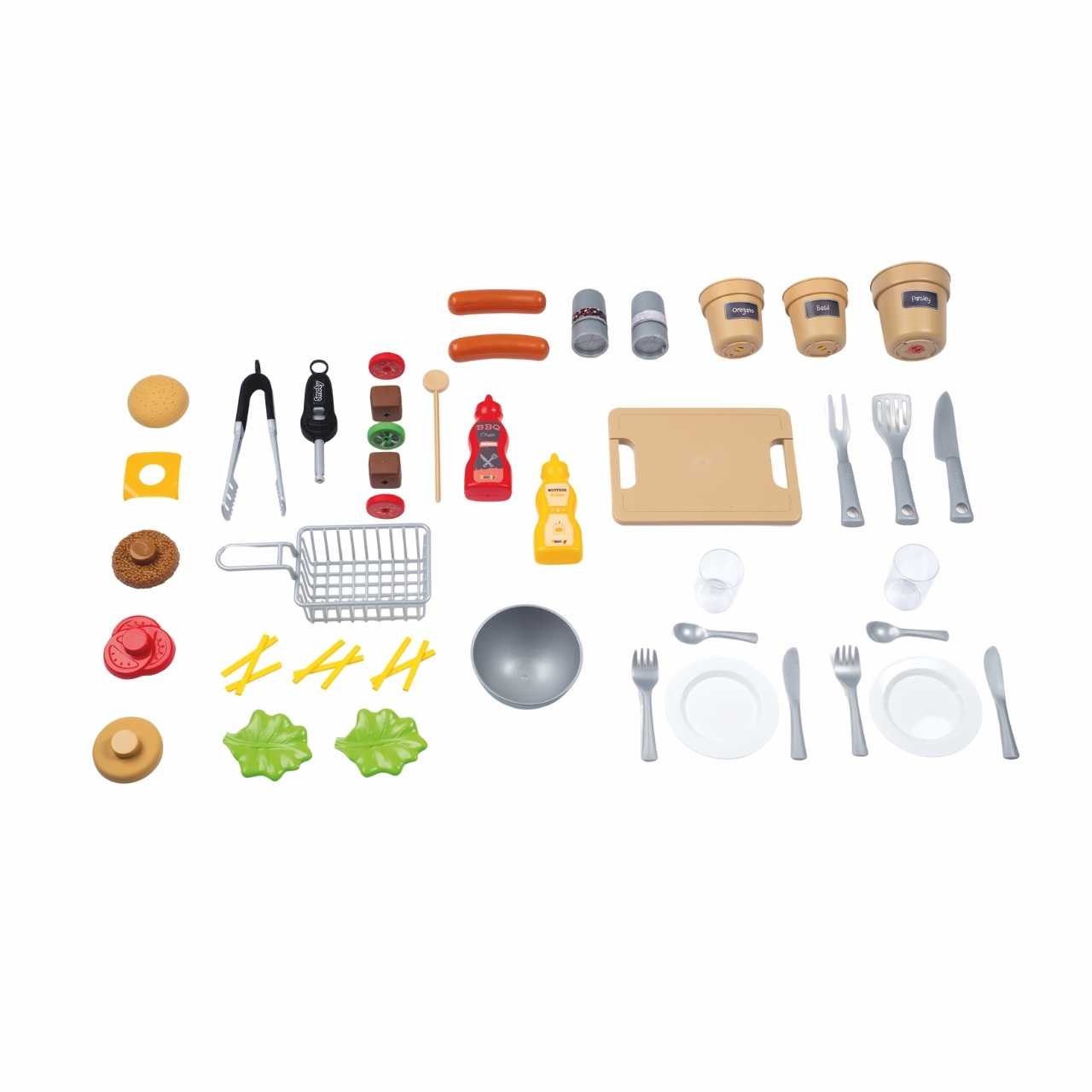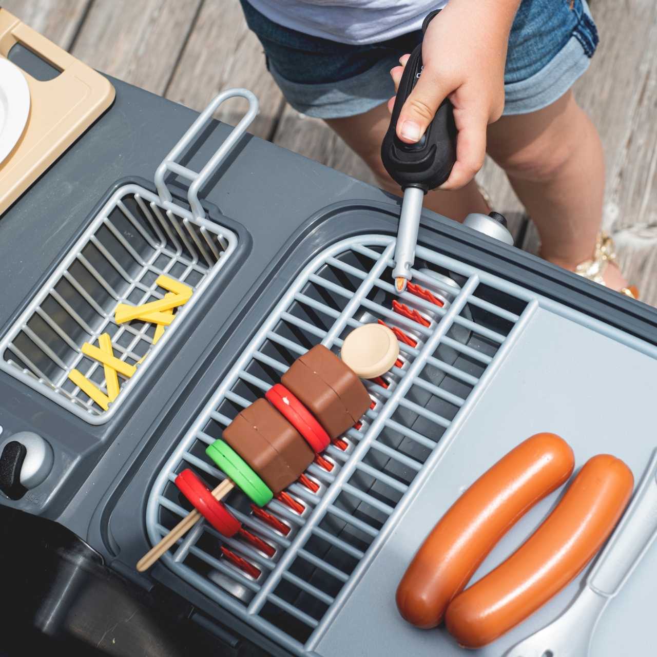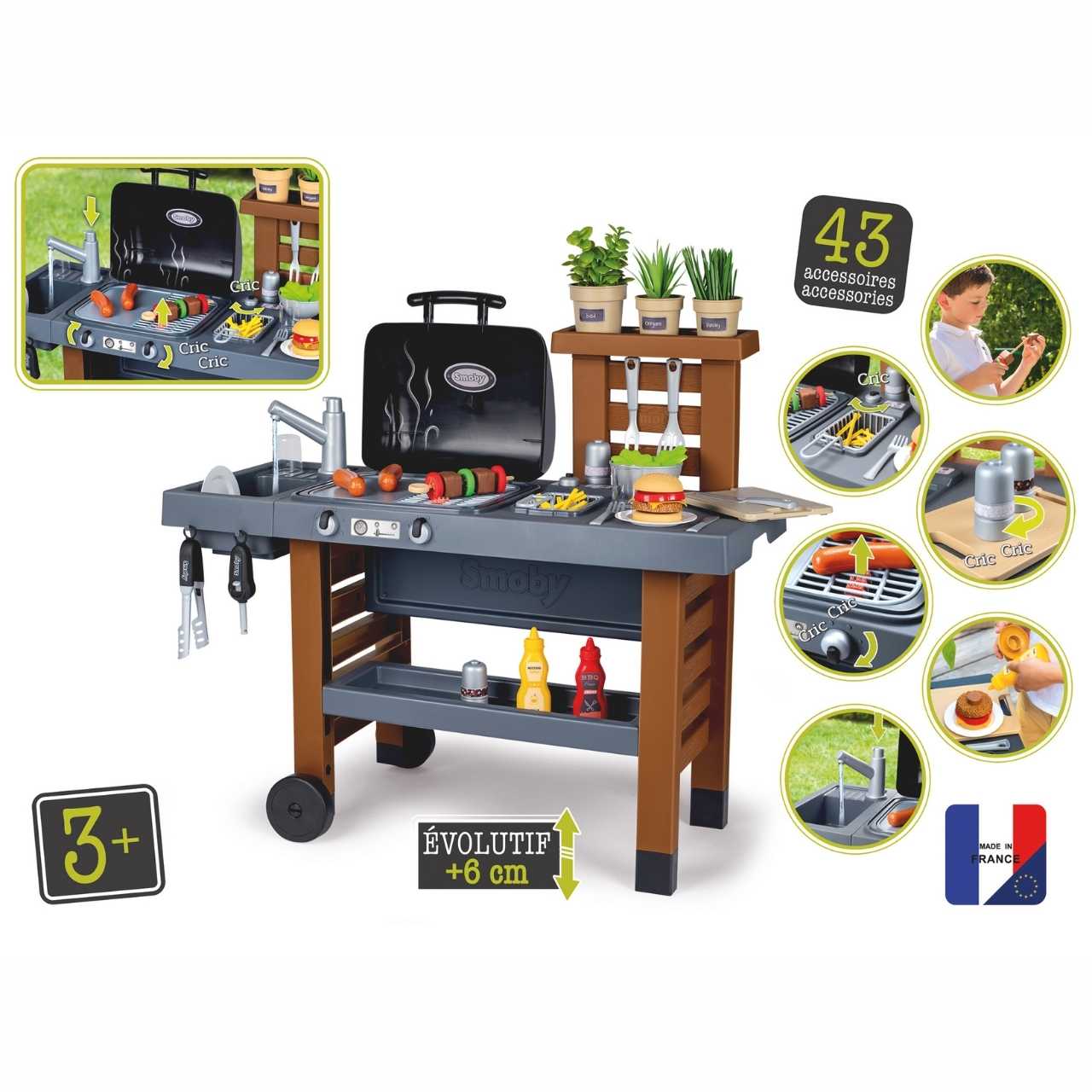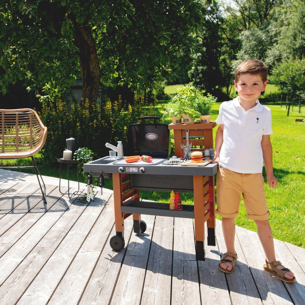 Smoby Garden Kitchen Mutfak, 3 yaş ve üzeri çocuklar için tasarlanmış geniş ve fonksiyonel bir oyuncak mutfak setidir. Minikler, gerçek bir aşçı gibi yemek pişirme, bulaşık yıkama ve mangal keyfi yapma deneyimi yaşayabilirler. Su pompalı lavabo, geri çekilebilir ızgara, plancha ve fritöz gibi detaylarla oyun daha gerçekçi ve eğlenceli hale gelir. Smoby Garden Kitchen Mutfak, çocukların rol yapma oyunlarını desteklerken, yaratıcılıklarını ve el becerilerini geliştirmelerine olanak tanır.