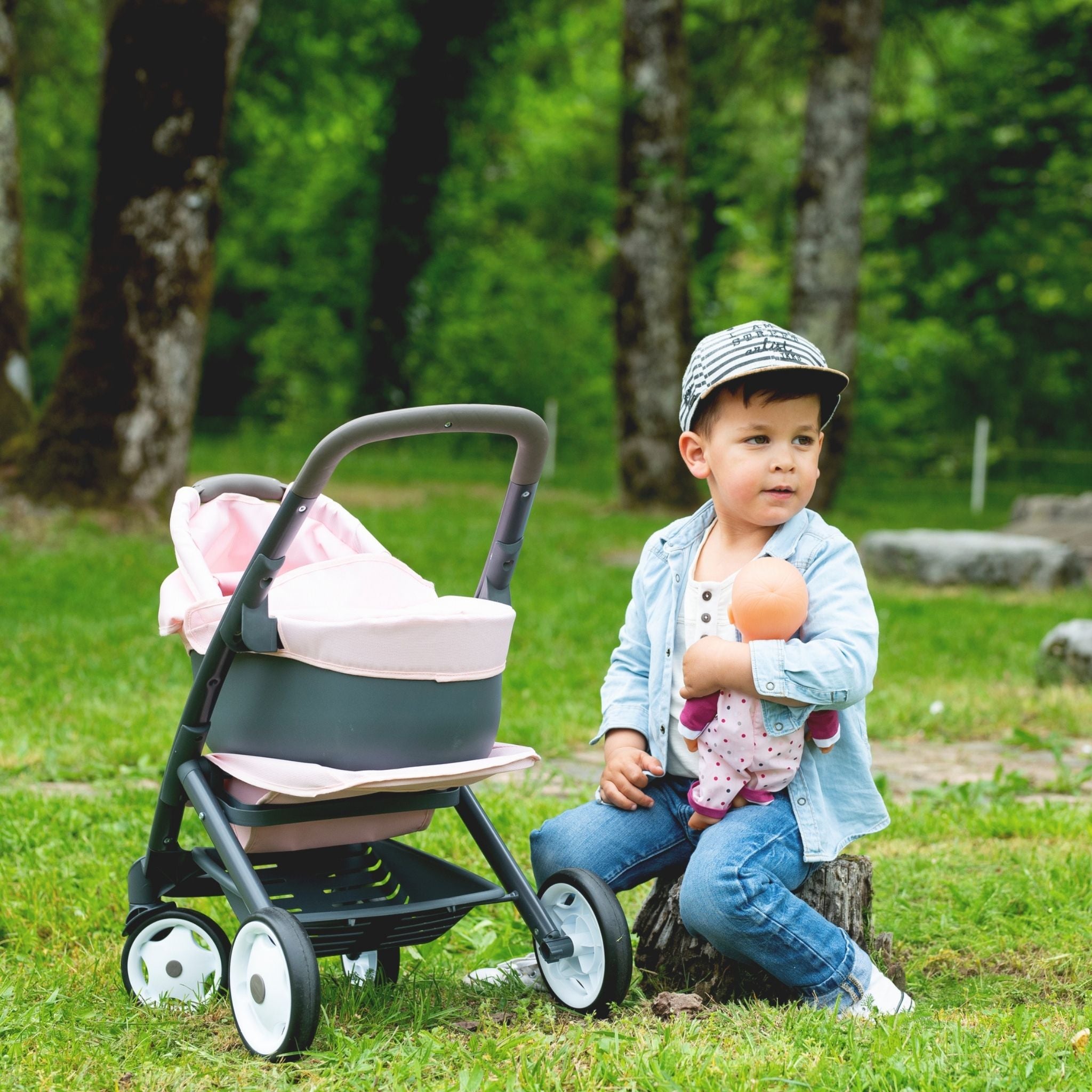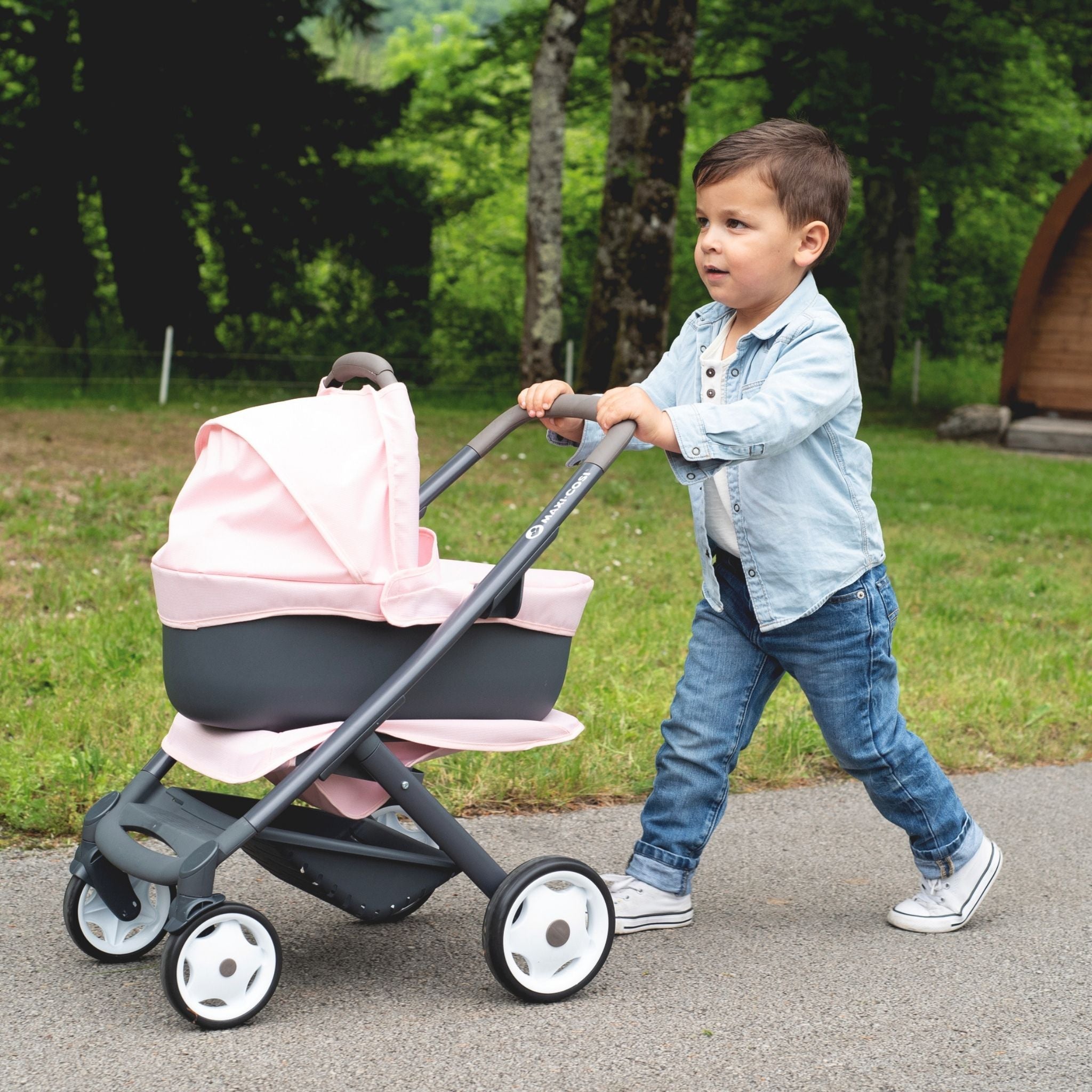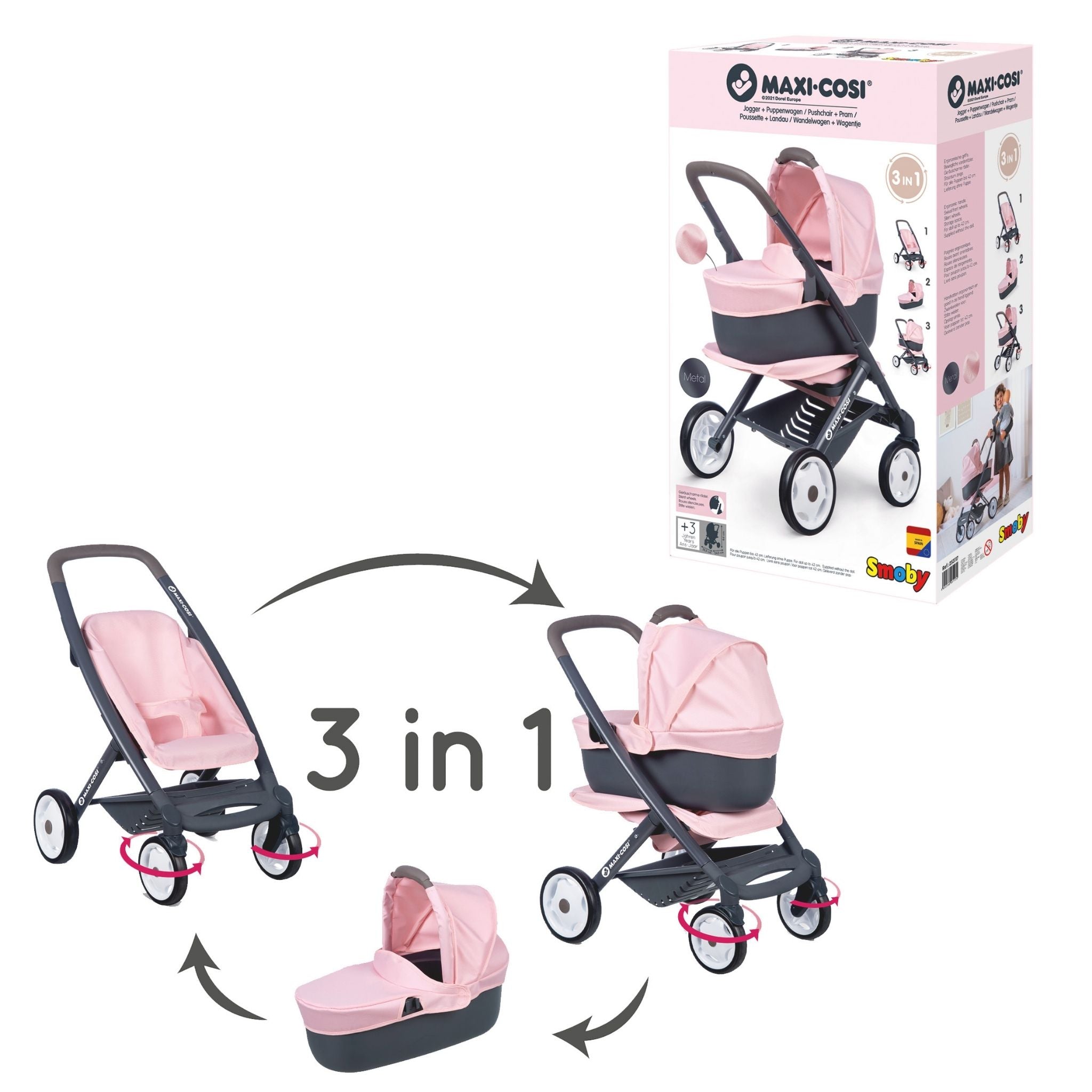 Smoby’nin Maxi-Cosi 3'ü 1 arada oyuncak bebek arabası, küçüklerin rol yapma oyunlarını zenginleştirmek ve gerçek bir bakım deneyimi sunmak için tasarlanmış çok yönlü bir modeldir. Metal destekli sağlam yapısı sayesinde uzun süre güvenle kullanılabilirken, özel kumaştan üretilen oturma bölümü kolay temizlenebilir bir yapı sunar. Çıkarılabilir üst kısmı ve değiştirilebilir oturma yönü ile farklı kullanım şekilleri yaratır; böylece çocuklar bebeklerini ister kendilerine dönük ister dışarıya dönük şekilde gezdirebilir. Alt bölümde yer alan geniş saklama alanı sayesinde oyuncak bebek aksesuarları her zaman yanlarında olur. Hem iç mekânda hem de dışarıda keyifli bir oyun deneyimi için tasarlanan bu model, 42 cm’ye kadar tüm oyuncak bebekler için uyumludur. Smoby’nin kaliteli üretim standartlarını yansıtan bu bebek arabası, çocukların empati gelişimine katkıda bulunurken ince motor becerilerini, el-göz koordinasyonunu ve sorumluluk duygusunu da destekler. Dayanıklı malzeme yapısı ve ergonomik tasarımı ile küçük yaş gruplarının güvenle kullanabileceği bir bakım oyunu ekipmanıdır.