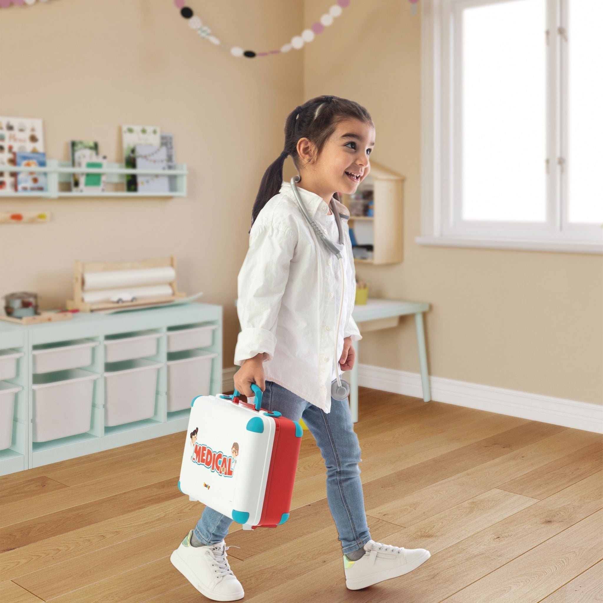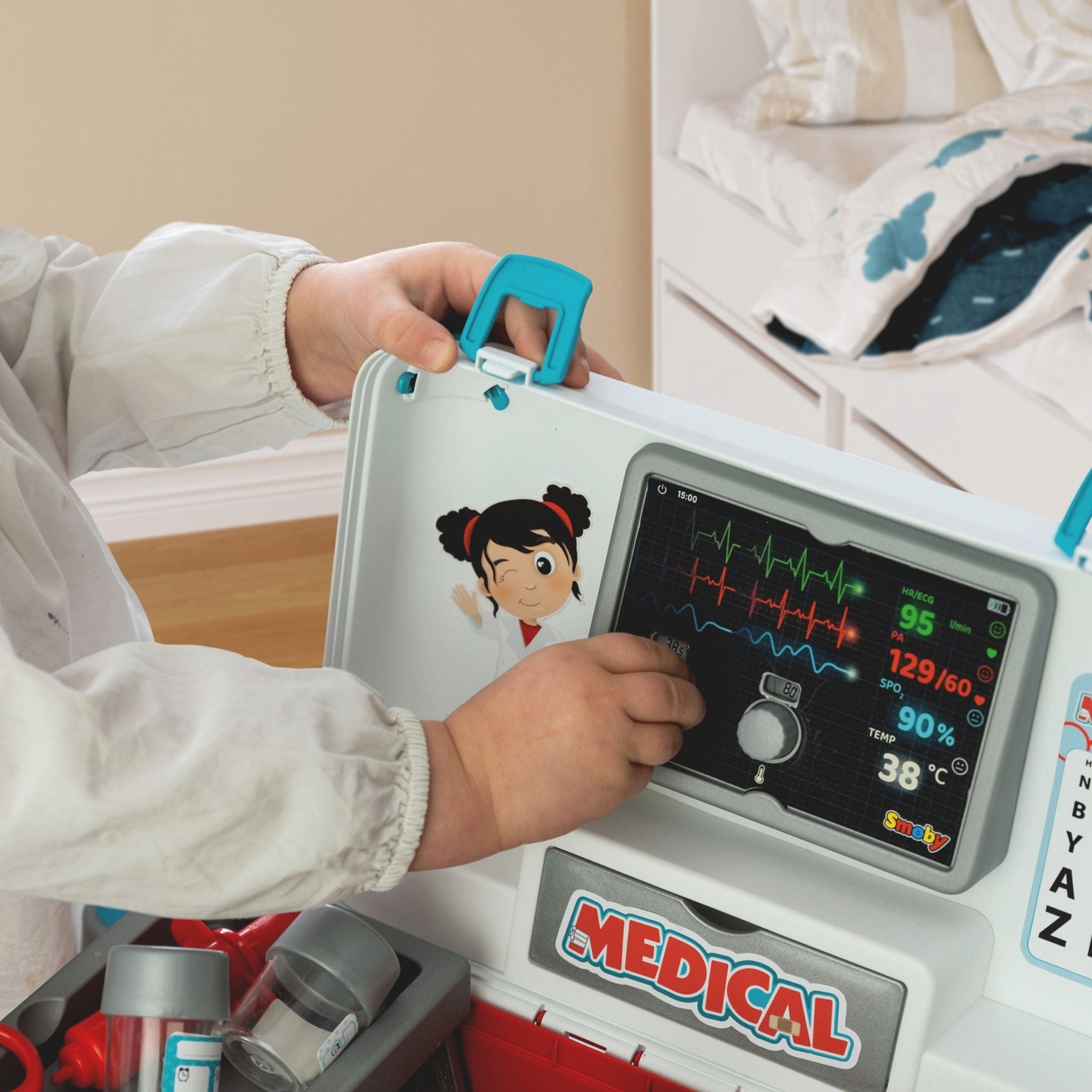 Smoby’nin Ambulans/Medikal Büyük İlk Yardım Çantası, çocukların rol yapma oyunlarını daha eğlenceli ve gerçekçi hale getiriyor. Acil durum doktoru temasıyla tasarlanan bu kapsamlı set, küçüklerin hayal gücünü harekete geçirirken aynı zamanda sağlık ve yardım kavramlarını eğlenceli bir şekilde öğrenmelerine yardımcı oluyor. Çanta, hafif ve sağlam yapısıyla çocukların kolayca taşıyabileceği şekilde üretilmiştir. Mekanik düğmeli kontrol ekranı, oyunu daha gerçekçi hale getirirken sağlık durumlarını eğlenceli bir şekilde takip etme imkanı sunar. İki raflı iç bölme sayesinde tüm aksesuarlar düzenli bir şekilde saklanabilir. Set içerisinde, çocukların doktorculuk oyunlarını zenginleştirecek pek çok aksesuar yer almaktadır. Oyun bittiğinde tüm parçalar çantaya kolayca yerleştirilebilir. Ergonomik tutma sapı ve güvenli çıtçıt sistemi sayesinde çocuklar çantayı rahatlıkla yanlarında taşıyabilir. Fransa’da kaliteli malzemelerle üretilmiş olan Smoby İlk Yardım Çantası, hem eğitici hem de eğlenceli bir oyun deneyimi sunar.